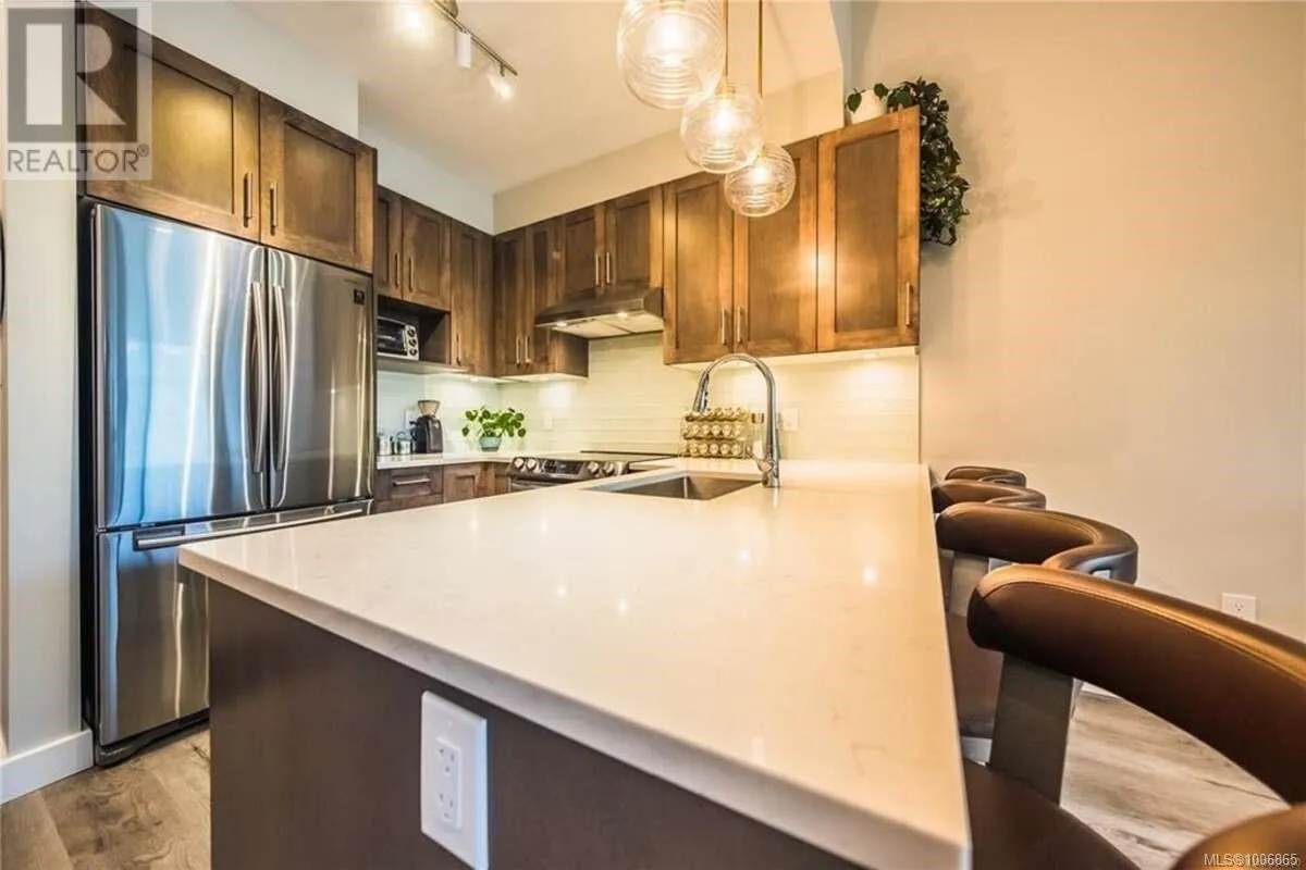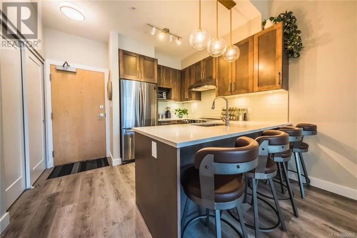 For more information, please click Brochure button. Welcome to 514-20 Barsby Avenue, a beautifully designed top-floor, fully furnished 1-bedroom condo tucked away in one of downtown Nanaimoâs most peaceful and desirable locations. Situated at the end of a quiet no-thru road in a riverbend and backing onto protected green space, this hidden gem offers a rare blend of privacy, tranquility, and urban convenience. Inside, you'll find a bright and airy space featuring vaulted ceilings, large windows, and a sun-soaked balcony with treetop views, creating a warm and welcoming atmosphere. The condo comes fully furnished and equipped, making it truly move-in or rental readyâideal for first-time buyers, investors, or anyone looking to downsize with ease. This modern building was constructed just three years ago and includes secure entry, elevator access, secure underground parking, and bike storage. It's also pet-friendly and allows both short- and long-term rentals, offering great flexibility and investment potential. Enjoy peaceful living while being just steps from the seawall, riverfront trails, and downtown amenities. With low strata fees, thoughtful design, excellent management, and an unbeatable location, this turnkey condo is a rare opportunity you donât want to miss! (id:27476)