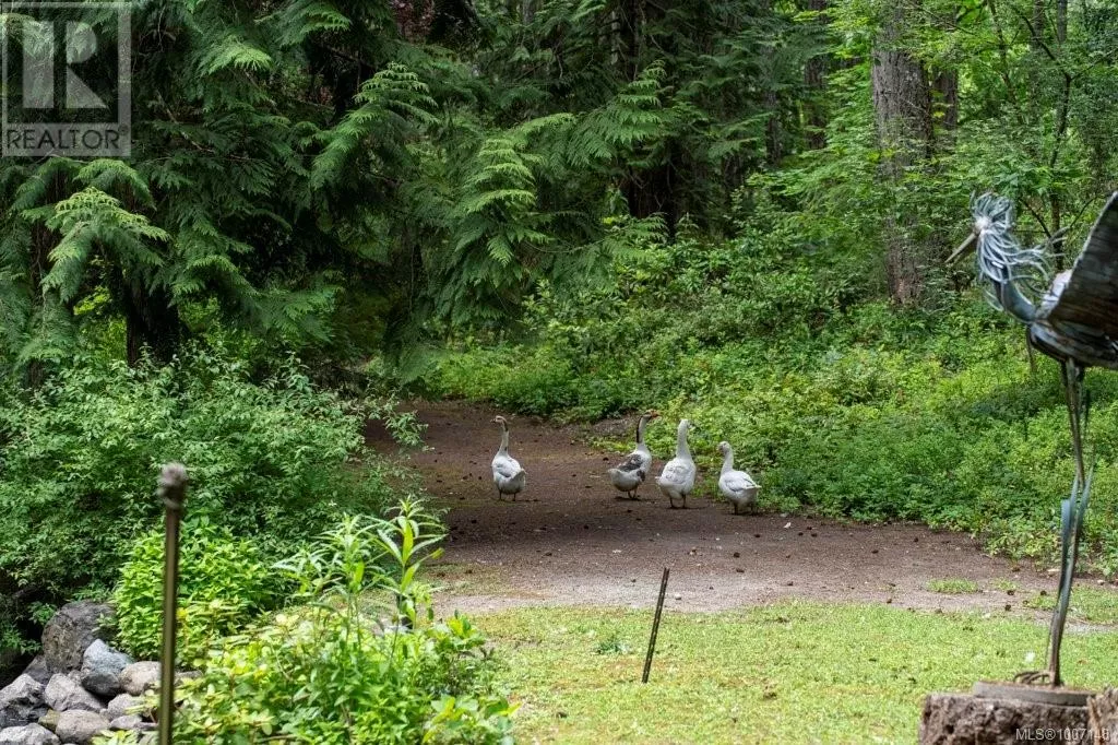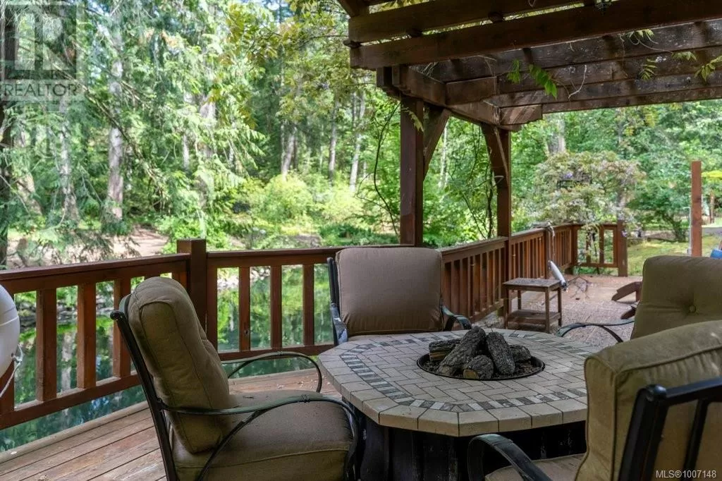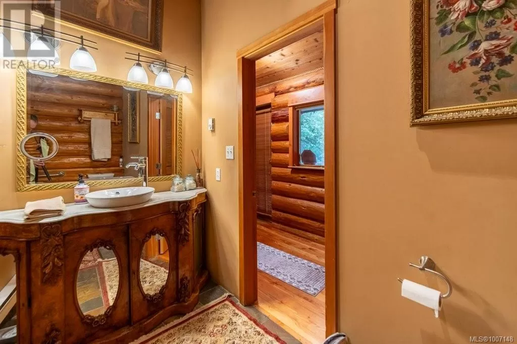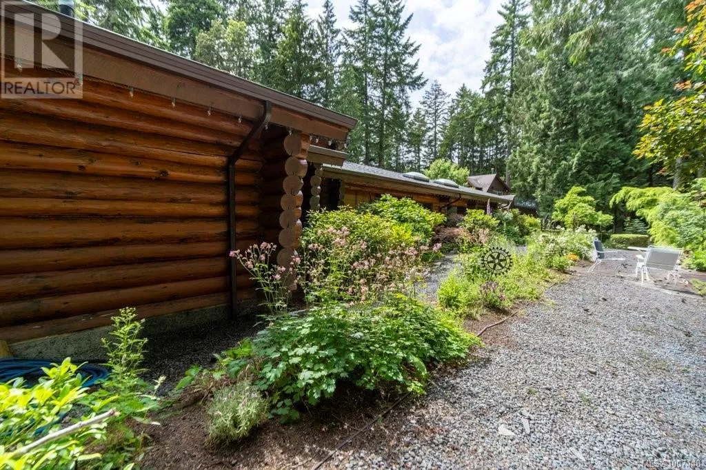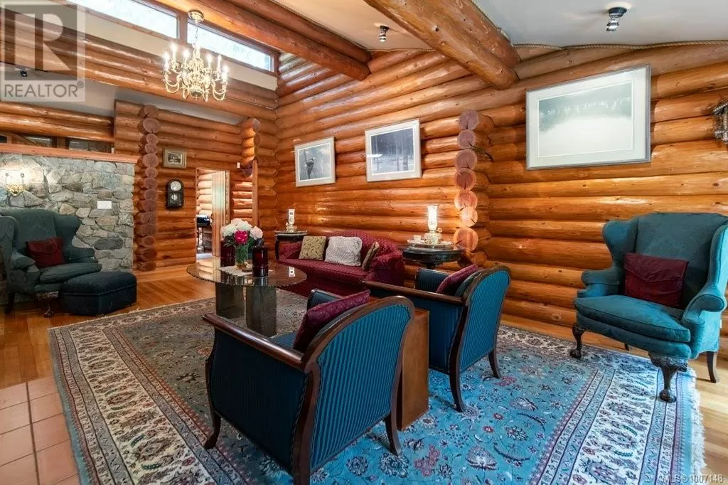 Welcome to your private forest retreat on beautiful Vancouver Island. This extraordinary 4.86-acre estate offers the perfect blend of luxury, nature, and functionalityâjust minutes from the Nanaimo Airport and Duke Point ferry, and steps from stunning beaches ideal for kayaking and beachcombing. Nestled beside a protected old growth forest (Wildwood), the custom log home spans over 3,900+ sq ft and is surrounded by peaceful, natural beauty. A private lake winds through the property, featuring a charming pergola with a covered fireplace and a cascading waterfall. The estate is beautifully lit for evening strolls along custom garden paths or the private road circling the grounds. Outdoor highlights include a lakefront campsite with a built-in stone firepit and BBQ, a gardenerâs paradise of indigenous and exotic plants, an elevated rose garden, and multiple seating areas with lake views. There are 7 garages including drive-through and workshop-ready spaces, a 10x20 storage building, a large fenced dog area with custom 10x10 dog house, a well with dual 2,200-gallon cisterns, and designated farm status. The handcrafted log home features full round logs, vaulted ceilings, skylights, and hardwood floors. Inside, youâll find a granite-accented entry with custom double doors, an expansive living/dining space with Blaze King wood stove, and a chefâs kitchen with solid maple cabinets, copper backsplash, large island, pass-through window, and walk-in pantry. There are four spacious bedrooms, including a master suite with private patio, wood stove, dual walk-in closets, spa-inspired ensuite, and sitting room with clawfoot tub. Additional features include a loft bedroom with spiral staircase, private-entry bedroom with study, split full bath with antique vanities, and attic access. A detached carriage house includes a 1-bedroom suite with kitchen, laundry, wood stove, and a large lake-view deckâperfect for guests or rental income. A truly rare and versatile West Coast gem. (id:27476)