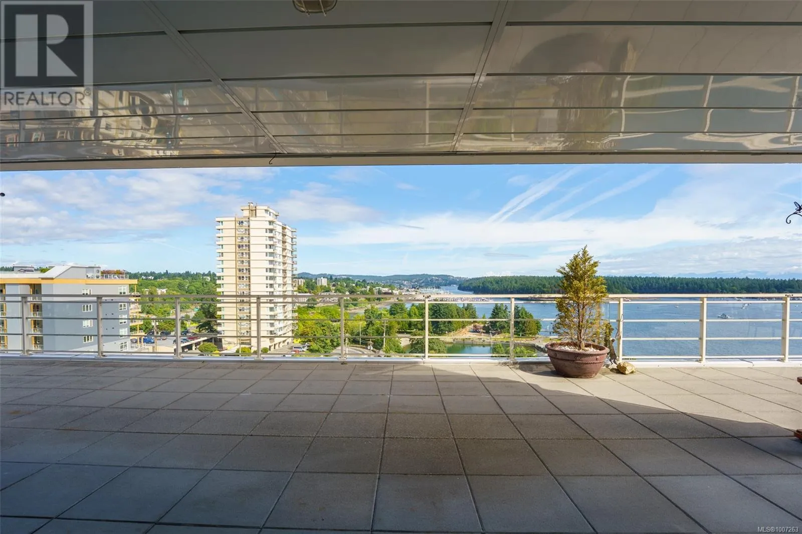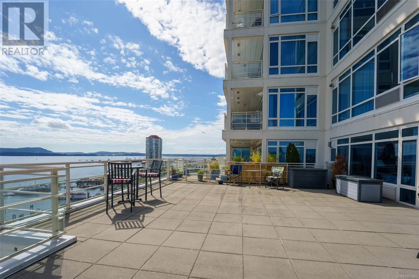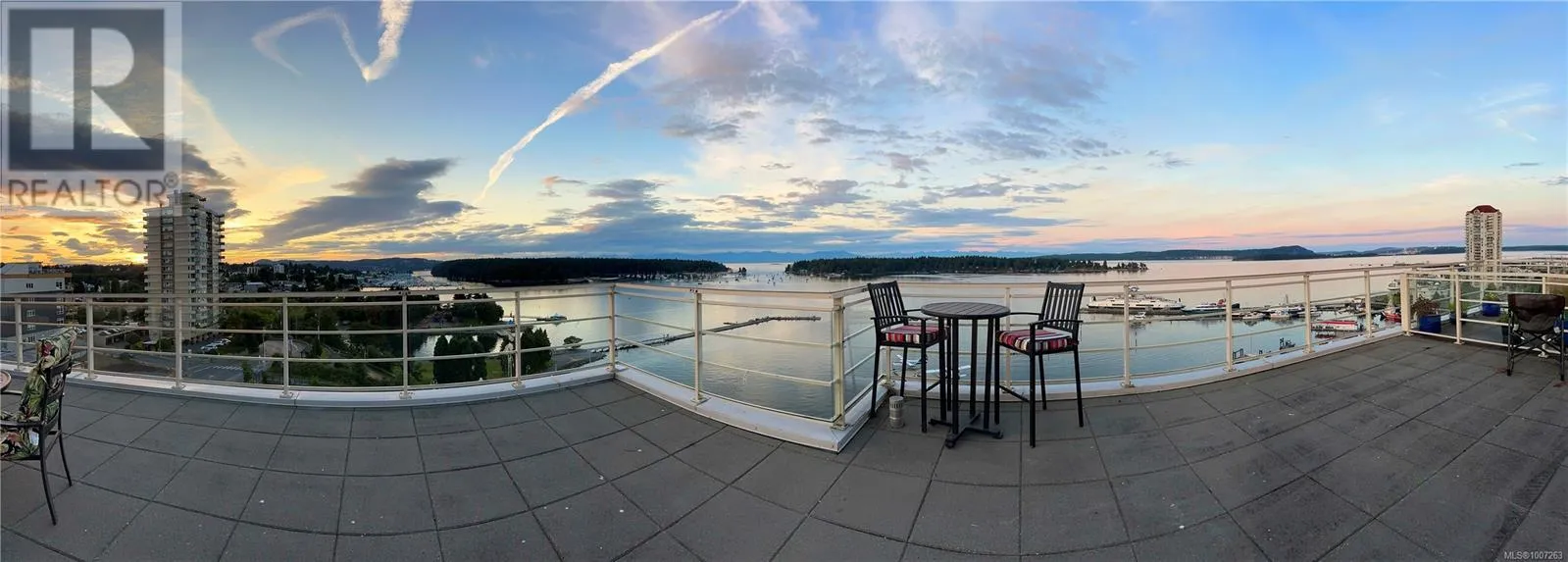 Welcome to Unit 805 at 38 Front Street in the prestigious Pacifica buildingâwhere luxury meets lifestyle in the heart of the downtown Nanaimo waterfront. This 2-bedroom, 2-bathroom condo offers just over 1,000 sq ft of modern living, steps from the seawall, Maffeo Sutton Park, fine dining, shopping, and the Port Theatre. The show-stopper? An incredible 2,500 sq ft private patio with panoramic, unobstructed views of the ocean, city, and Mount Benson. This view is an experience! Whether you're entertaining or enjoying a quiet moment outdoors, this space is unmatched. Live the West Coast dream with walkable convenience and stunning views in one of Nanaimoâs most desirable addresses. Easy sea plane access, Hellijet, and Hullo ferry to Vancouver. Included are 2 underground parking spaces and a storage locker. Home can be purchased with furnishings. All measurements are approximate and should be verified if important. (id:27476)