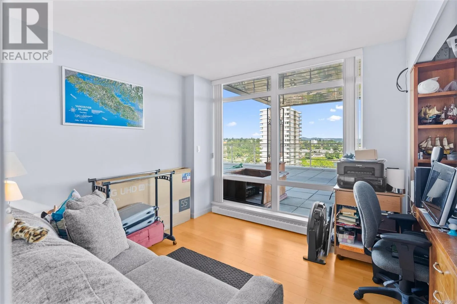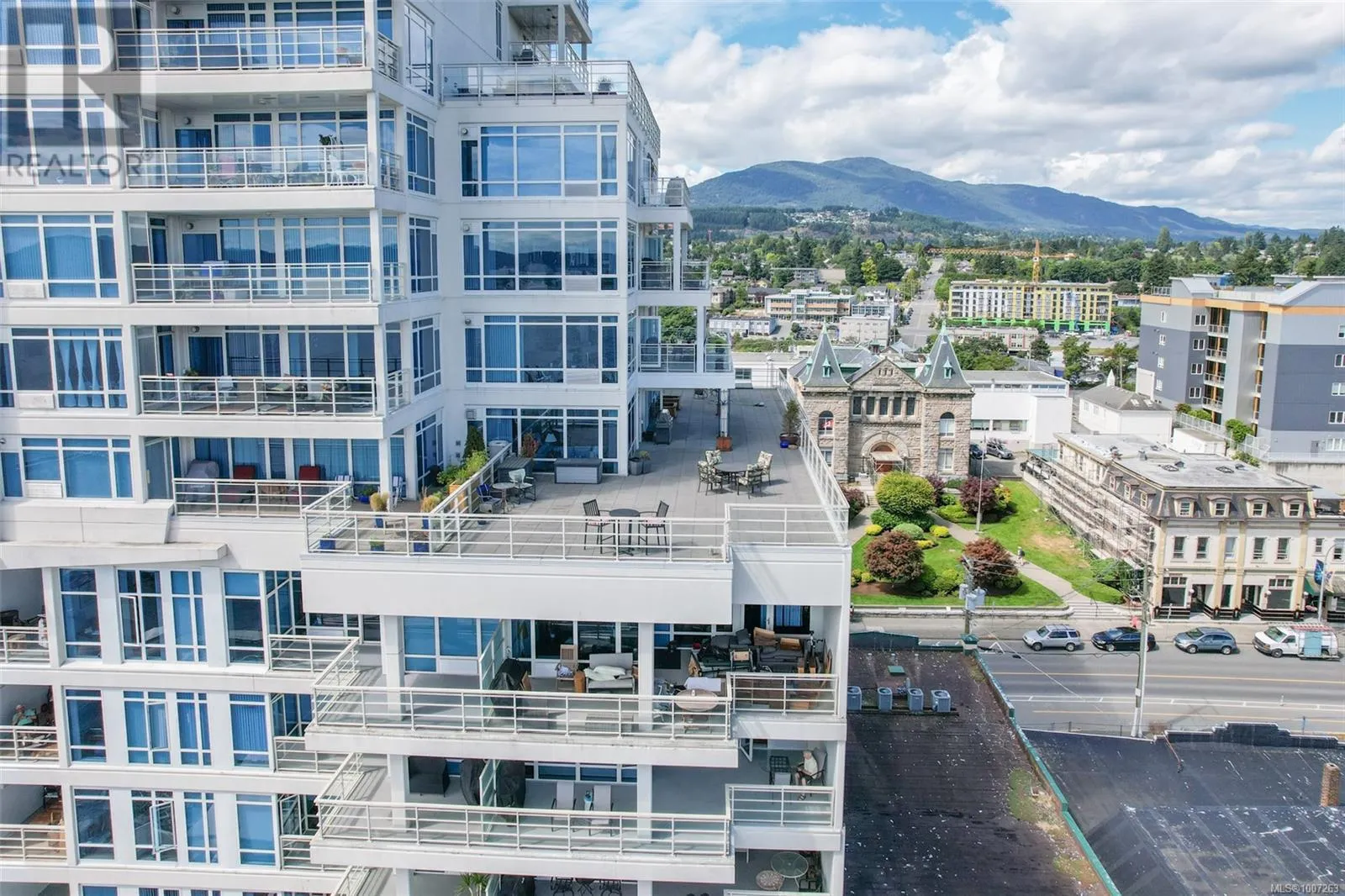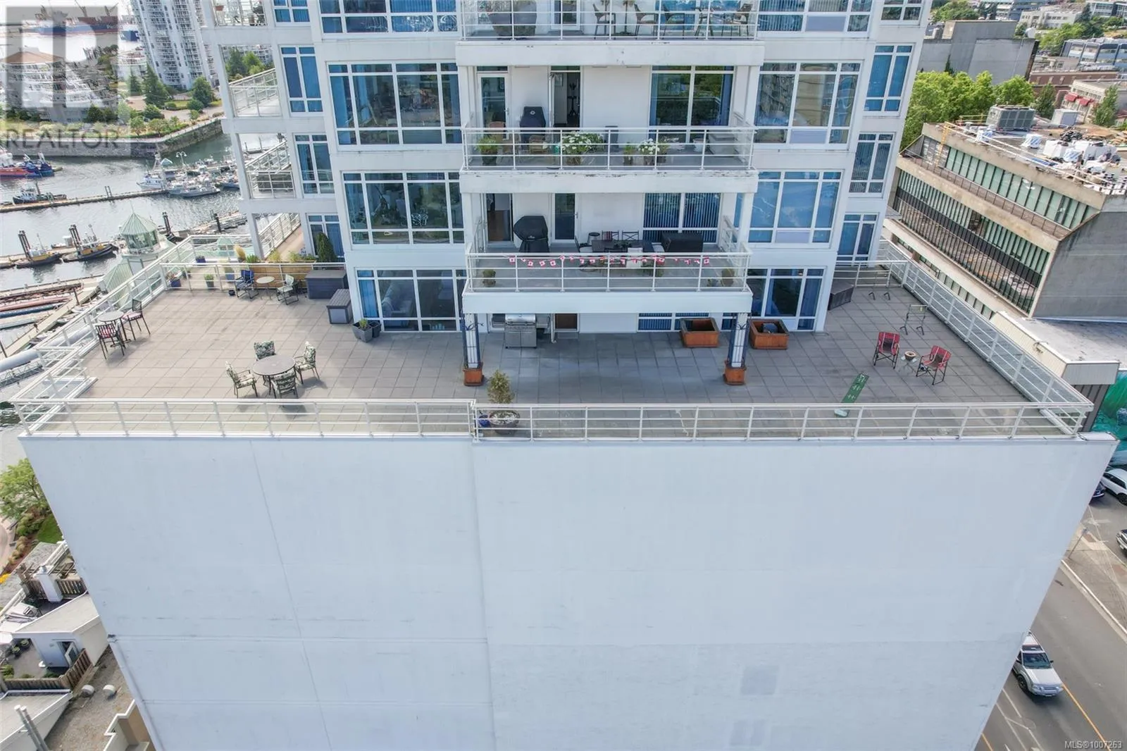 Welcome to Unit 805 at 38 Front Street in the prestigious Pacifica buildingâwhere luxury meets lifestyle in the heart of the downtown Nanaimo waterfront. This 2-bedroom, 2-bathroom condo offers just over 1,000 sq ft of modern living, steps from the seawall, Maffeo Sutton Park, fine dining, shopping, and the Port Theatre. The show-stopper? An incredible 2,500 sq ft private patio with panoramic, unobstructed views of the ocean, city, and Mount Benson. This view is an experience! Whether you're entertaining or enjoying a quiet moment outdoors, this space is unmatched. Live the West Coast dream with walkable convenience and stunning views in one of Nanaimoâs most desirable addresses. Easy sea plane access, Hellijet, and Hullo ferry to Vancouver. Included are 2 underground parking spaces and a storage locker. Home can be purchased with furnishings. All measurements are approximate and should be verified if important. (id:27476)