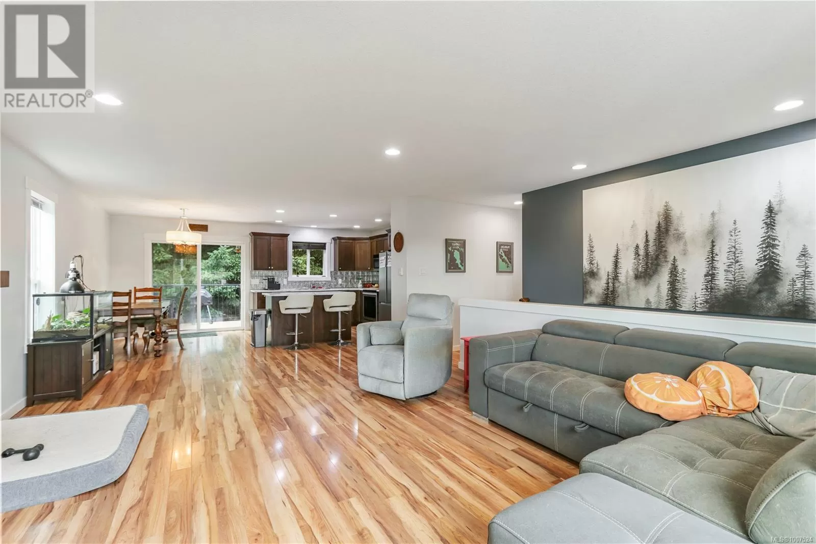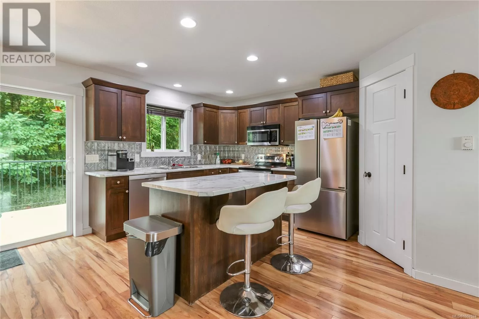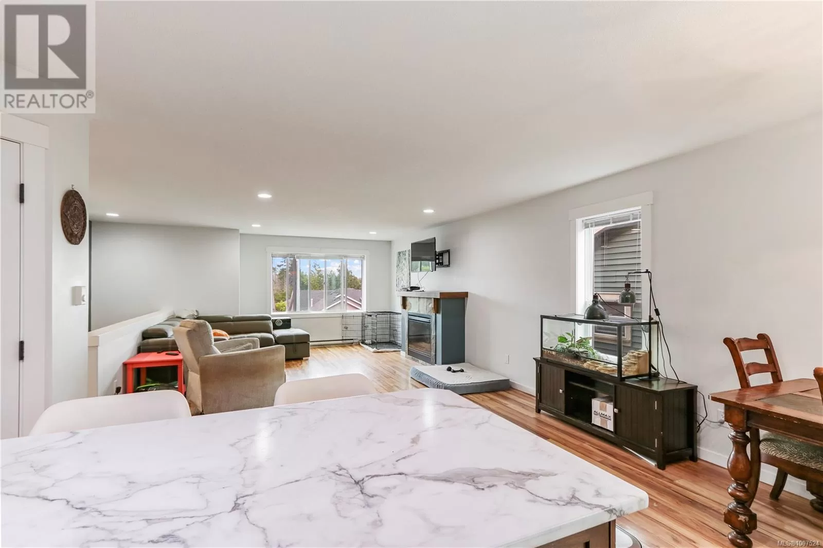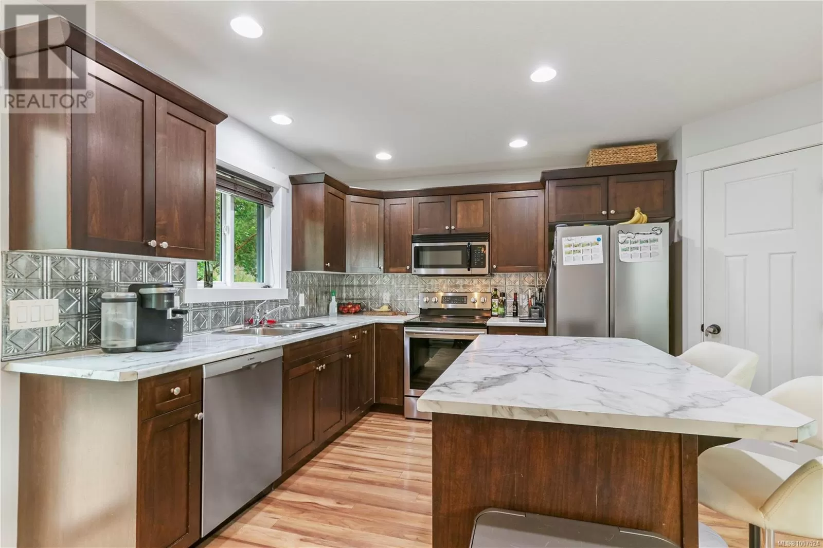This thoughtfully designed 5 bedroom, 3 bathroom home offers the perfect blend of space, function, and flexibilityâideal for multigenerational living or rental income. The bright, open-concept main level features a spacious great room with wide-plank laminate flooring and a cozy feature fireplace with slate surround. Large windows and a south-facing exposure bring in natural light throughout the day. The kitchen is well-appointed with custom wood cabinetry, a walk-in pantry, a central island with seating, and direct access to the sunny sundeckâperfect for morning coffee or summer barbecues. The main home includes 3 bedrooms, a den/home office, and a dedicated laundry room. The primary suite features a walk-in closet and a stylish ensuite with a walk-in shower and double vanity. Downstairs, the fully self-contained 2 bedroom legal suite includes its own private entrance, separate laundry, individual hydro meter, and an open-concept living room and kitchen. The exterior is finished in easy-care vinyl siding, and the lot offers room for extra parking. Located close to shopping, schools, parks, and transit, this move-in ready home is a standout choice with long-term flexibility. (id:27476)