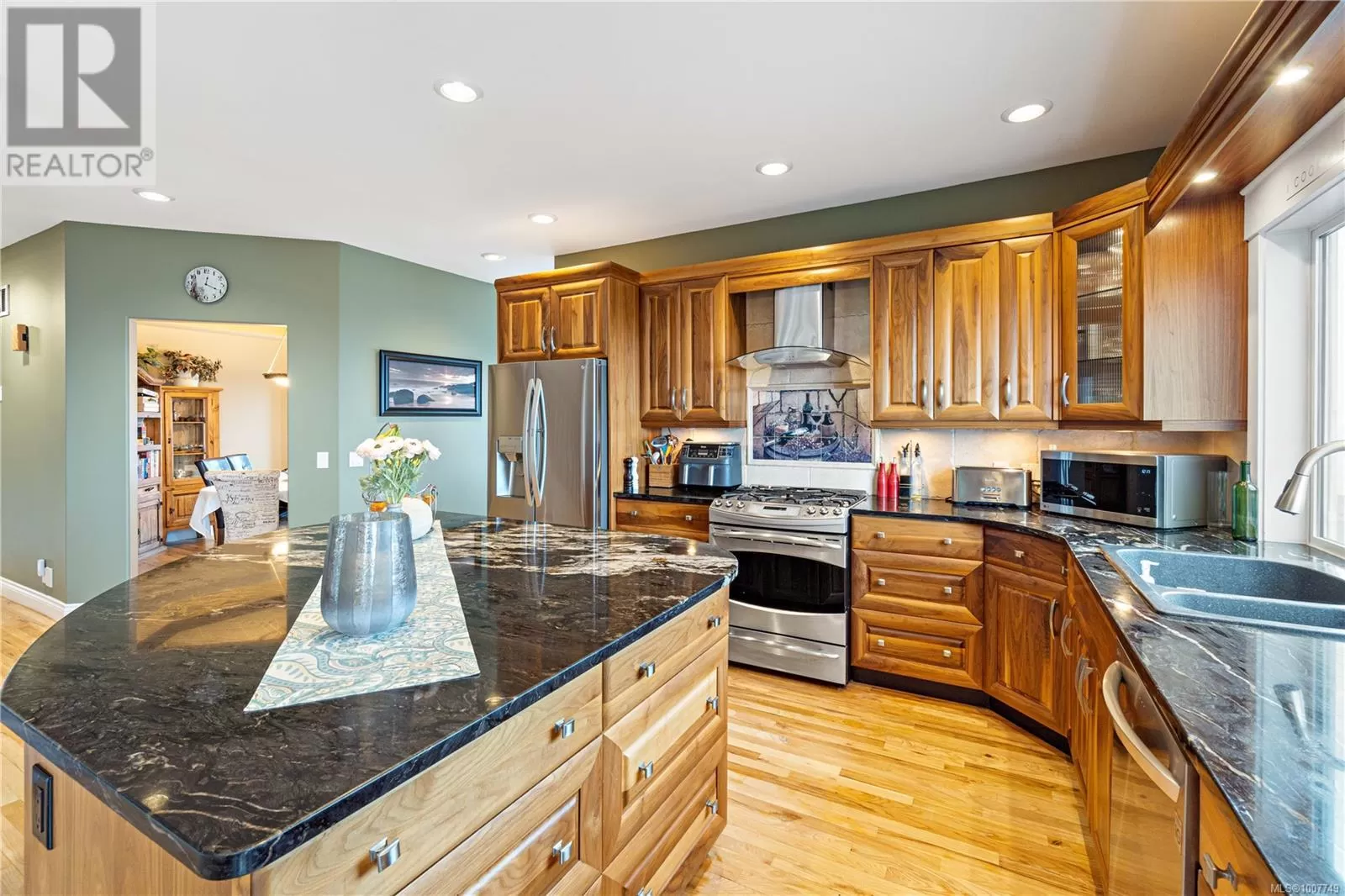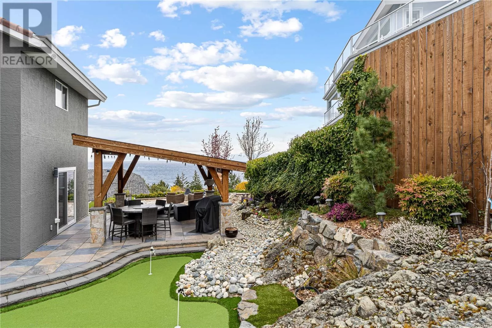 3500 sqft, 4 Bed, 4 Bath Executive Custom Home with absolutely jaw dropping ocean views that must be seen to believe. Perched atop a quiet cul-de-sac, this unique property is sure to impress. From the moment you step into the front door you're greeted by a huge glass etching that is sure to set the tone for things to come. To the right is a large Living Room with massive vaulted ceilings and to the left is the Family Room with a gas fireplace to keep you toasty warm. The kitchen has a massive island and lots of storage and an impressive walk-in pantry with a 2nd full sized fridge. Upstairs is where you'll find a primary bedroom that has arguably the most impressive ocean views that Nanaimo has to offer. Upstairs also has 2 more bedrooms each with their own walk-in closets. The Basement has a very large Rec Room that leads to a big Bedroom that could easily be used as a theatre room. As if all that isn't enough, there's more! The backyard was completely redone with entertaining in mind. Chill out under your impressive gazebo, putt away on your very own golf green or head up to the garden boxes and fruit trees. Then finish the day with your favorite drink next to your gas firepit overlooking the Straight of Georgia. Get that vacation feeling without having to leave home. Must be viewed to really appreciate the specialness of this one-of-a-kind property. Measurements are approximate and should be verified if important (id:27476)