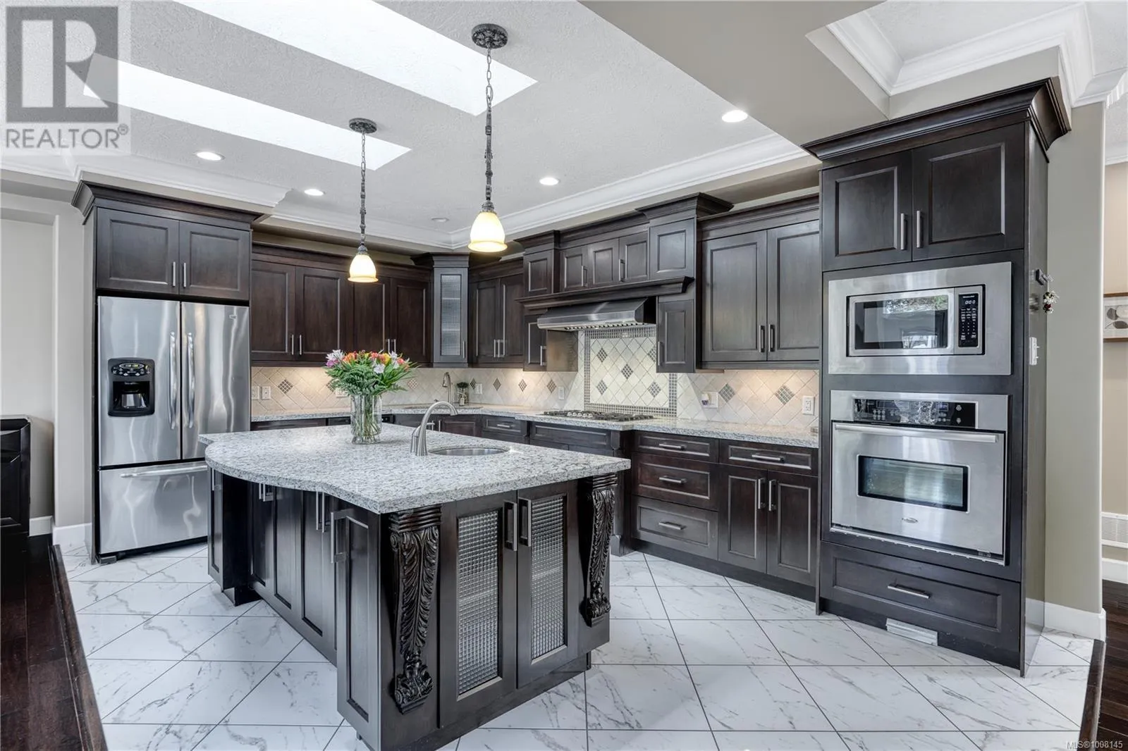 Custom Built Home in Rocky Point offering 3270 sq.ft. of living space with 5 Bdrms, 4 Bths and high quality decor that includes a legal two-bdrm suite. Loaded with curb appeal this home must be seen! Finished with a Hardie Plank and stone exterior with tasteful cedar highlights from the soffits, pillars to a vaulted cedar entrance. Highlights including open concept living area, spacious chef kitchen with granite counter tops & S/S appliances, mocha maple hand scrapped prefinished wood floors, ceramic tiles, custom cabinetry with self closing doors, plenty of light from multiple skylights, flat & square shaped lot, finishing details & more. Don't forget to grab a breath-taking view on the rooftop deck which is wired for speakers and plumbed with water. Rec room can be potentially converted to B&B suite w/ separate entrance. Brand new HWT, furnace 2019, outdoor gas connection for BBQ entertaining. 1st Open house: SUN July 27th, 2-4pm (id:27476)