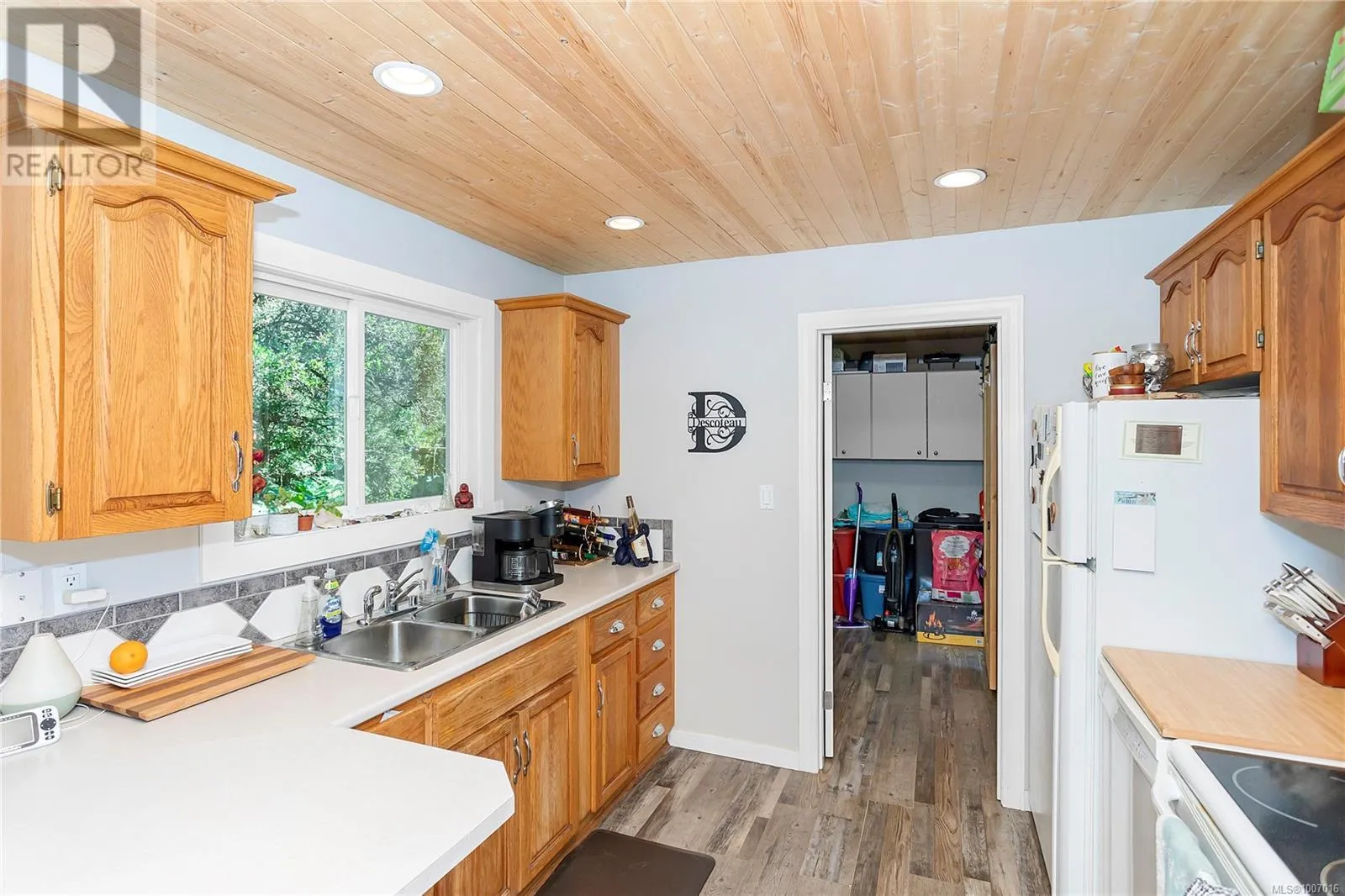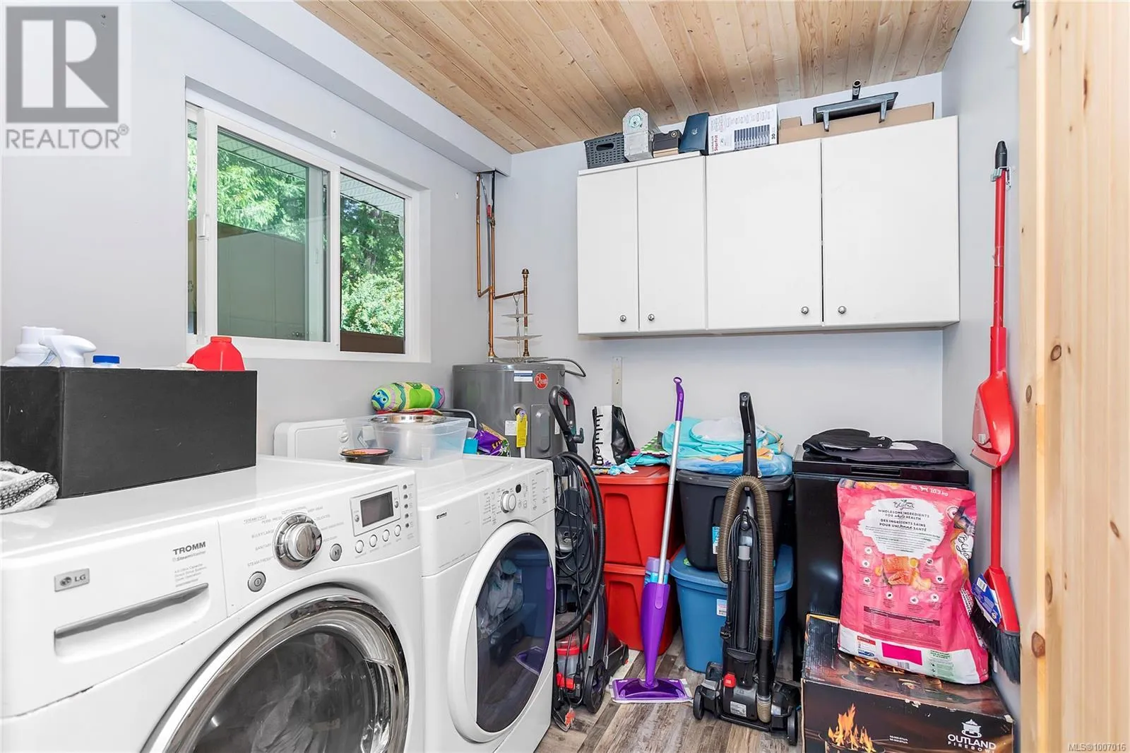 Welcome to this charming 3-bedroom, 2-bath rancher in a desirable North Nanaimo location! This well-maintained home features updated laminate flooring throughout and a bright, open-concept living and dining area with a cozy wood stove. The functional kitchen flows seamlessly to the private patio and a beautifully landscaped backyard, complete with mature greenery, a peaceful creek, a quaint little bridge, and two storage sheds. The primary bedroom includes a walk-in closet and a 3-piece ensuite with a luxurious hot tub. Two additional bedrooms offer space for family, guests, or a home office. Comfort is ensured year-round with an efficient heat pump system. Ideally located just minutes from the natural beauty of Neck Point Park and Pipers Lagoon, this home offers the perfect balance of tranquility and convenience. Donât miss this inviting West Coast retreat! (id:27476)