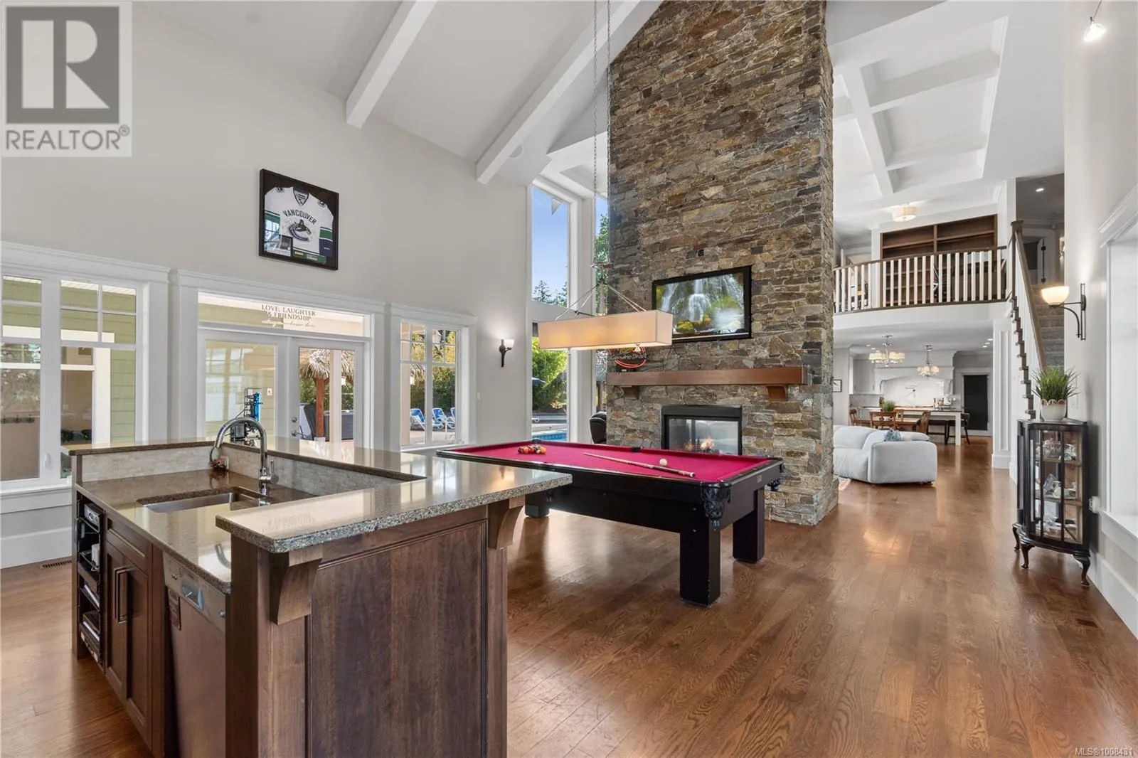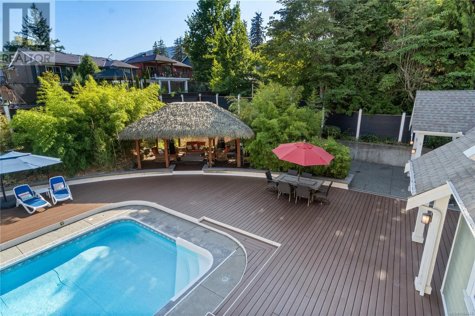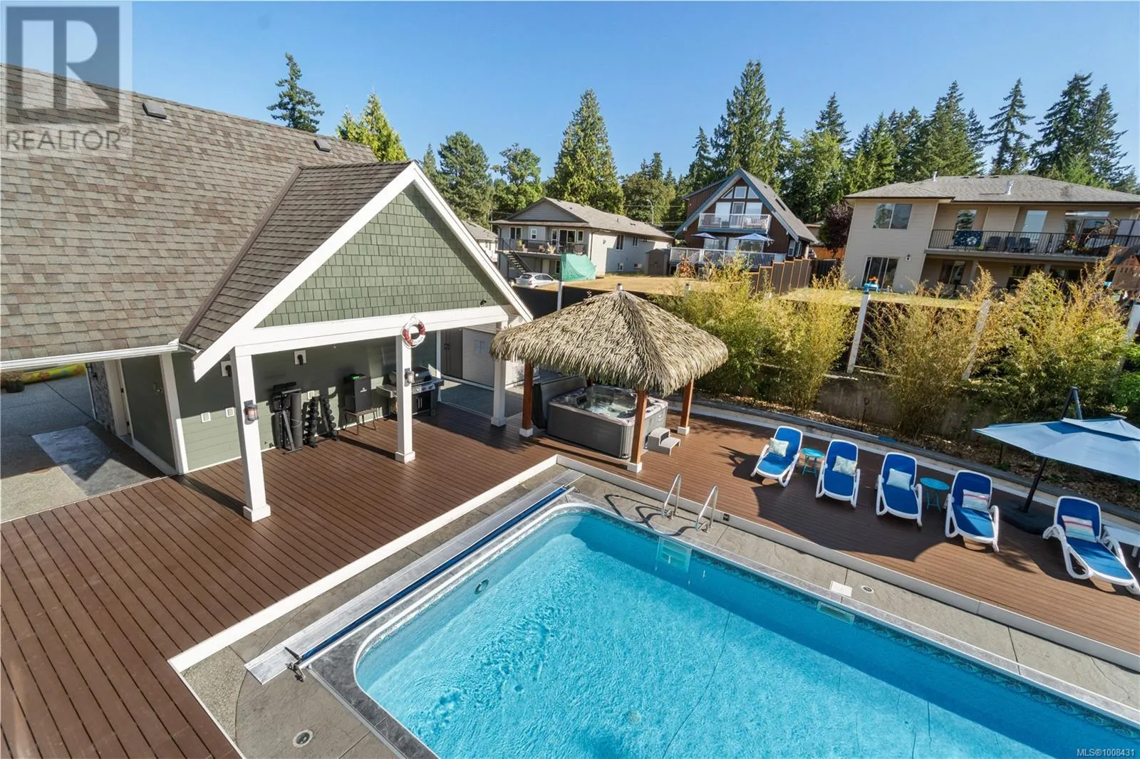 Welcome to 2233 Ashlee Rdâan exceptional 6,000 sq/ft estate in Nanaimo offering luxury, space, and the ultimate entertainerâs lifestyle. The main home features 4 spacious bedrooms, 5 bathrooms, soaring 18-ft vaulted ceilings, a gourmet kitchen, private gym, bar/games room and a state-of-the-art home theater. Step outside to your own resort-style OASIS with a salt water POOL, hot tub, tiki hut, pool house, and expansive patiosâperfect for unforgettable gatherings. A 2-car oversized garage, ample parking, and dedicated RV/boat space add practicality to this dream home. Ideal for extended family or added income, the property also includes a fully self-contained 1-BEDROOM SUITE with private entrance and in-suite laundry. Whether youâre hosting, relaxing, or accommodating multiple generations, this home offers unmatched flexibility, comfort, and style in a prime Nanaimo location. Live where others vacation! (id:27476)