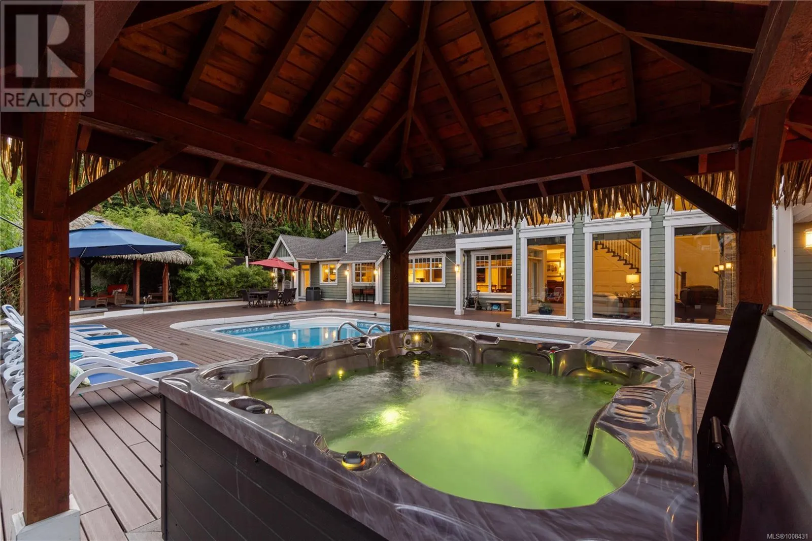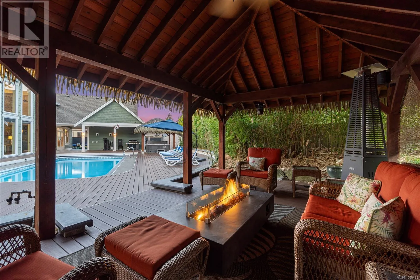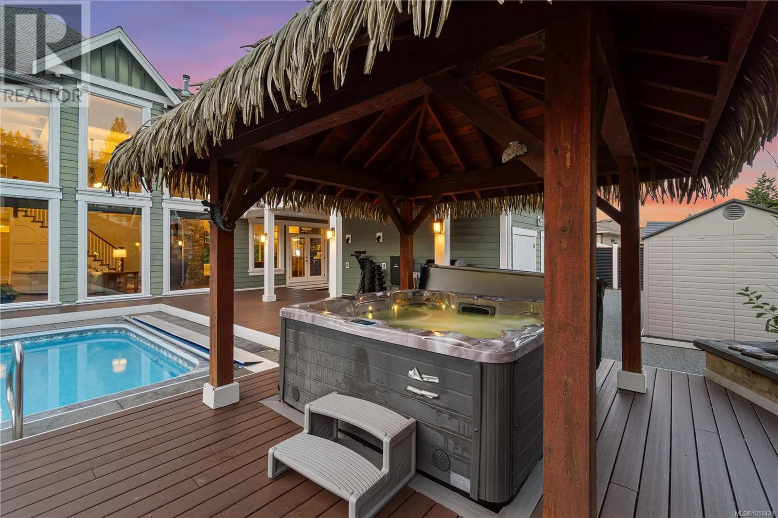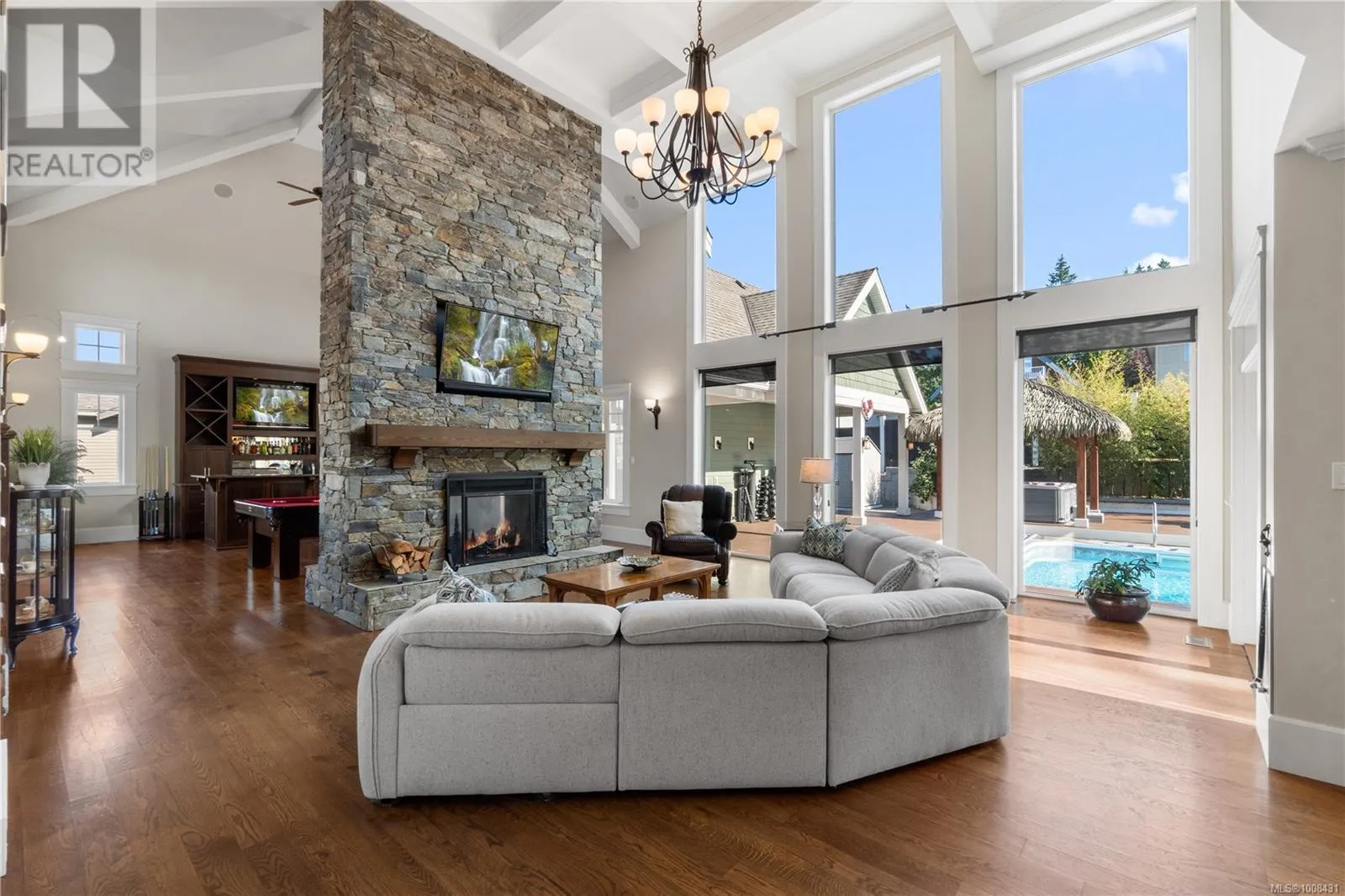 Welcome to 2233 Ashlee Rdâan exceptional 6,000 sq/ft estate in Nanaimo offering luxury, space, and the ultimate entertainerâs lifestyle. The main home features 4 spacious bedrooms, 5 bathrooms, soaring 18-ft vaulted ceilings, a gourmet kitchen, private gym, bar/games room and a state-of-the-art home theater. Step outside to your own resort-style OASIS with a salt water POOL, hot tub, tiki hut, pool house, and expansive patiosâperfect for unforgettable gatherings. A 2-car oversized garage, ample parking, and dedicated RV/boat space add practicality to this dream home. Ideal for extended family or added income, the property also includes a fully self-contained 1-BEDROOM SUITE with private entrance and in-suite laundry. Whether youâre hosting, relaxing, or accommodating multiple generations, this home offers unmatched flexibility, comfort, and style in a prime Nanaimo location. Live where others vacation! (id:27476)