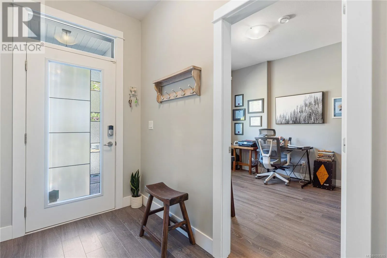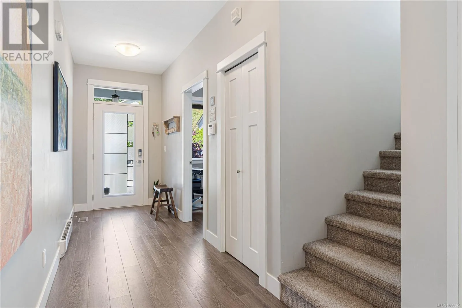 Backing to parkland! Discover your dream home in the master planned Hawthorne community by VIU. This pristine 4 bed, 2.5 bath half duplex (built 2017), backs to Buttertubs Marsh Park Nature Sanctuary & offers easy access to the walking trail just half a block away. Filled with southwest light, the open concept main floor & kitchen is a chefâs delight with high end stainless appliances & generous island. Open concept living/dining design with efficient gas fireplace. A versatile bedroom/home office, half bath & mud room off the garage rounds out the main level. Upstairs, a luxurious primary suite has mountain views, huge walk in closet & spa inspired ensuite. 2 more bedrooms, full bathroom & laundry on the 2nd level. 4' crawlspace, under-stairs storage & garage. Spacious deck & low maintenance & fenced backyard. Walk to VIU, ice rink, aquatic centre & schools. Nature, recreation & community all within reach! View today & fall in love. Lot size from BC Assess. Confirm all measurements. (id:27476)