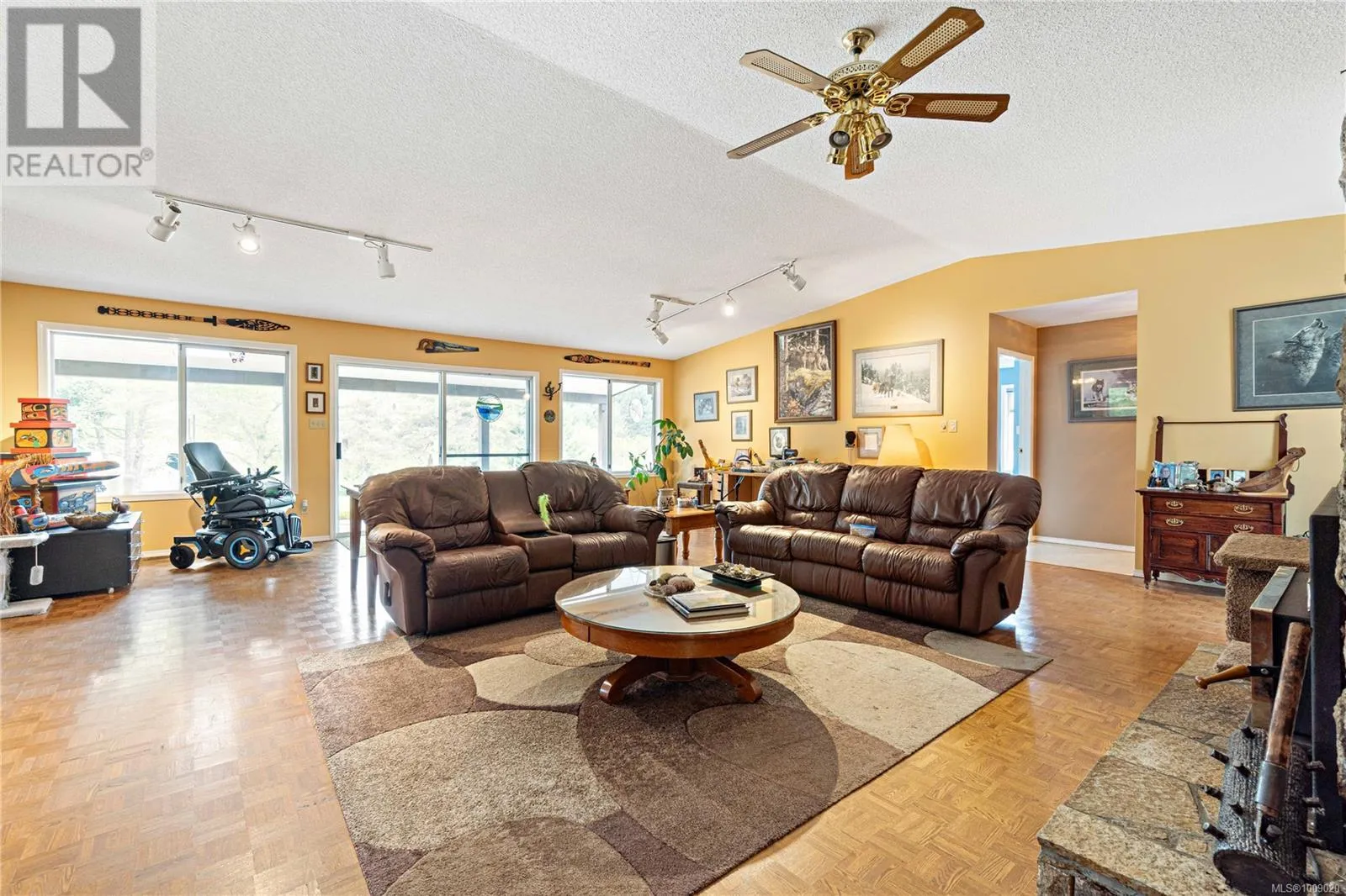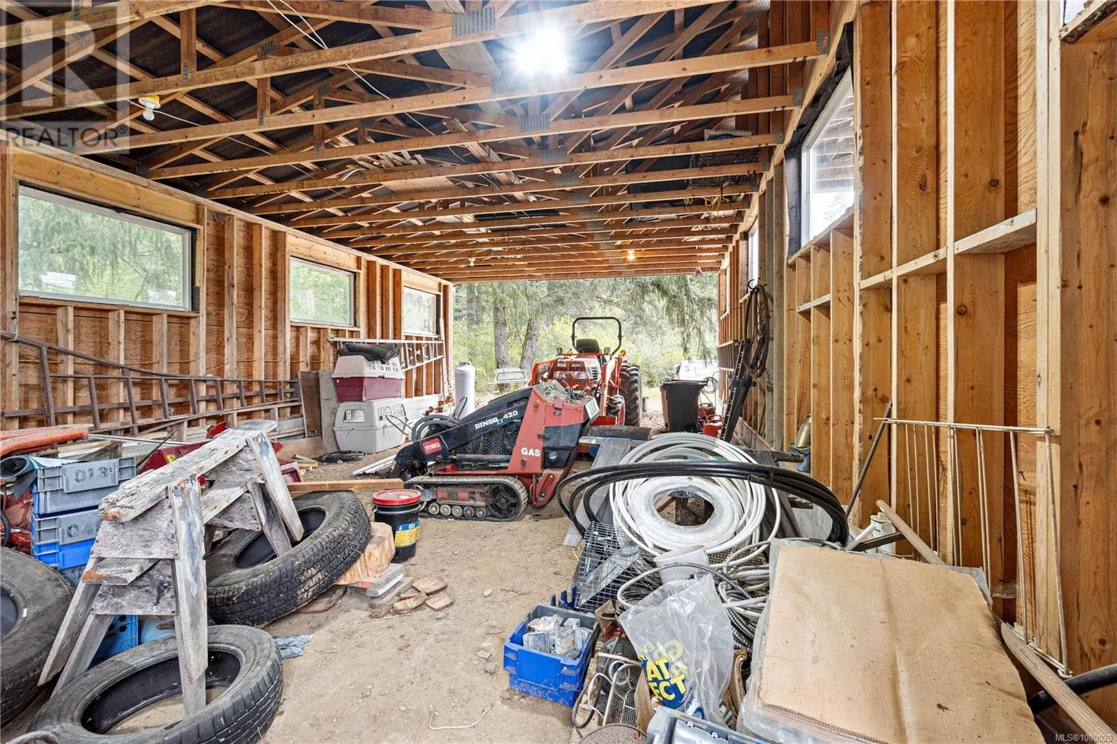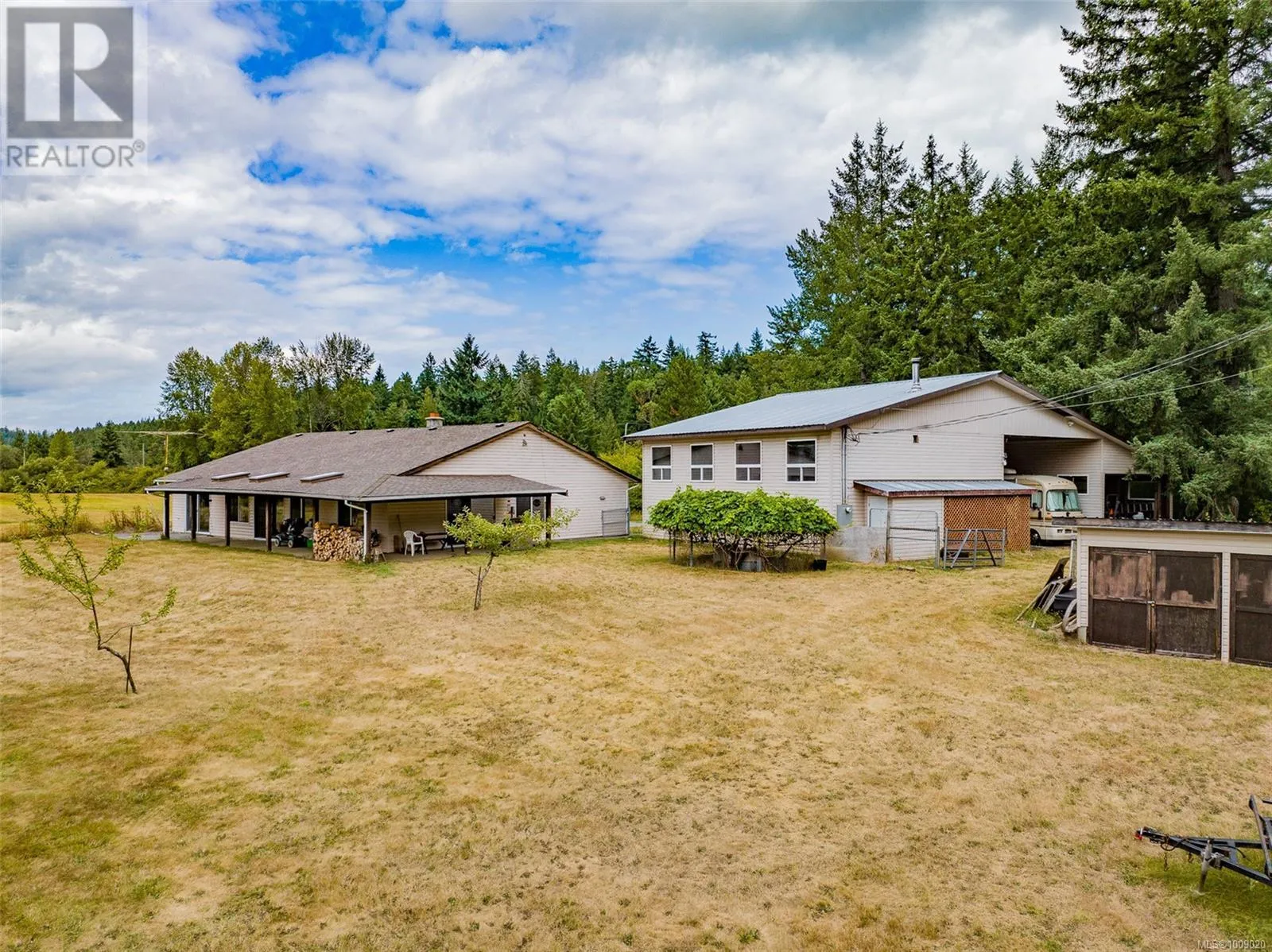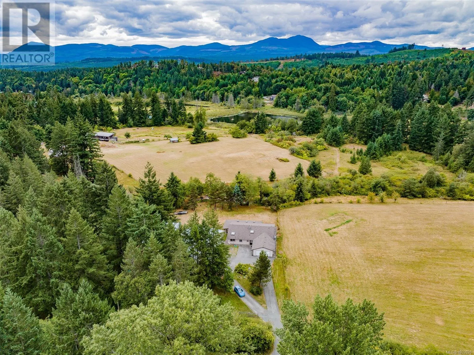 This spectacular 20+ acre property with lake frontage features a custom-built 2,342 sq. ft. 3-bedroom rancher, designed for wheelchair accessibility, complete with an attached 2-car garage. Enjoy the tranquil setting with a beautiful stream running behind the house. The estate also includes an additional 2,188 sq. ft. 2-bedroom house, a 1,129 sq. ft. workshop, an 870 sq. ft. undercover RV carport, a 714 sq. ft. shop/barn, and several other buildings. The main house offers 3 bedrooms, 2 bathrooms, a spacious open-concept living room, dining room, and laundry area. Take in the expansive views of the acreage from the wraparound covered patio. The large workshop is versatile, ready for any project or use you envision. The second home, currently tenanted, provides 2 bedrooms, 1 bathroom, and 2 decks, making it perfect for extended family or generating rental income. The property is adorned with rolling fields, a scenic viewpoint, numerous trees, and fenced areas suitable for livestock. It boasts easy access to Nanaimo while maintaining a completely rural ambiance. Located in the ALR, this prime location is just minutes from town. (id:27476)