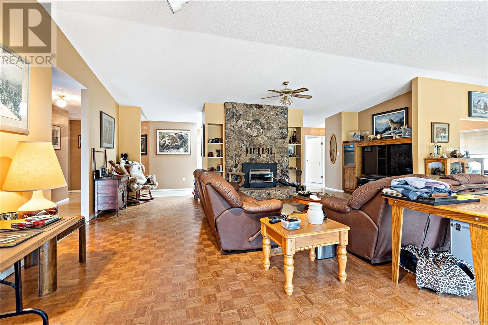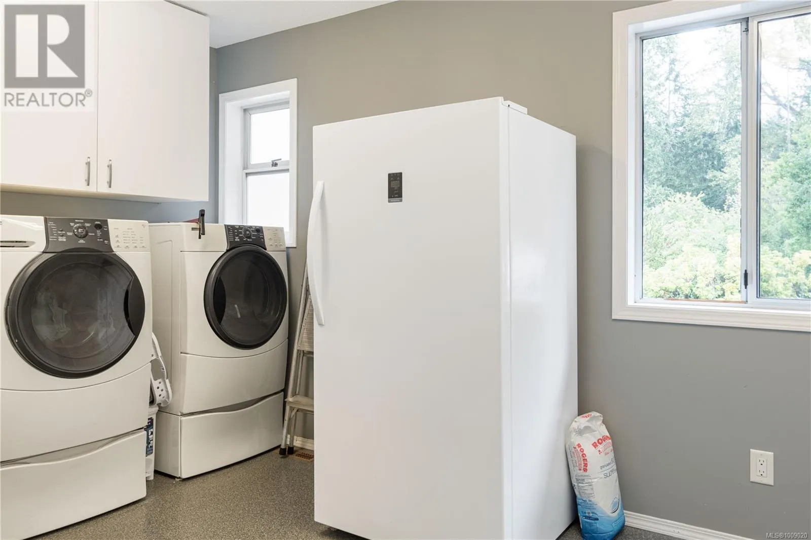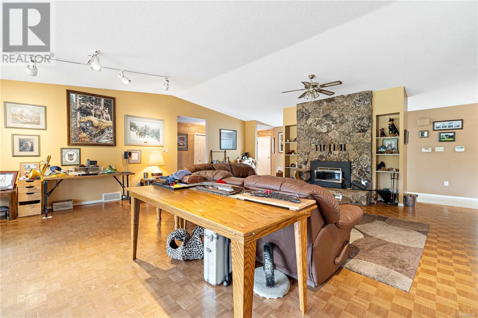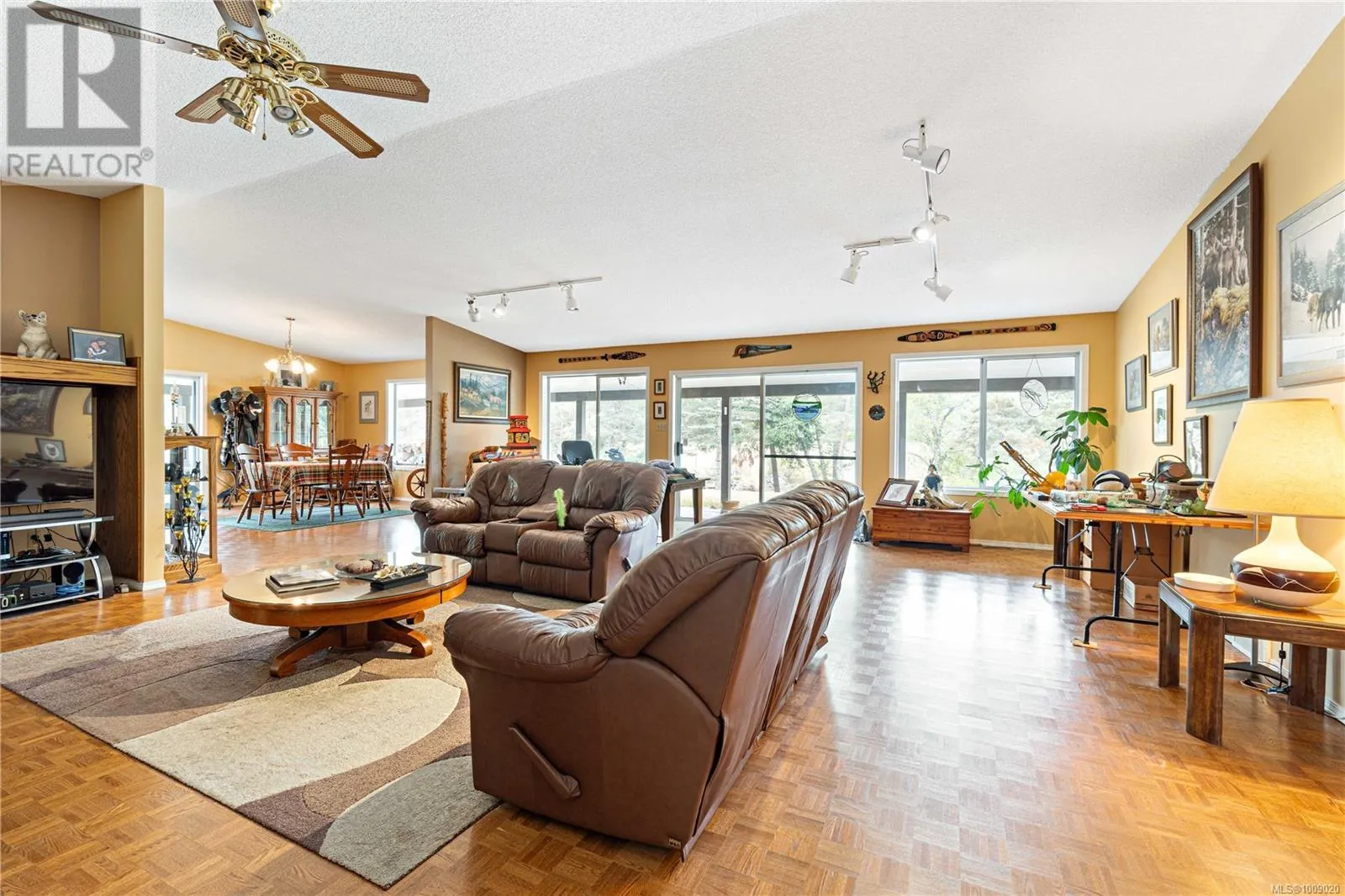 This spectacular 20+ acre property with lake frontage features a custom-built 2,342 sq. ft. 3-bedroom rancher, designed for wheelchair accessibility, complete with an attached 2-car garage. Enjoy the tranquil setting with a beautiful stream running behind the house. The estate also includes an additional 2,188 sq. ft. 2-bedroom house, a 1,129 sq. ft. workshop, an 870 sq. ft. undercover RV carport, a 714 sq. ft. shop/barn, and several other buildings. The main house offers 3 bedrooms, 2 bathrooms, a spacious open-concept living room, dining room, and laundry area. Take in the expansive views of the acreage from the wraparound covered patio. The large workshop is versatile, ready for any project or use you envision. The second home, currently tenanted, provides 2 bedrooms, 1 bathroom, and 2 decks, making it perfect for extended family or generating rental income. The property is adorned with rolling fields, a scenic viewpoint, numerous trees, and fenced areas suitable for livestock. It boasts easy access to Nanaimo while maintaining a completely rural ambiance. Located in the ALR, this prime location is just minutes from town. (id:27476)