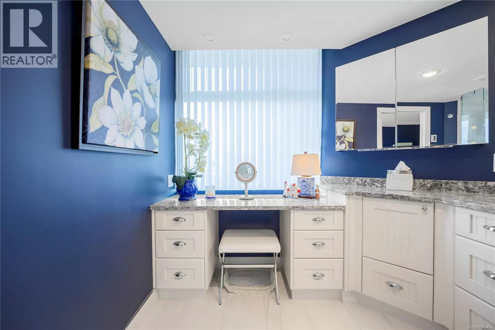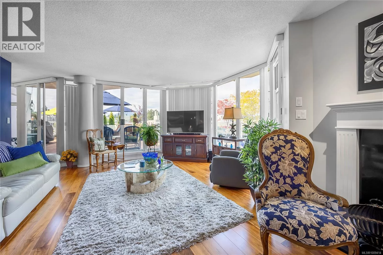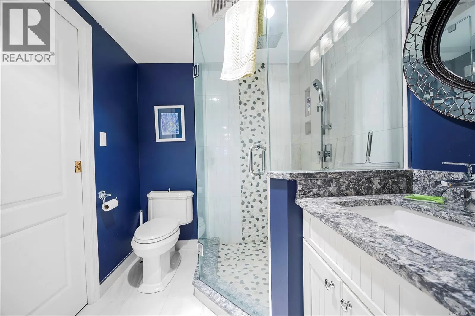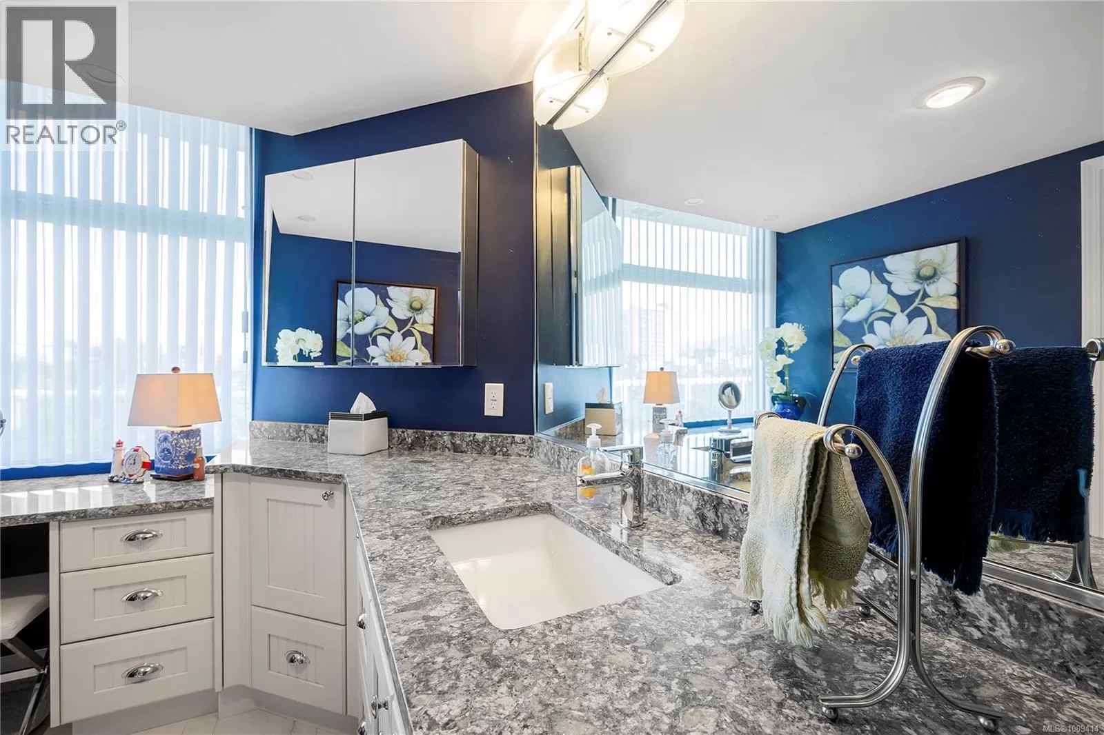 Experience luxury living in this stunning 2 bed, 2 bath 5th floor penthouse condo in the prestigious Gabriola building at Cameron Island, nestled in the heart of downtown Nanaimo. Spanning over 1,700 sq ft of refined interior space, this home offers views of the ocean, city, & mountains through floor-to-ceiling windows & from the expansive 1,000 sq ft private patio. Inside, enjoy rich hardwood & tile flooring, granite countertops, & sleek, newer cabinetry that blends functionality with elegance. The open-concept layout seamlessly connects the living, dining, & kitchen areas, creating a bright & inviting atmosphere. The spacious primary suite features a luxurious ensuite & a walk in closet dressing space. Also features in floor heating in kitchen and ensuite bathroom, Island smart irrigation system on patio, granite counters in kitchen, bathrooms and dry bar. The home is cooled and heated with a newer HVAC system and a feature gas fireplace ''gas included with strata fee'' as well as electric baseboard heaters in each room. With 2 underground parking spaces & large storage room, as well as separate bike and kayak storage. With unbeatable walkability to the waterfront, shopping, restaurants & entertainment this exclusive penthouse offers the best of west coast living. 1 Dog or Cat friendly (Max 25 lbs). All data is approximate and to be verified. (id:27476)