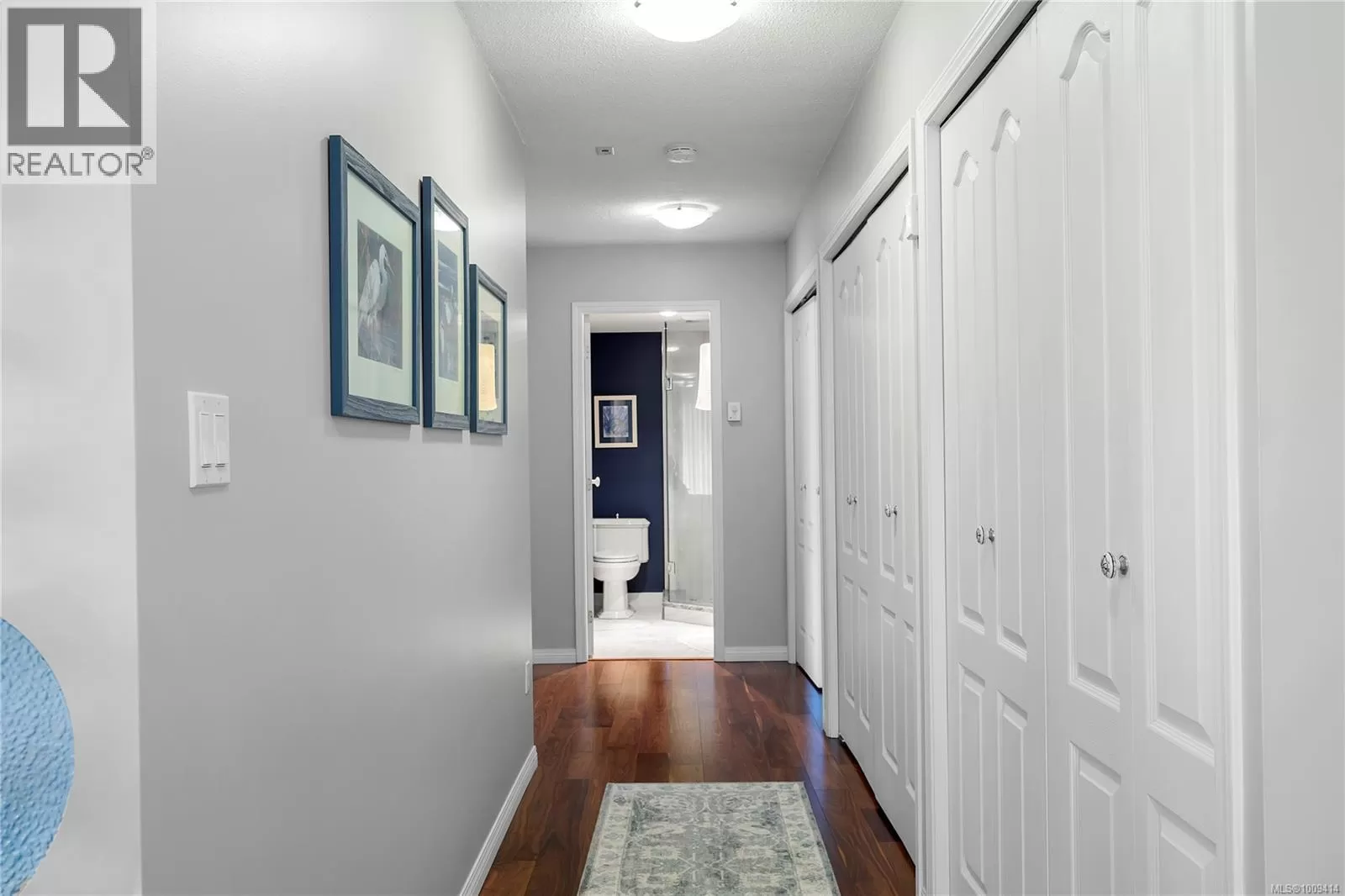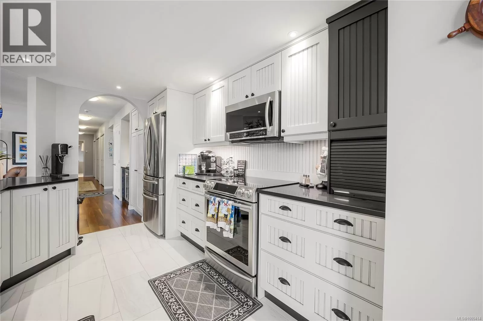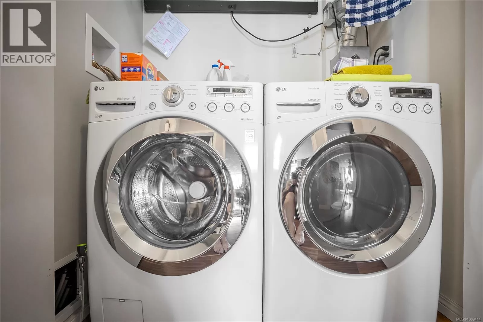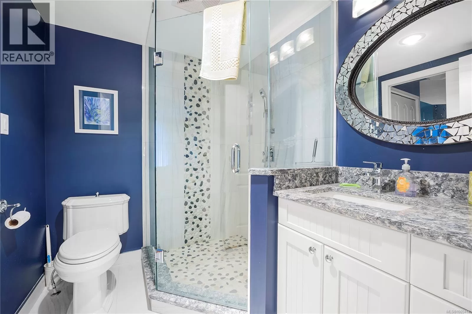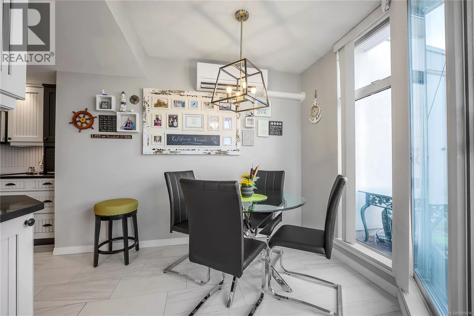 Experience luxury living in this stunning 2 bed, 2 bath 5th floor penthouse condo in the prestigious Gabriola building at Cameron Island, nestled in the heart of downtown Nanaimo. Spanning over 1,700 sq ft of refined interior space, this home offers views of the ocean, city, & mountains through floor-to-ceiling windows & from the expansive 1,000 sq ft private patio. Inside, enjoy rich hardwood & tile flooring, granite countertops, & sleek, newer cabinetry that blends functionality with elegance. The open-concept layout seamlessly connects the living, dining, & kitchen areas, creating a bright & inviting atmosphere. The spacious primary suite features a luxurious ensuite & a walk in closet dressing space. Also features in floor heating in kitchen and ensuite bathroom, Island smart irrigation system on patio, granite counters in kitchen, bathrooms and dry bar. The home is cooled and heated with a newer HVAC system and a feature gas fireplace ''gas included with strata fee'' as well as electric baseboard heaters in each room. With 2 underground parking spaces & large storage room, as well as separate bike and kayak storage. With unbeatable walkability to the waterfront, shopping, restaurants & entertainment this exclusive penthouse offers the best of west coast living. 1 Dog or Cat friendly (Max 25 lbs). All data is approximate and to be verified. (id:27476)