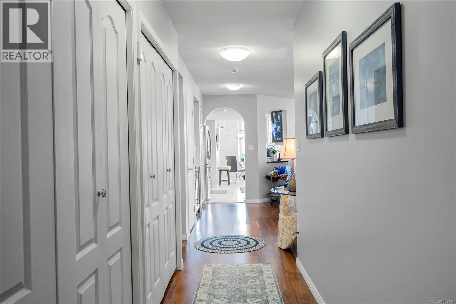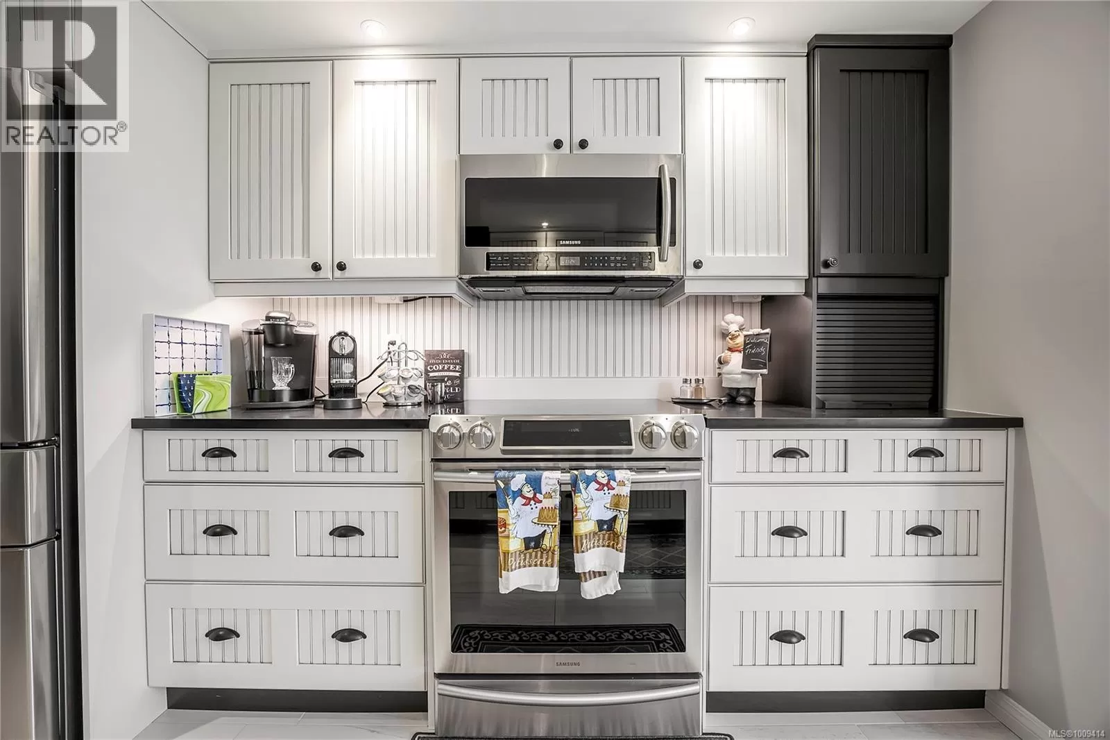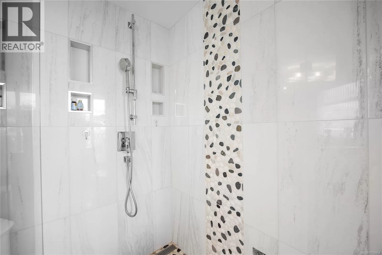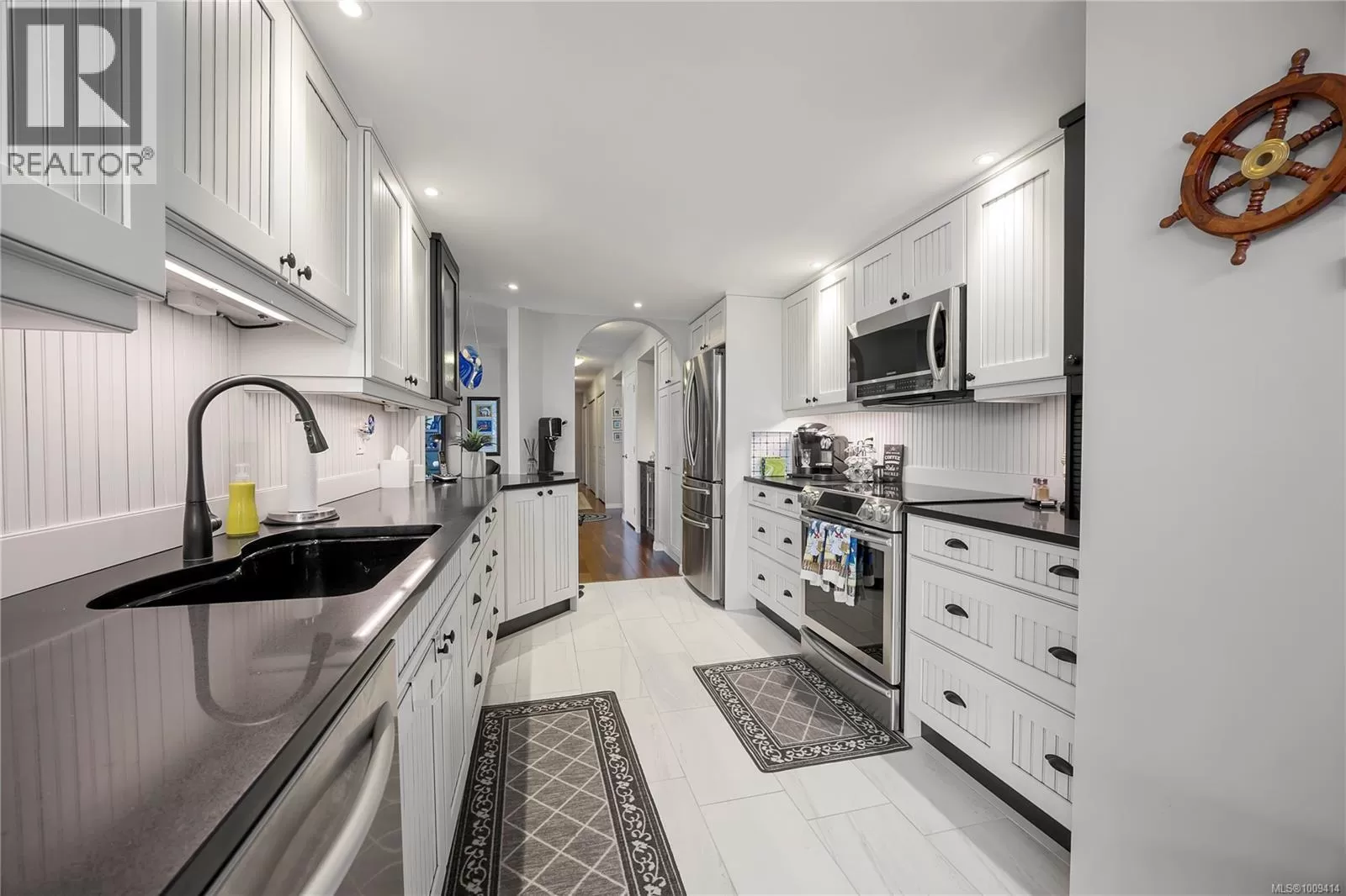 Experience luxury living in this stunning 2 bed, 2 bath 5th floor penthouse condo in the prestigious Gabriola building at Cameron Island, nestled in the heart of downtown Nanaimo. Spanning over 1,700 sq ft of refined interior space, this home offers views of the ocean, city, & mountains through floor-to-ceiling windows & from the expansive 1,000 sq ft private patio. Inside, enjoy rich hardwood & tile flooring, granite countertops, & sleek, newer cabinetry that blends functionality with elegance. The open-concept layout seamlessly connects the living, dining, & kitchen areas, creating a bright & inviting atmosphere. The spacious primary suite features a luxurious ensuite & a walk in closet dressing space. Also features in floor heating in kitchen and ensuite bathroom, Island smart irrigation system on patio, granite counters in kitchen, bathrooms and dry bar. The home is cooled and heated with a newer HVAC system and a feature gas fireplace ''gas included with strata fee'' as well as electric baseboard heaters in each room. With 2 underground parking spaces & large storage room, as well as separate bike and kayak storage. With unbeatable walkability to the waterfront, shopping, restaurants & entertainment this exclusive penthouse offers the best of west coast living. 1 Dog or Cat friendly (Max 25 lbs). All data is approximate and to be verified. (id:27476)