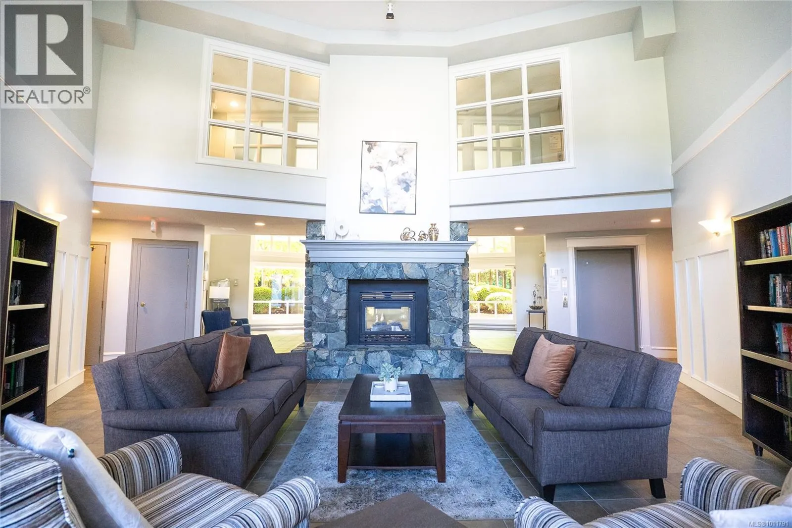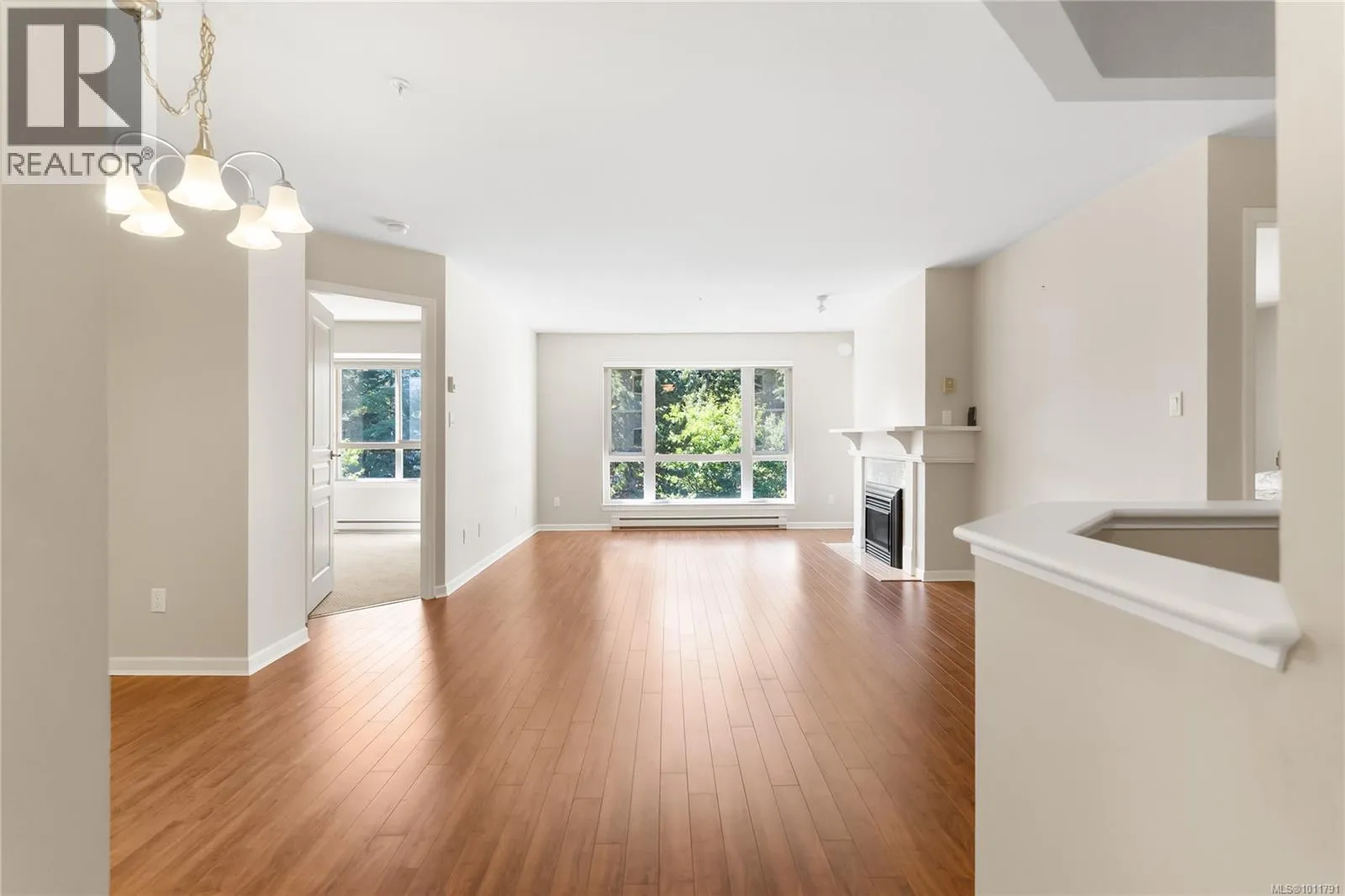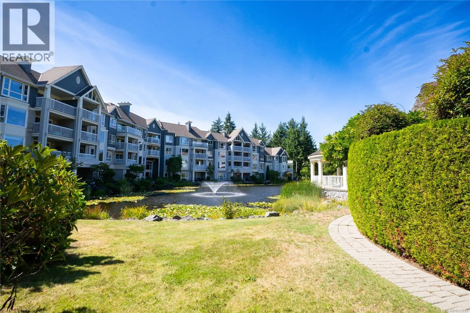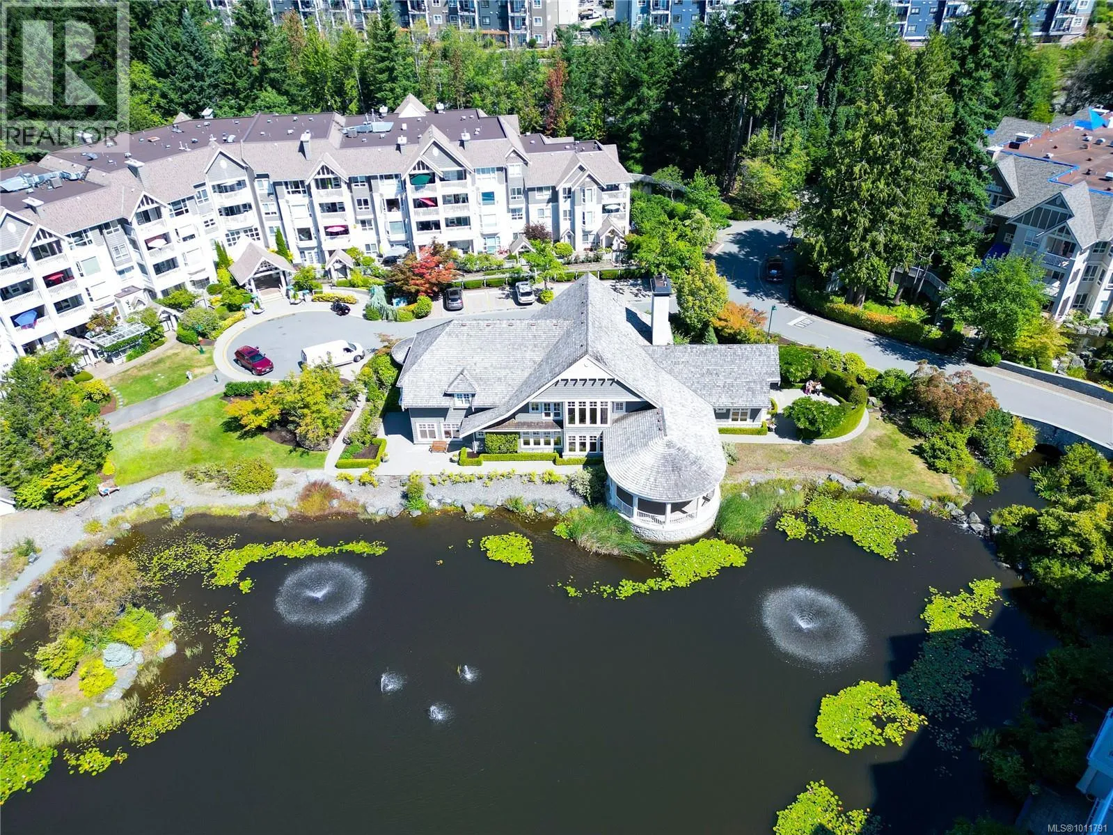 Bright and welcoming, this immaculate top floor 2-bedroom, 2-bathroom condo in North Nanaimo's Longwood community offers privacy, comfort, and stunning garden and forest views. This impressive suite in the Ambleside building has attractive laminate flooring and features a spacious deck for outdoor enjoyment and an open-concept kitchen, dining, and living area highlighted by a newer gas fireplace. The kitchen includes a pantry with well-maintained appliances, while the home also provides secure underground parking and a storage locker. Residents enjoy outstanding amenities, including a clubhouse, guest suites, exercise and social rooms, and beautifully landscaped grounds with a man-made lake. The impressive building entry features a grand fireplace and lounge, reflecting the quality of this sought-after residential community. Measurements are approx. (id:27476)