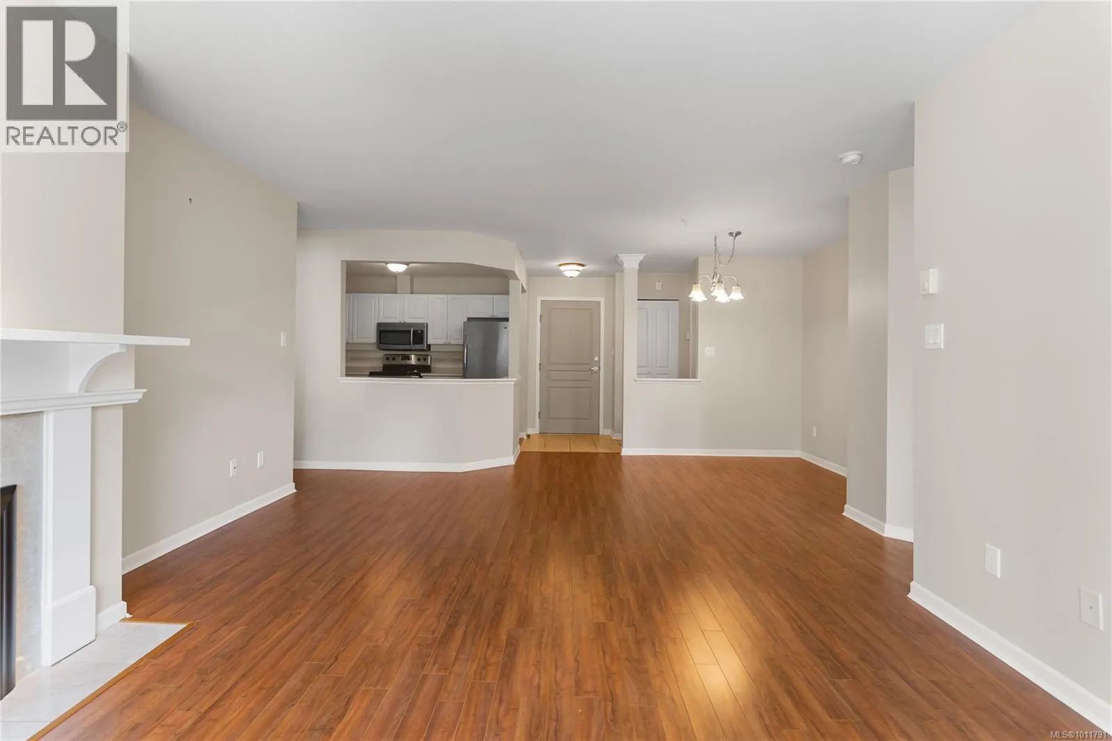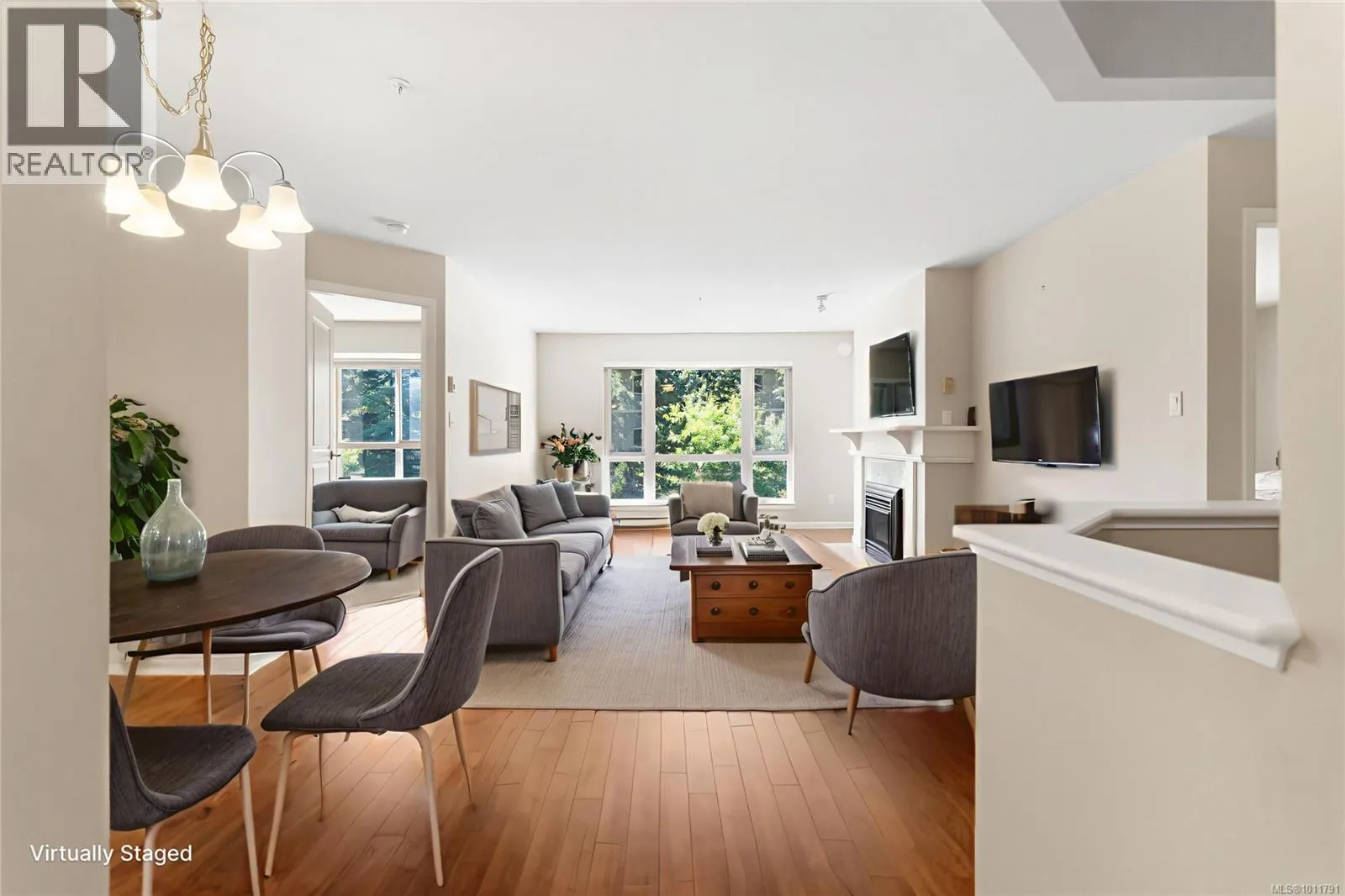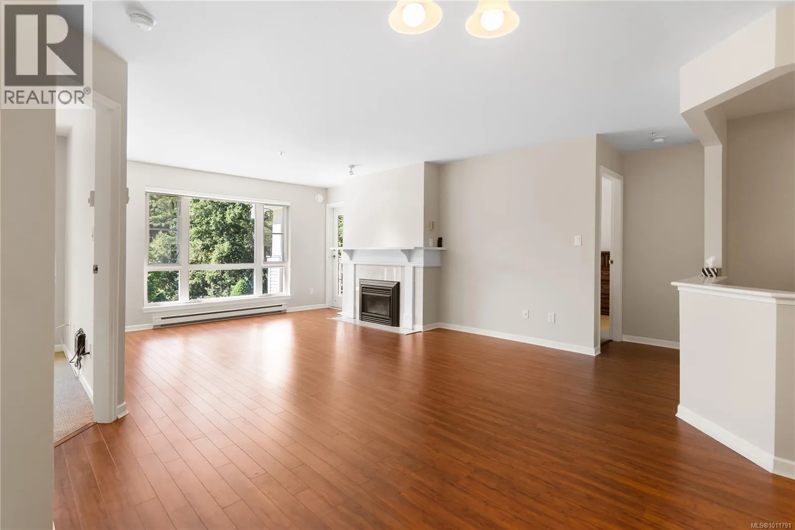 Bright and welcoming, this immaculate top floor 2-bedroom, 2-bathroom condo in North Nanaimo's Longwood community offers privacy, comfort, and stunning garden and forest views. This impressive suite in the Ambleside building has attractive laminate flooring and features a spacious deck for outdoor enjoyment and an open-concept kitchen, dining, and living area highlighted by a newer gas fireplace. The kitchen includes a pantry with well-maintained appliances, while the home also provides secure underground parking and a storage locker. Residents enjoy outstanding amenities, including a clubhouse, guest suites, exercise and social rooms, and beautifully landscaped grounds with a man-made lake. The impressive building entry features a grand fireplace and lounge, reflecting the quality of this sought-after residential community. Measurements are approx. (id:27476)