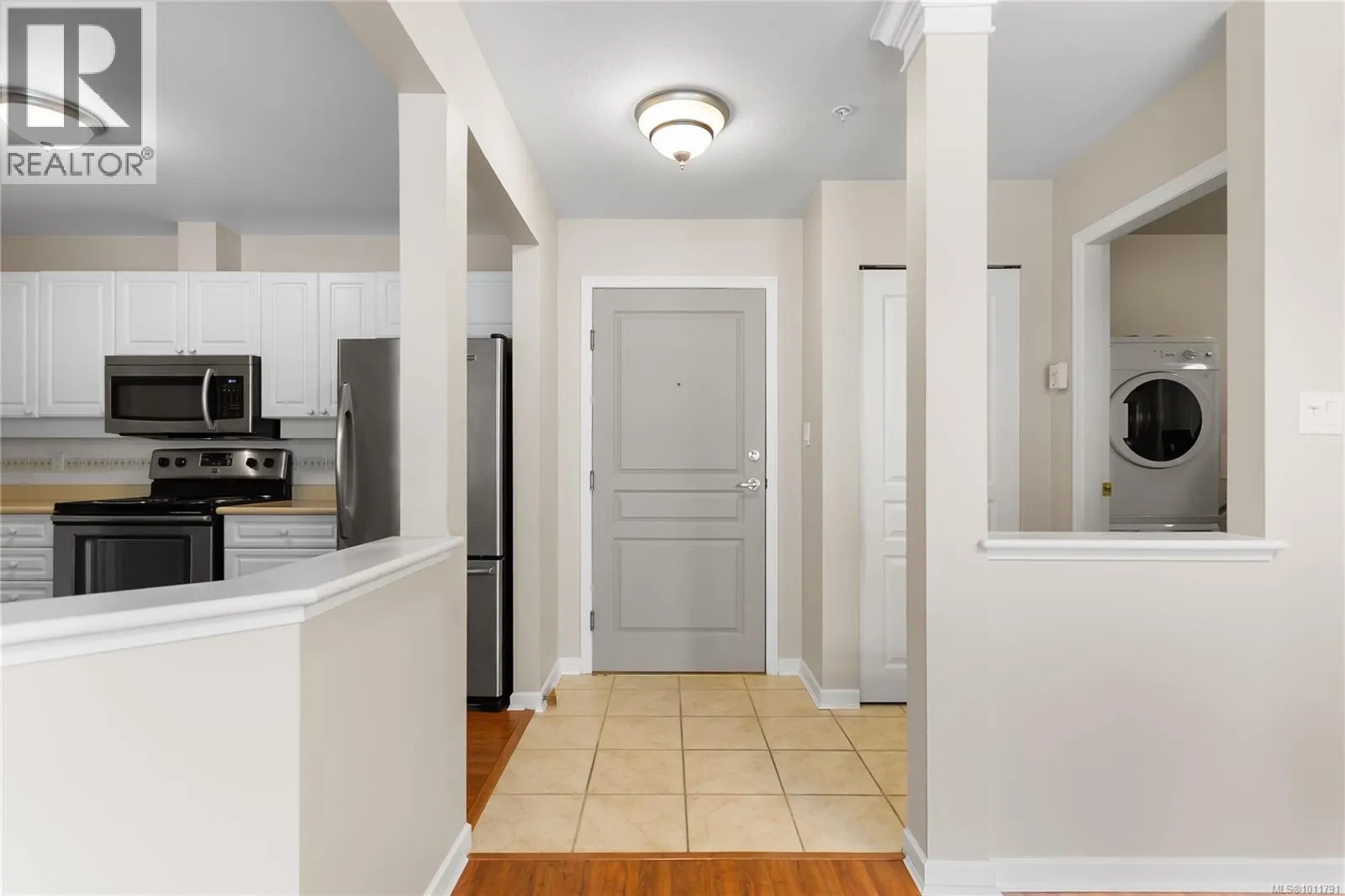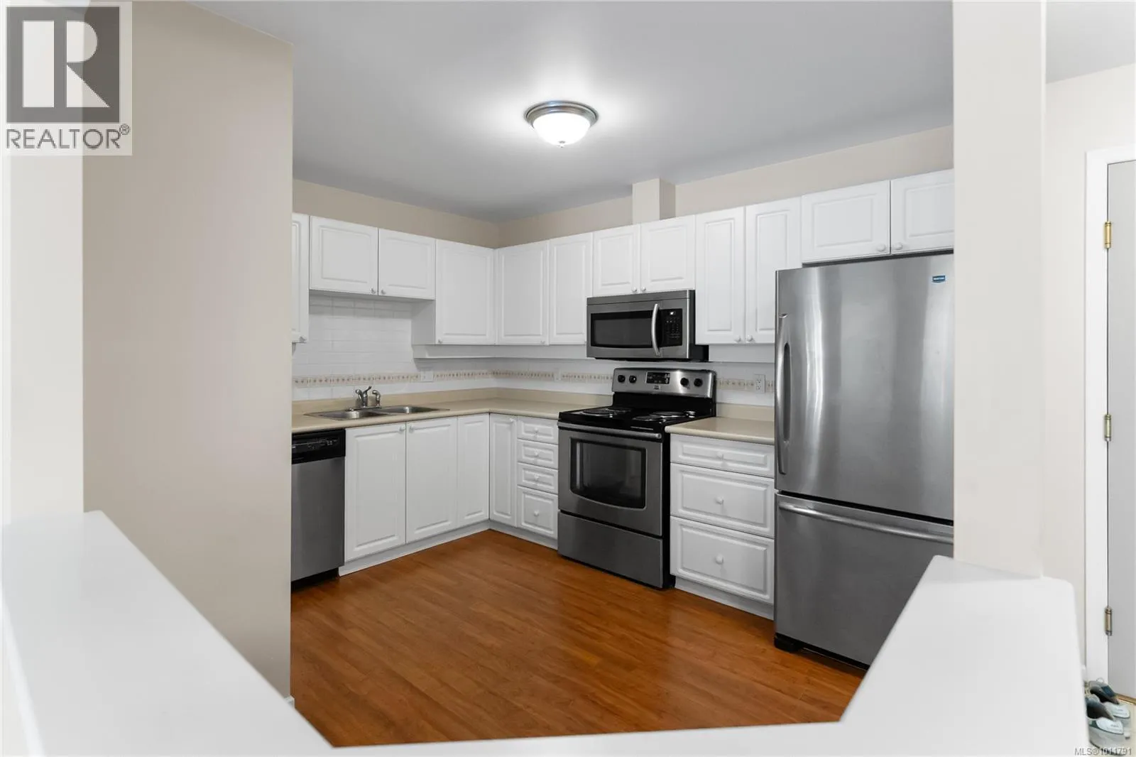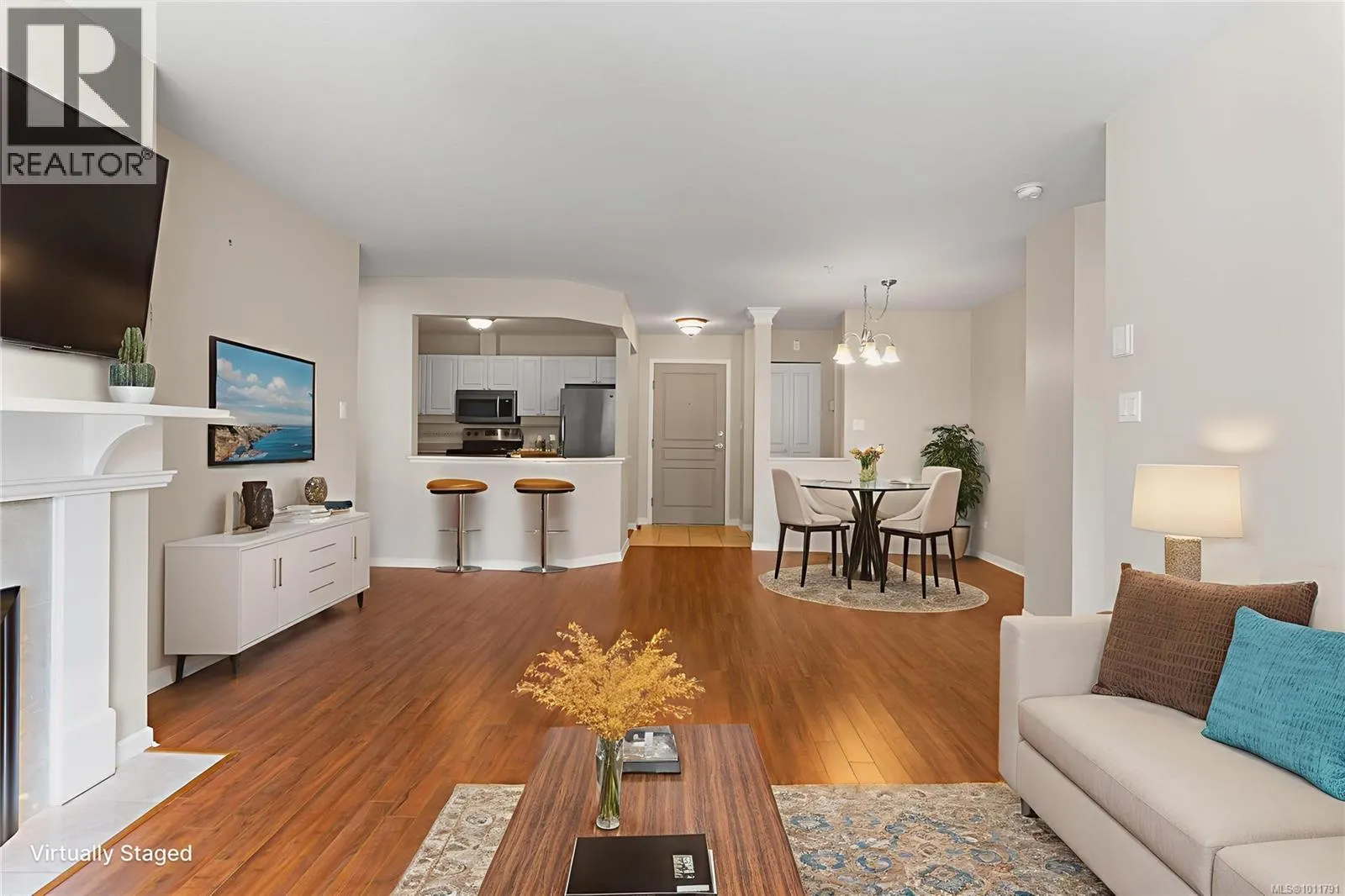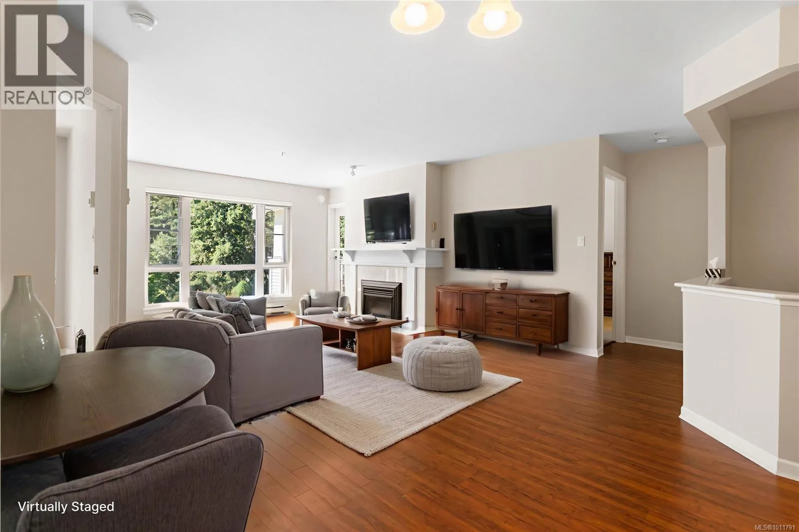 Bright and welcoming, this immaculate top floor 2-bedroom, 2-bathroom condo in North Nanaimo's Longwood community offers privacy, comfort, and stunning garden and forest views. This impressive suite in the Ambleside building has attractive laminate flooring and features a spacious deck for outdoor enjoyment and an open-concept kitchen, dining, and living area highlighted by a newer gas fireplace. The kitchen includes a pantry with well-maintained appliances, while the home also provides secure underground parking and a storage locker. Residents enjoy outstanding amenities, including a clubhouse, guest suites, exercise and social rooms, and beautifully landscaped grounds with a man-made lake. The impressive building entry features a grand fireplace and lounge, reflecting the quality of this sought-after residential community. Measurements are approx. (id:27476)