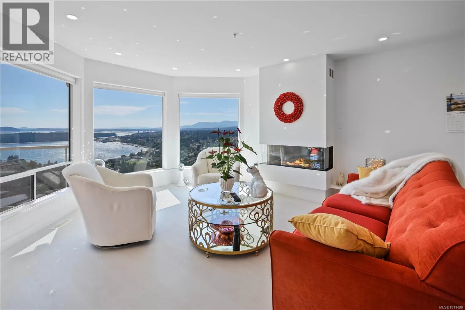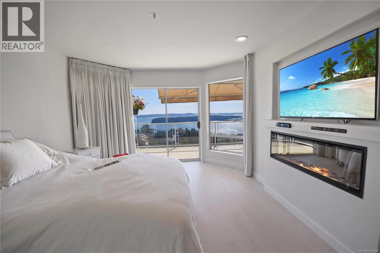 Panoramic Views from this totally renovated condo. Perched above Departure Bay, this fully renovated residence captures breathtaking views of the ocean, coastal mountains, and the city of Nanaimo. Everything has been done from the floors to the ceilings⦠all in high quality finishings â absolutely stunning. A bright, spacious layout with smooth ceilings, elegant finishes, and two expansive decksâone covered, both perfect for soaking in the ever-changing scenery. The chefâs kitchen is a true showpiece, featuring a Miele fridge-freezer, Monogram induction cooktop, and Miele range, all complemented by sleek design and ample storage. The living room invites you to unwind beside the cozy gas fireplace, while the primary suite offers its own fireplace for a touch of warmth and ambiance. The spa-inspired ensuite boasts heated floors, a soaker tub, and a separate shower, creating a private retreat. Smart comforts include electric skylight shades, an automatic sunshade with wind override, and car charger readiness for your EV. Year-round efficiency comes with a heat pump and gas furnace (New in 2019). Practicality hasnât been overlookedâthereâs a huge laundry and entry area done in the same high quality finishes as the rest of the home. Downstairs is a 2nd bedroom, full bathroom, large family room, a den or media room, wine storage, and the mechanical room with more storage. With 2 bedrooms, 3 bathrooms, a family room, and plenty of parking, this home offers both space and flexibility. This one-of-a-kind condo combines high-end finishes, sweeping views, and thoughtful upgrades, delivering the perfect balance of luxury and livability in one of Nanaimoâs most desirable locations. (id:27476)