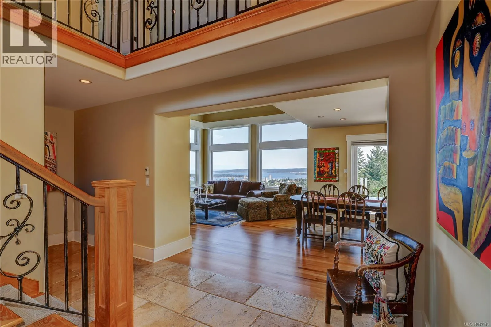 Panoramic Ocean Views in the Heart of College Heights Welcome to this exceptional one-owner residence, perfectly situated to offer breathtaking views of Nanaimo Harbour. This beautifully designed home spans three levels and is ideal for families of all ages, featuring four spacious bedroomsâthree located on the top floor and one on the lower level. Discover an updated kitchen that flows seamlessly into a large entertainer's deck to host or simply enjoy the stunning ocean vistas. Equipped with a state-of-the-art 3C3 Mitsubishi heat pump valued at over $40,000, ensuring optimal heating and cooling efficiency year-round, Highlights include: â¢A primary bedroom oasis with a gorgeous ensuite and a generous walk-in closet. â¢Under-floor radiant heating in the mud room and main entry. â¢Underground sprinkler system to keep your garden lush and vibrant. Conveniently located close to all amenities, including transit, elementary/high schools, VIU and scenic Westwood Lake. (id:27476)
