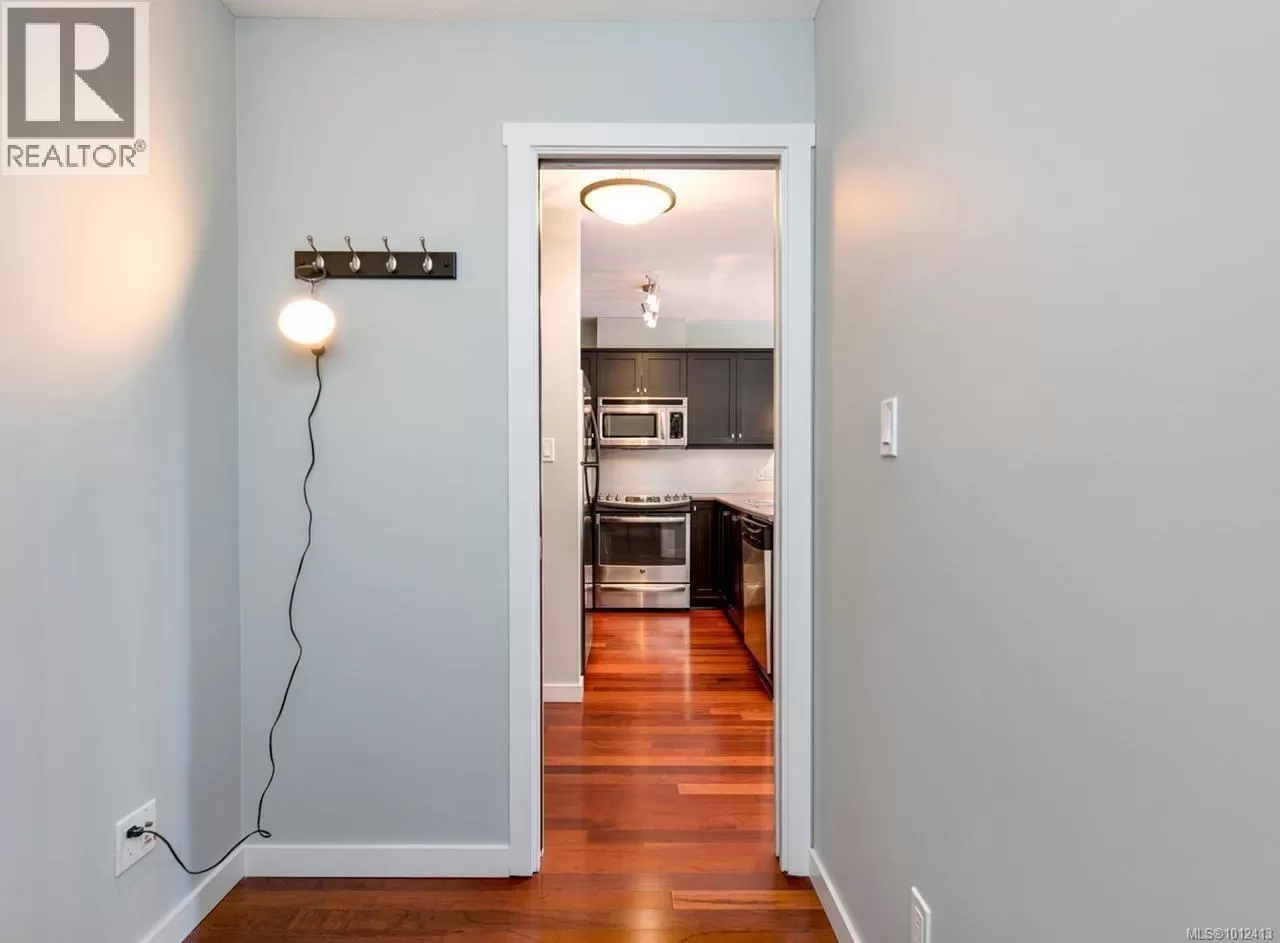 Downtown Nanaimo Condo for Sale | Modern 1 Bed + Private Entrance in Old City Quarter Welcome to Vivo Residences, one of the most sought-after downtown Nanaimo condo developments. This modern 1-bedroom condo with a private entrance offers the perfect combination of style, convenience, and location in the heart of Nanaimoâs historic Old City Quarter. Vivo Residences provides peace of mind and a vibrant urban lifestyle just steps from boutique shops, restaurants, cafes, theatres, the seawall, and Nanaimoâs picturesque waterfront. Inside, youâll find a bright open-concept layout designed for modern living. The spacious kitchen features stained maple cabinets, stainless steel appliances, and a full-sized peninsula with breakfast barâideal for cooking, entertaining, or casual dining. Large windows bring in lots of natural light, while the bedroom opens to a private balcony overlooking the landscaped courtyard. Additional highlights include in-suite laundry, and a den or large storage area The Vivo building is known for its amenities, including a fitness centre, secure monitored entry, bike storage, storage locker, and underground parking (with extra street parking nearby). This is a pet-friendly condo (see bylaws) and a strong investment property with rentals permitted (see bylaws). With easy access to public transit, Vancouver Island University (VIU), BC Ferries, Hullo fast ferry to Vancouver, and seaplane service, commuting and travel are effortless. Donât miss this rare opportunity to own a modern downtown Nanaimo condo in the Old City Quarterâperfect for first-time buyers, downsizers, or investors. Book your private showing today and experience the best of urban Nanaimo living. (id:27476)