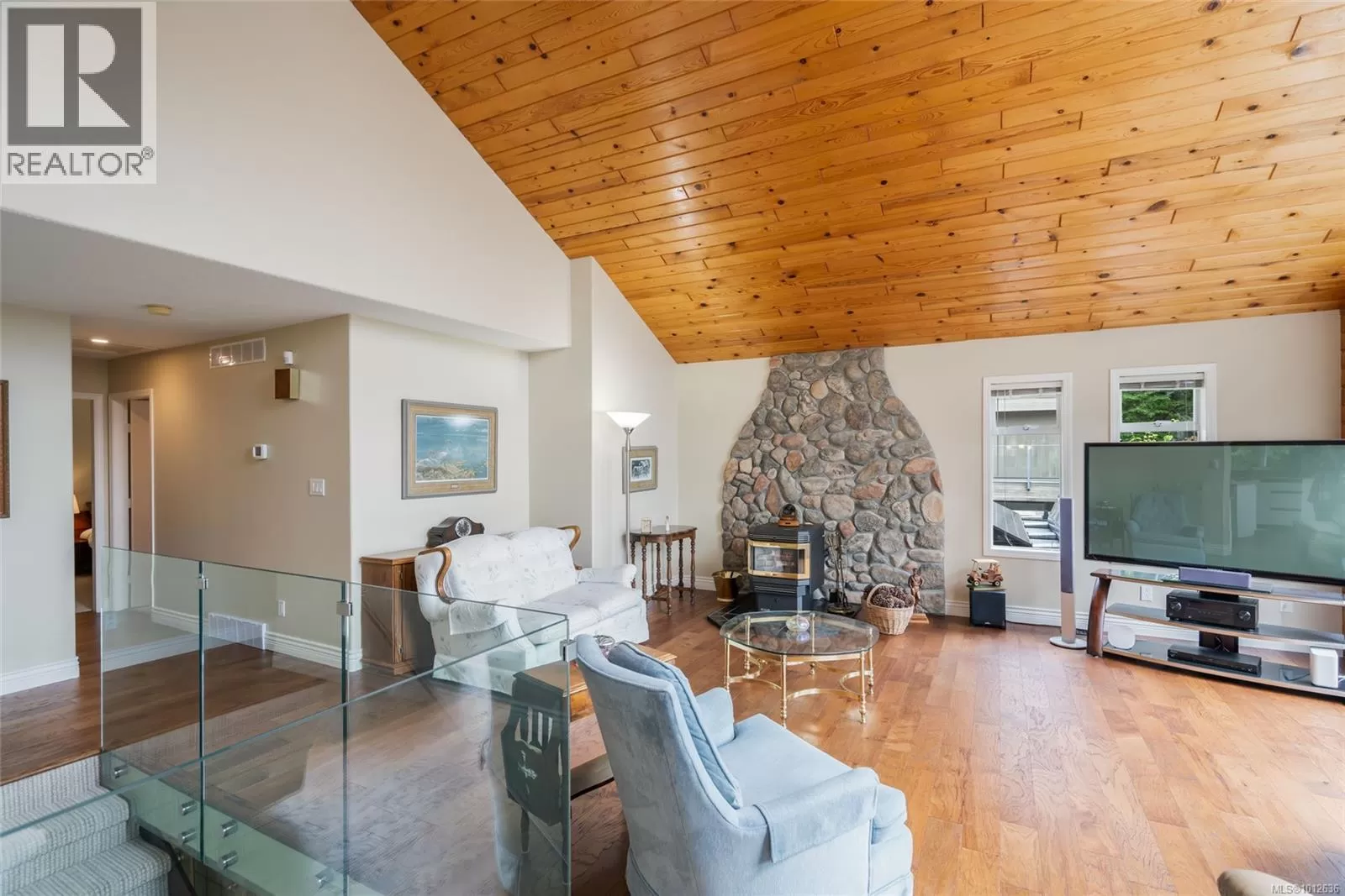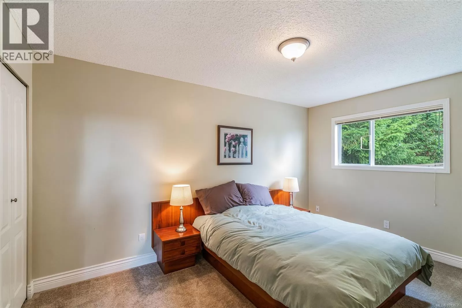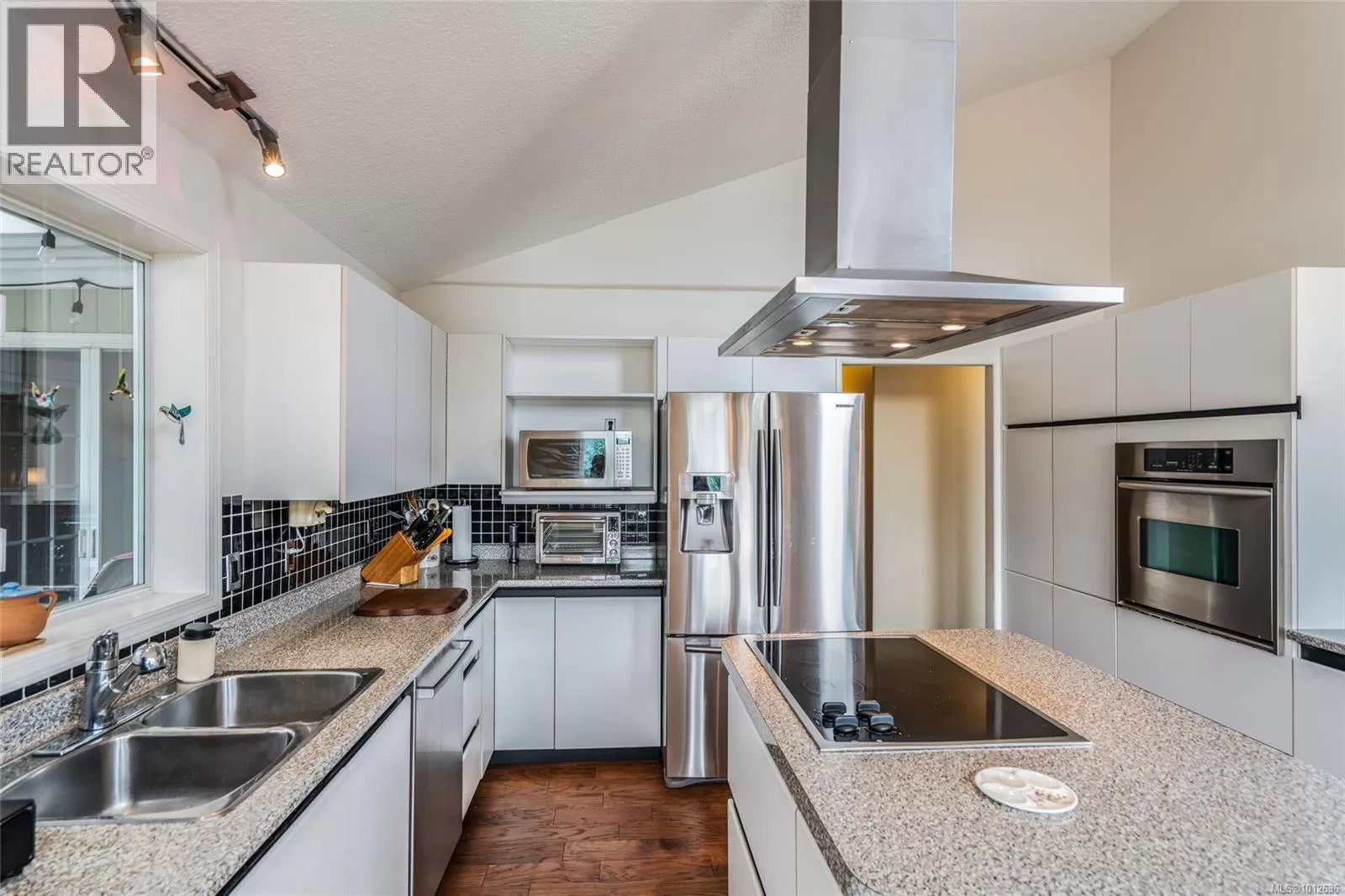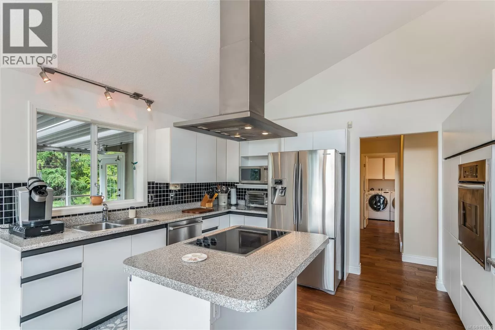 Grand Westcoast Style home in Departure Bay's Sherwood Forest. Conveniently Located high off a no through road in a quiet & private area close to schools, shopping, beaches and ferries. The yard is low maintenance, sloped & secluded at the back. This spacious 3000 sq ft home features many beautiful upgrades. The rooms are large open & bright with 16' 10 vaulted ceilings in the living room & 12'8'' ceilings in the fantastic kitchen. Engineered wood flooring is throughout the main floor with new carpet in the bedrooms. Shiny granite-look countertops, newer stainless appliances & double French doors off the kitchen to a cool covered deck. Mastersuite has a massive walk in closet & ensuite with walk in shower, skylight, double sinks, new vanity & toilet. The lower floor offers a two bedroom suite (unauthorized) plus 3rd bedroom or office. Large oversized garage with workbench. RV Parking. (id:27476)