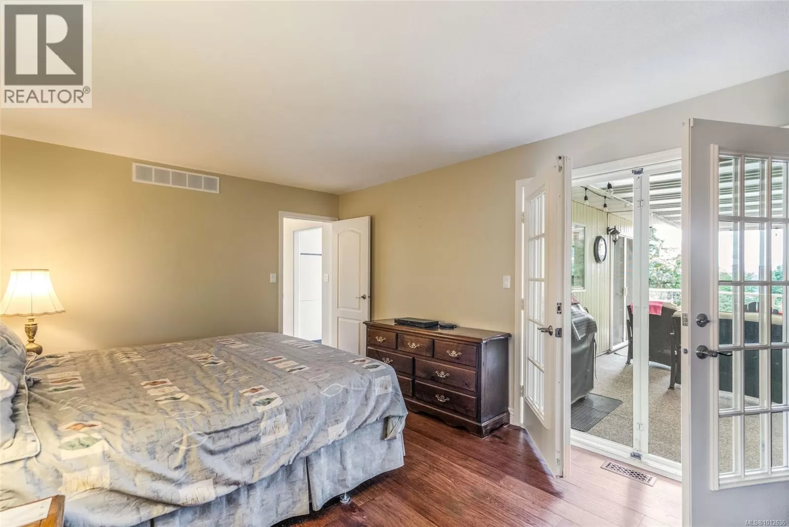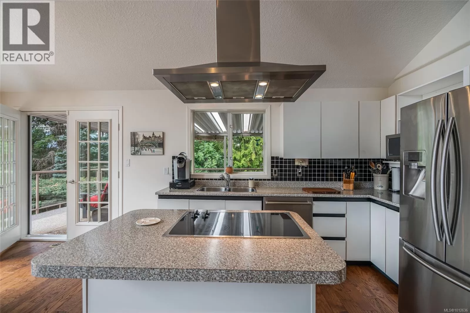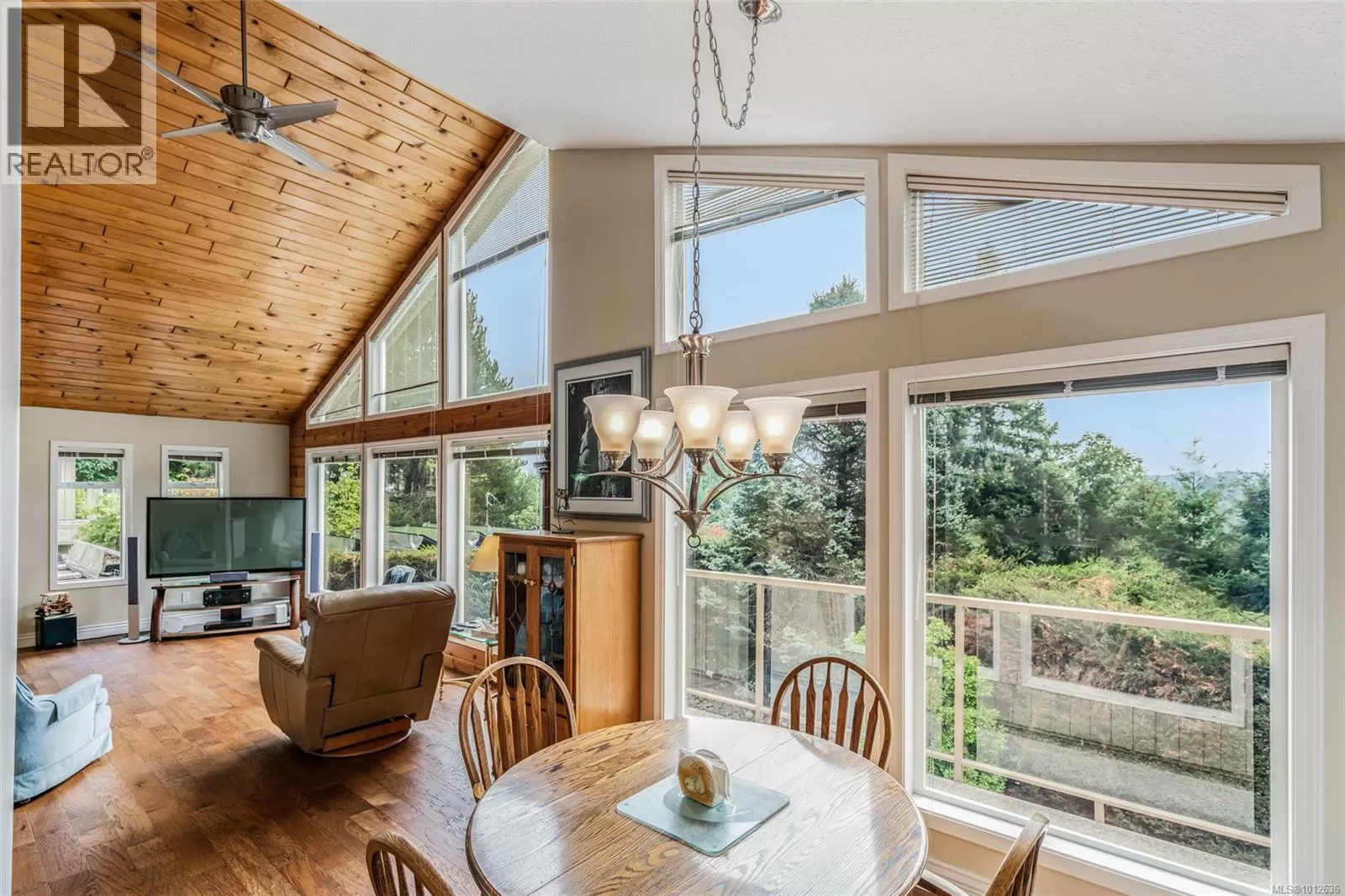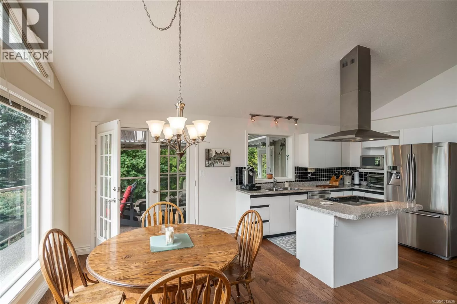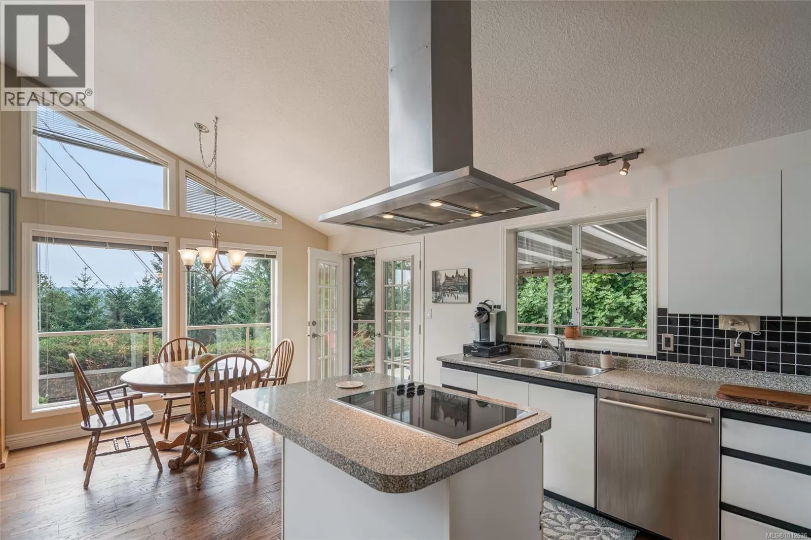 Grand Westcoast Style home in Departure Bay's Sherwood Forest. Conveniently Located high off a no through road in a quiet & private area close to schools, shopping, beaches and ferries. The yard is low maintenance, sloped & secluded at the back. This spacious 3000 sq ft home features many beautiful upgrades. The rooms are large open & bright with 16' 10 vaulted ceilings in the living room & 12'8'' ceilings in the fantastic kitchen. Engineered wood flooring is throughout the main floor with new carpet in the bedrooms. Shiny granite-look countertops, newer stainless appliances & double French doors off the kitchen to a cool covered deck. Mastersuite has a massive walk in closet & ensuite with walk in shower, skylight, double sinks, new vanity & toilet. The lower floor offers a two bedroom suite (unauthorized) plus 3rd bedroom or office. Large oversized garage with workbench. RV Parking. (id:27476)