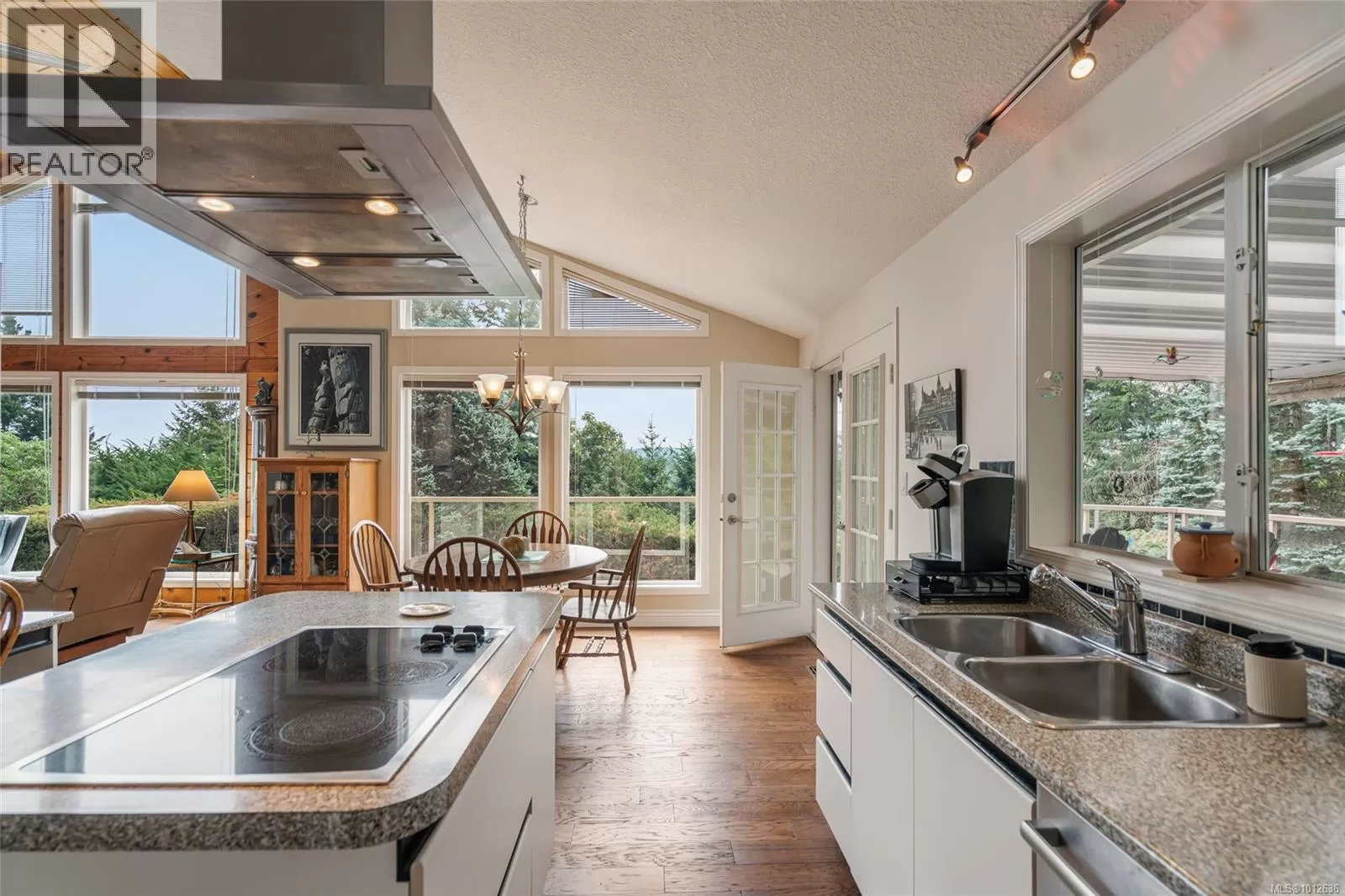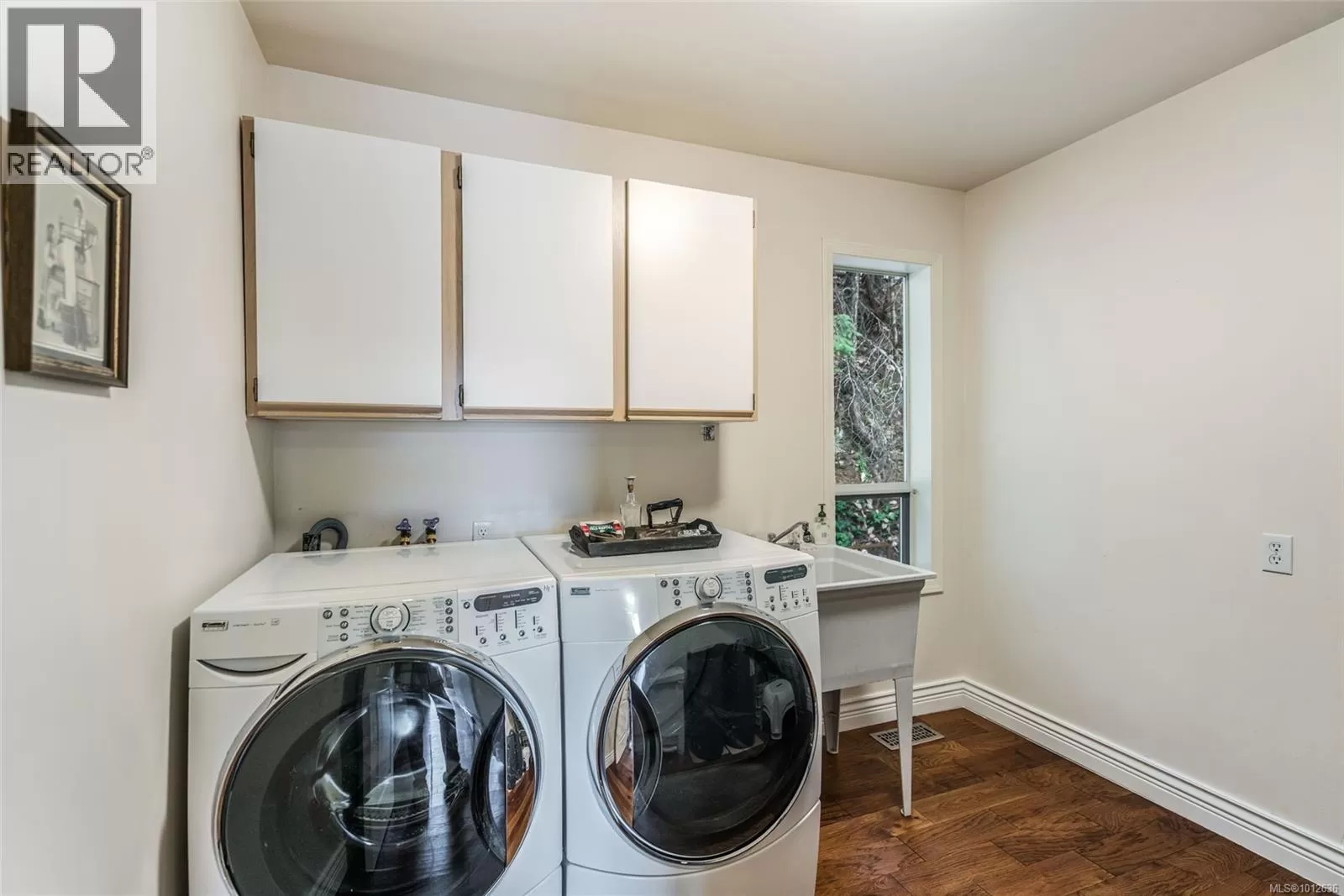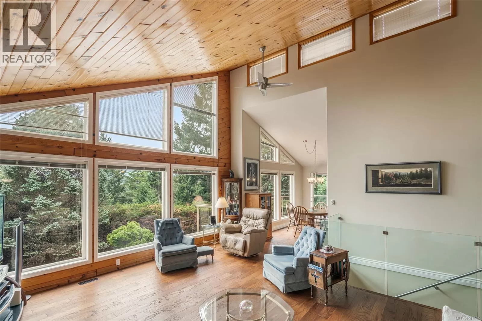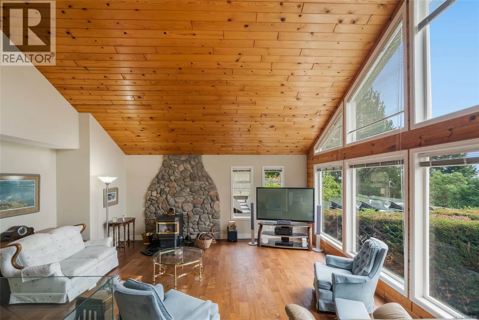 Grand Westcoast Style home in Departure Bay's Sherwood Forest. Conveniently Located high off a no through road in a quiet & private area close to schools, shopping, beaches and ferries. The yard is low maintenance, sloped & secluded at the back. This spacious 3000 sq ft home features many beautiful upgrades. The rooms are large open & bright with 16' 10 vaulted ceilings in the living room & 12'8'' ceilings in the fantastic kitchen. Engineered wood flooring is throughout the main floor with new carpet in the bedrooms. Shiny granite-look countertops, newer stainless appliances & double French doors off the kitchen to a cool covered deck. Mastersuite has a massive walk in closet & ensuite with walk in shower, skylight, double sinks, new vanity & toilet. The lower floor offers a two bedroom suite (unauthorized) plus 3rd bedroom or office. Large oversized garage with workbench. RV Parking. (id:27476)