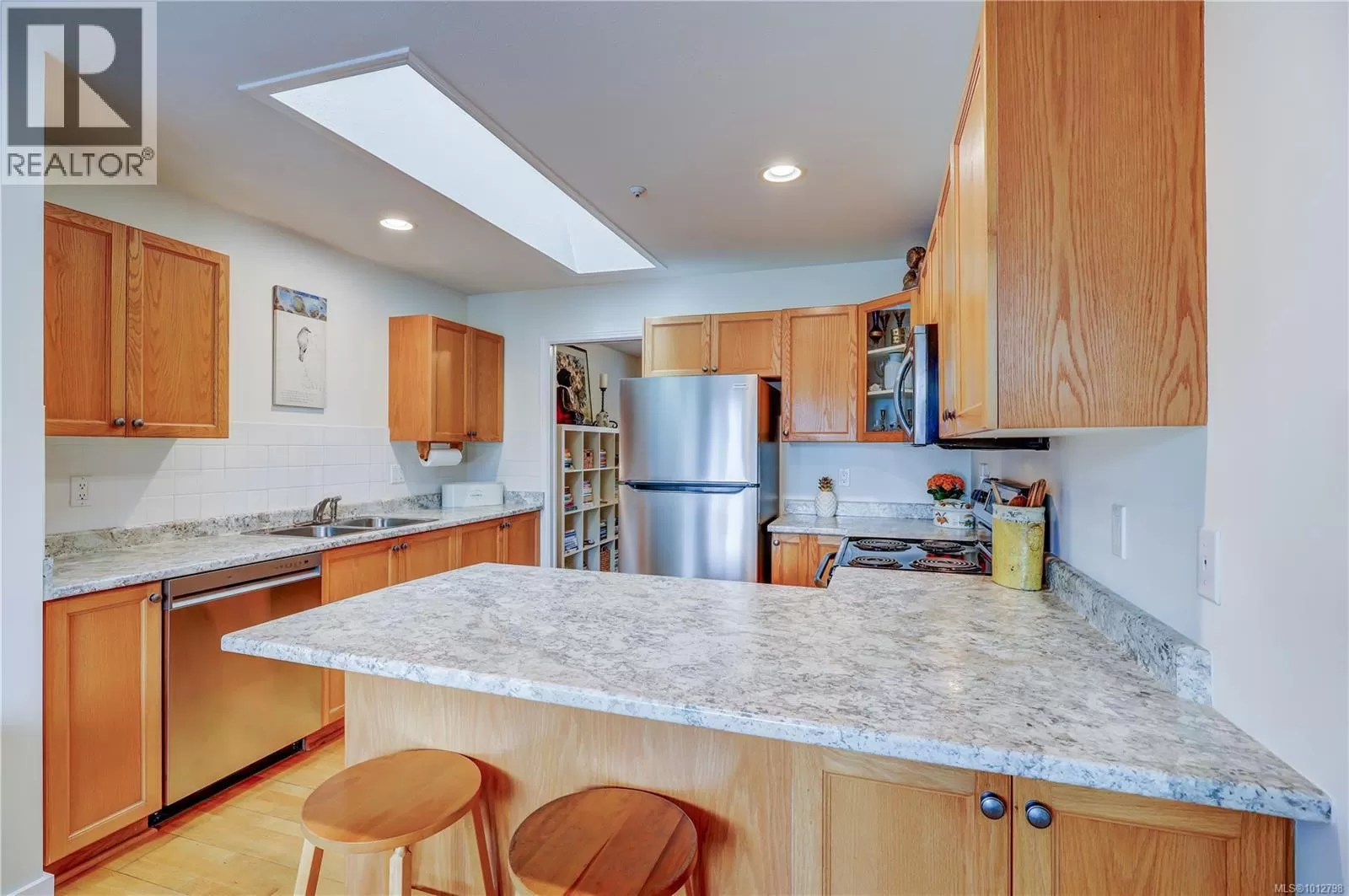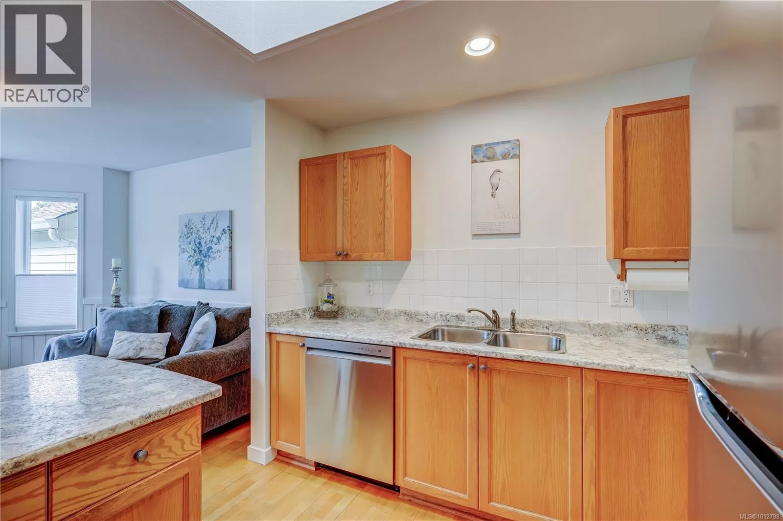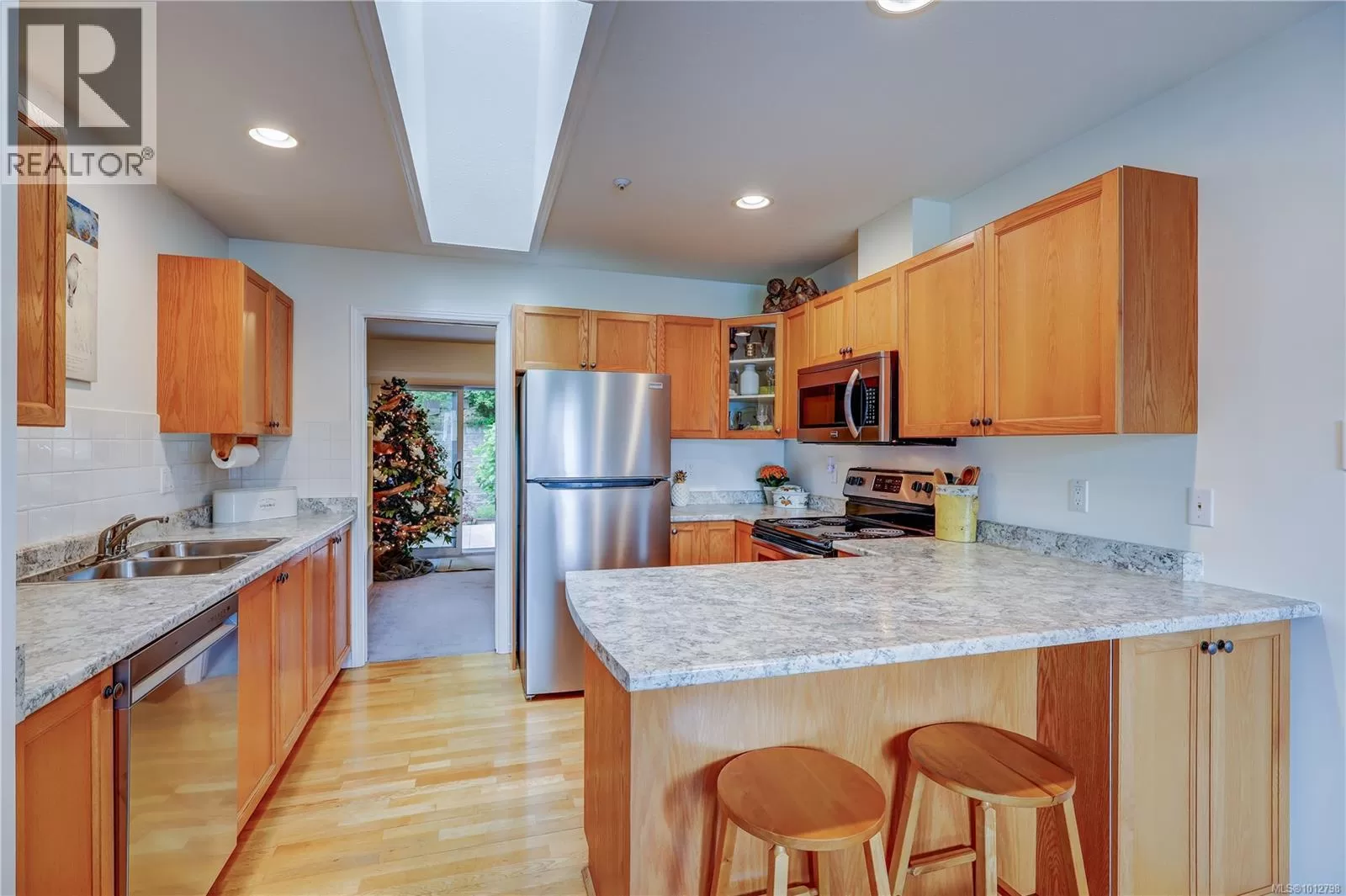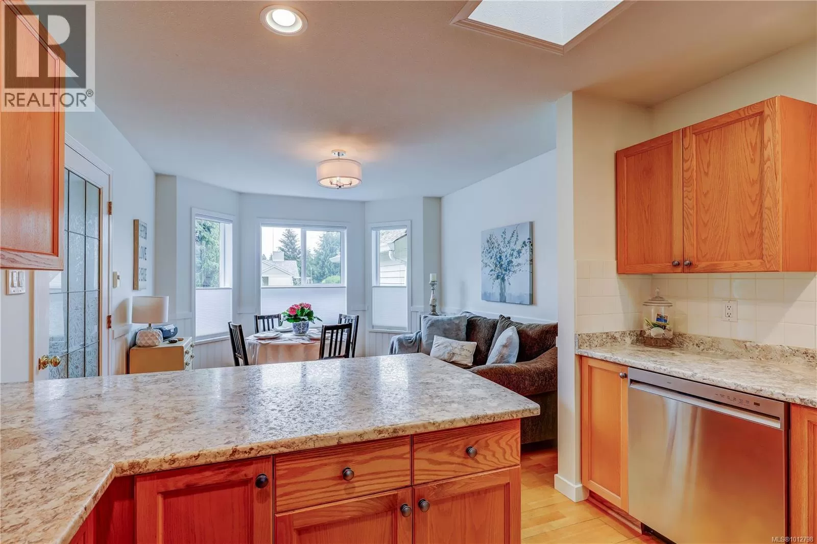 Welcome to Waterton Place, a desirable patio home community in North Nanaimo. This bright 2 bedroom, 2 bathroom residence offers a thoughtful one-level layout with fresh paint throughout, a new gas fireplace and surround, and updated roof with skylights. The spacious living and dining areas flow seamlessly to a private patio, perfect for relaxing or entertaining. The kitchen features ample storage and counterspace, while the large primary bedroom includes a full ensuite. A generous second bedroom and main bath provide flexibility for guests or hobbies. Added conveniences include in-suite laundry, updated appliances, a single garage, and a second assigned parking space. Enjoy the community feel, with great neighbours, RV parking on site, and a quiet yet central location just steps from shopping, dining, and transit. With its updates and prime location, this move-in ready home is an excellent opportunity. (id:27476)