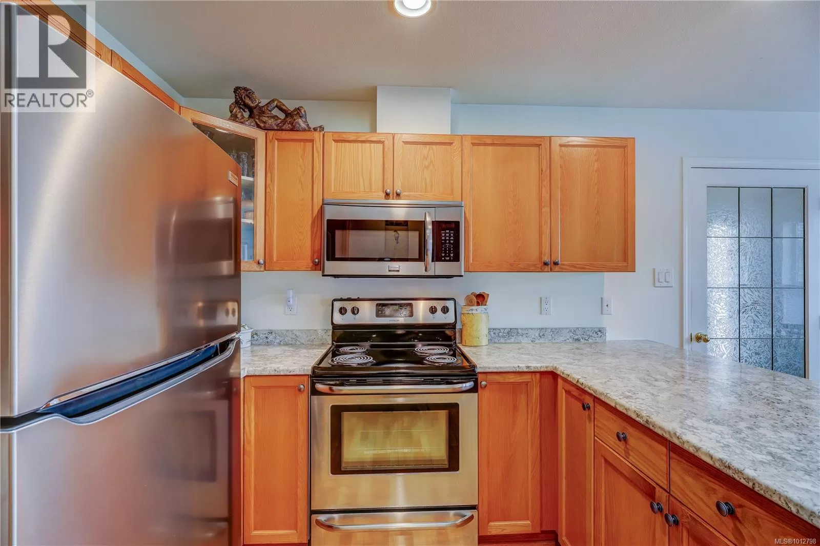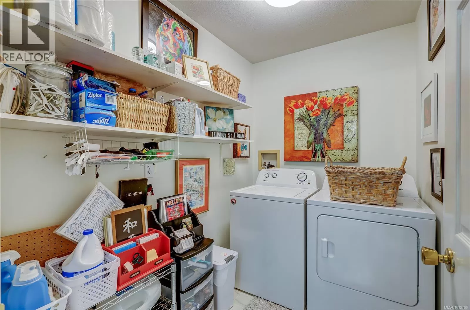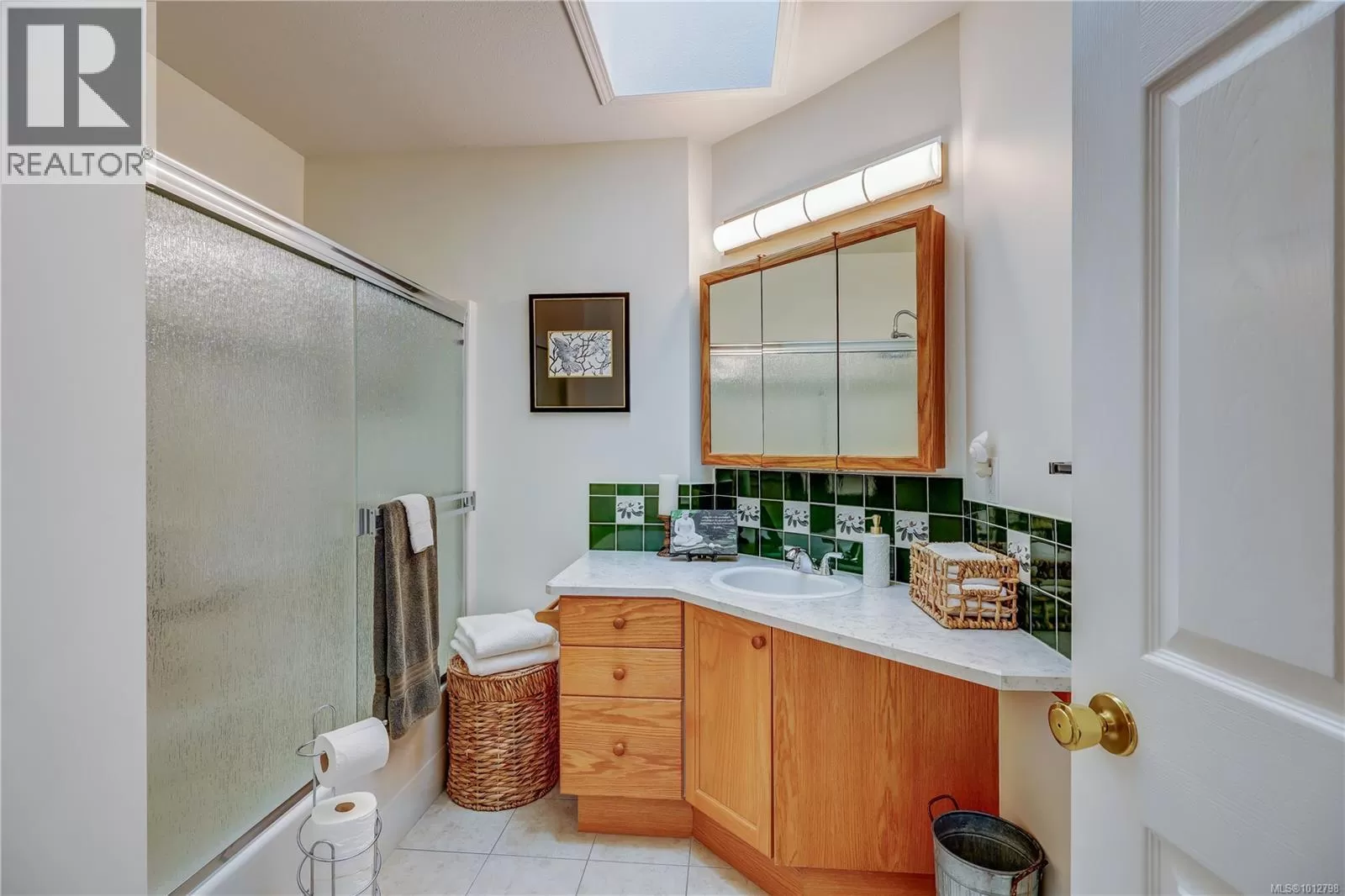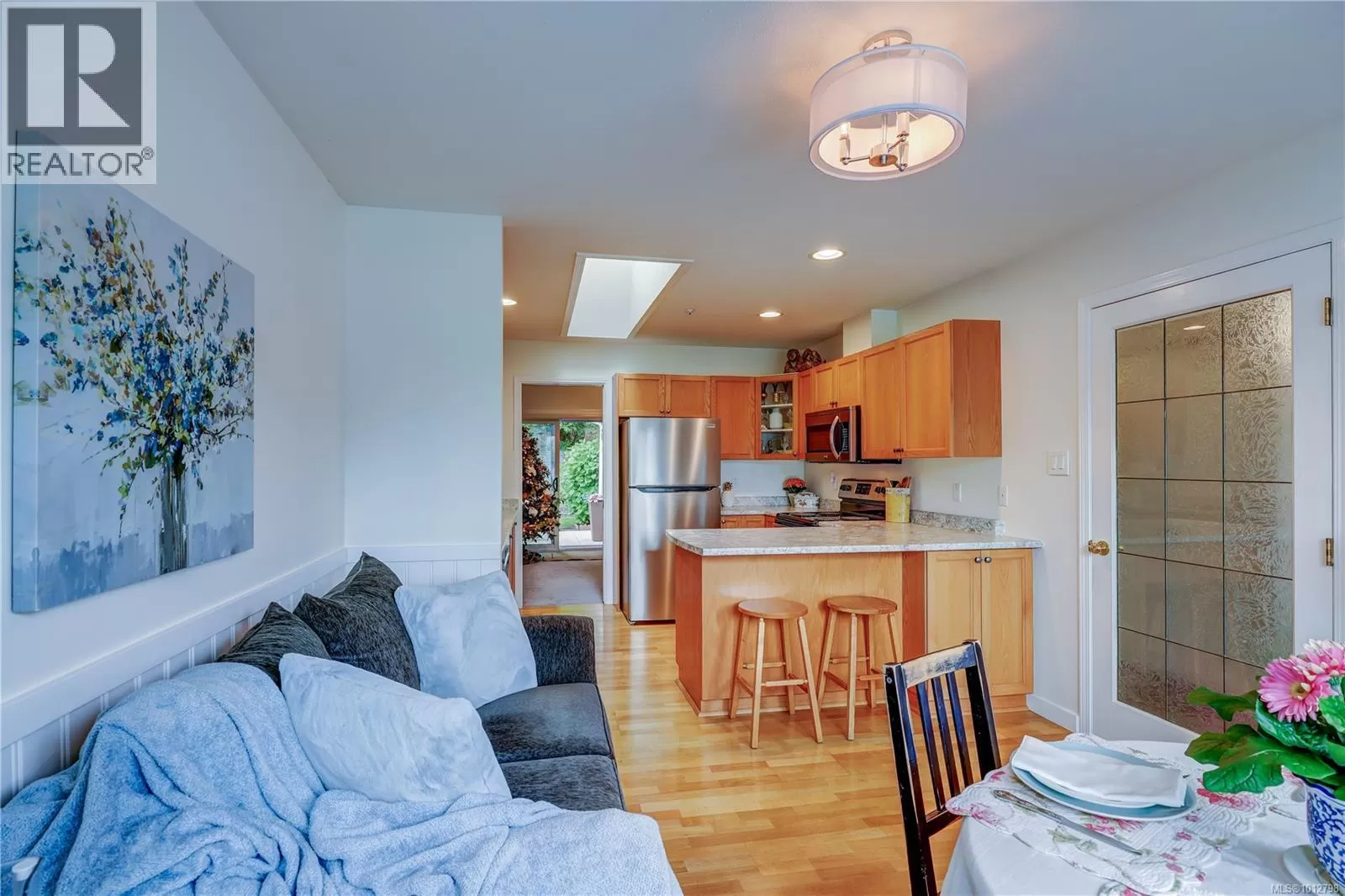 Welcome to Waterton Place, a desirable patio home community in North Nanaimo. This bright 2 bedroom, 2 bathroom residence offers a thoughtful one-level layout with fresh paint throughout, a new gas fireplace and surround, and updated roof with skylights. The spacious living and dining areas flow seamlessly to a private patio, perfect for relaxing or entertaining. The kitchen features ample storage and counterspace, while the large primary bedroom includes a full ensuite. A generous second bedroom and main bath provide flexibility for guests or hobbies. Added conveniences include in-suite laundry, updated appliances, a single garage, and a second assigned parking space. Enjoy the community feel, with great neighbours, RV parking on site, and a quiet yet central location just steps from shopping, dining, and transit. With its updates and prime location, this move-in ready home is an excellent opportunity. (id:27476)