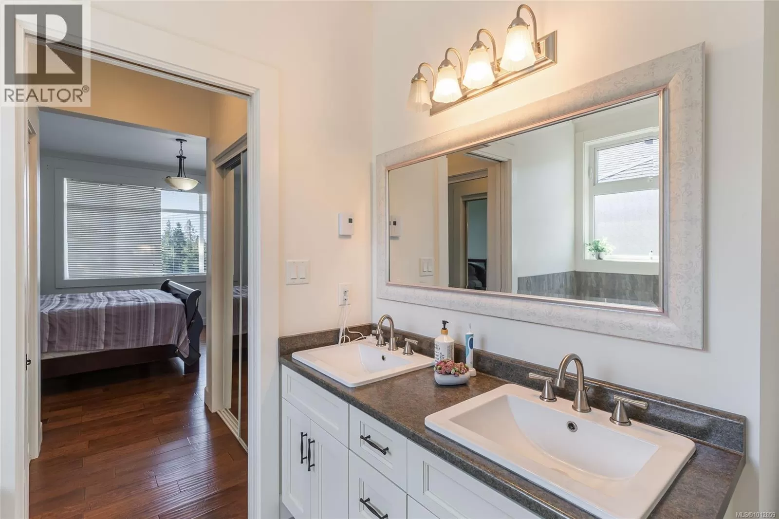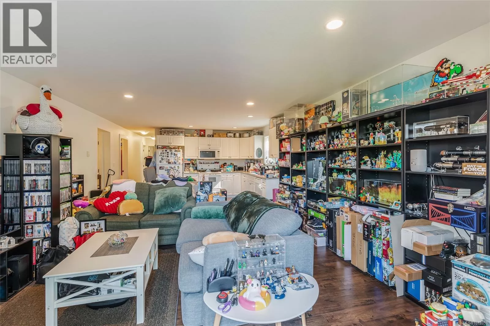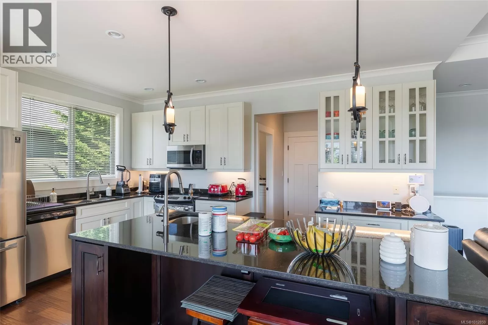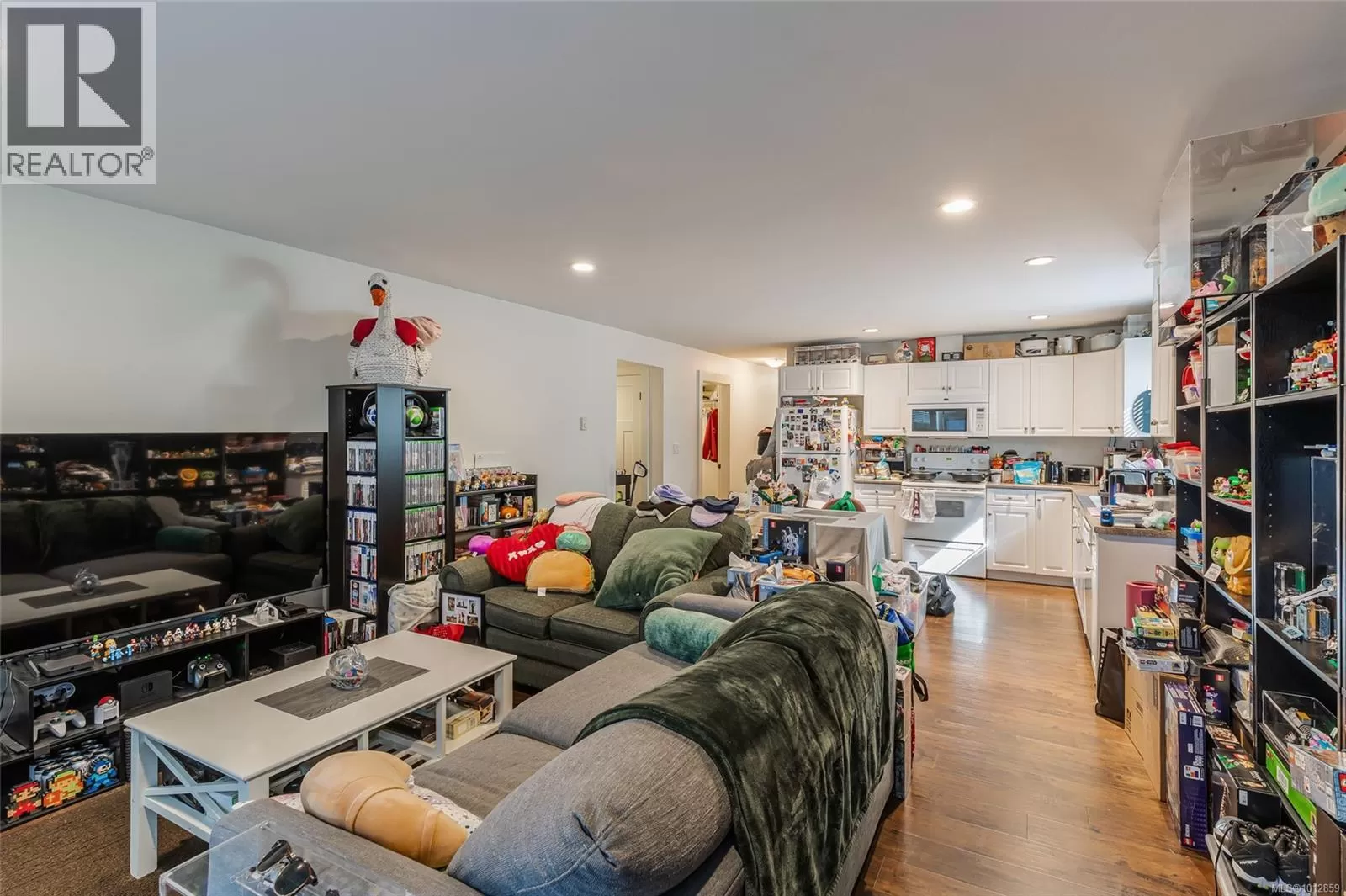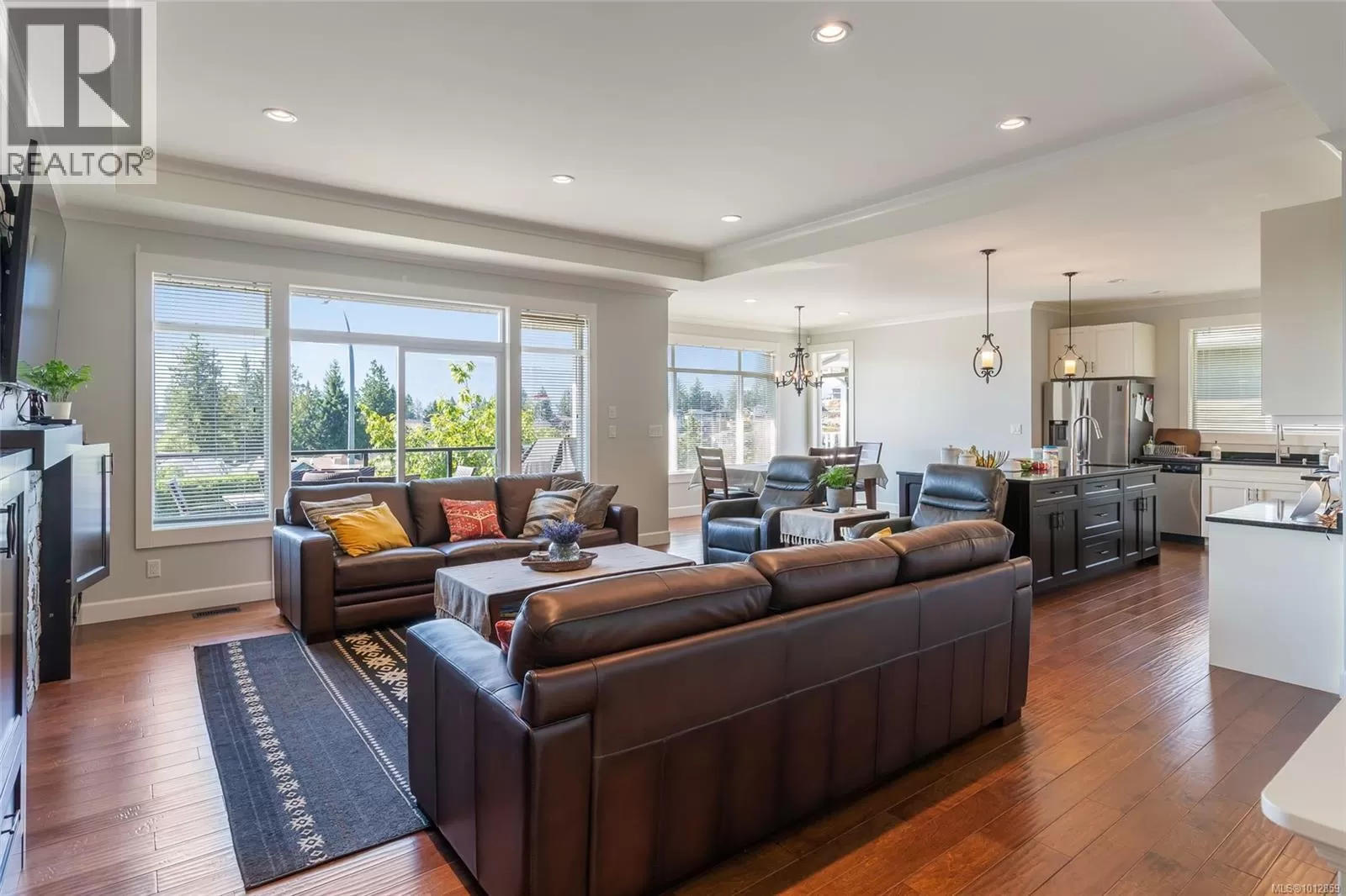A stunning family home in the heart of Nanaimoâs sought-after Linley Valley. Offering 6 bedrooms and 4 bathrooms across 3,521 sqft, this residence blends comfort and versatility. The upper-level main entry reveals a bright, open living area with 9â9 ceilings, skylight, and gas fireplace. The gourmet kitchen features quartz counters and stainless appliances, adjoining 3 bedrooms, including a primary suite with 5-piece ensuite. Step onto the deck to enjoy south-facing mountain and valley views, perfect for summer entertaining. Downstairs, find a spacious rec room, flex room, full bath, and an oversized bedroom with access to a covered patio and year-round green garden. A legal 2-bedroom suite with its own laundry, kitchen, and private street-level entry provides excellent income potential. Residents of Linley Valley enjoy trails, parks, schools, shopping, clinics, and community amenities within easy reach. (id:27476)