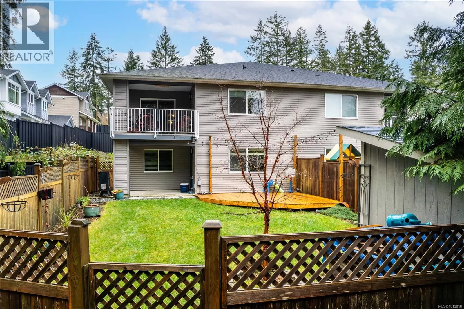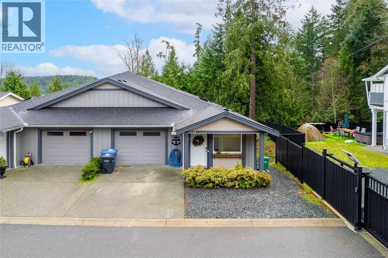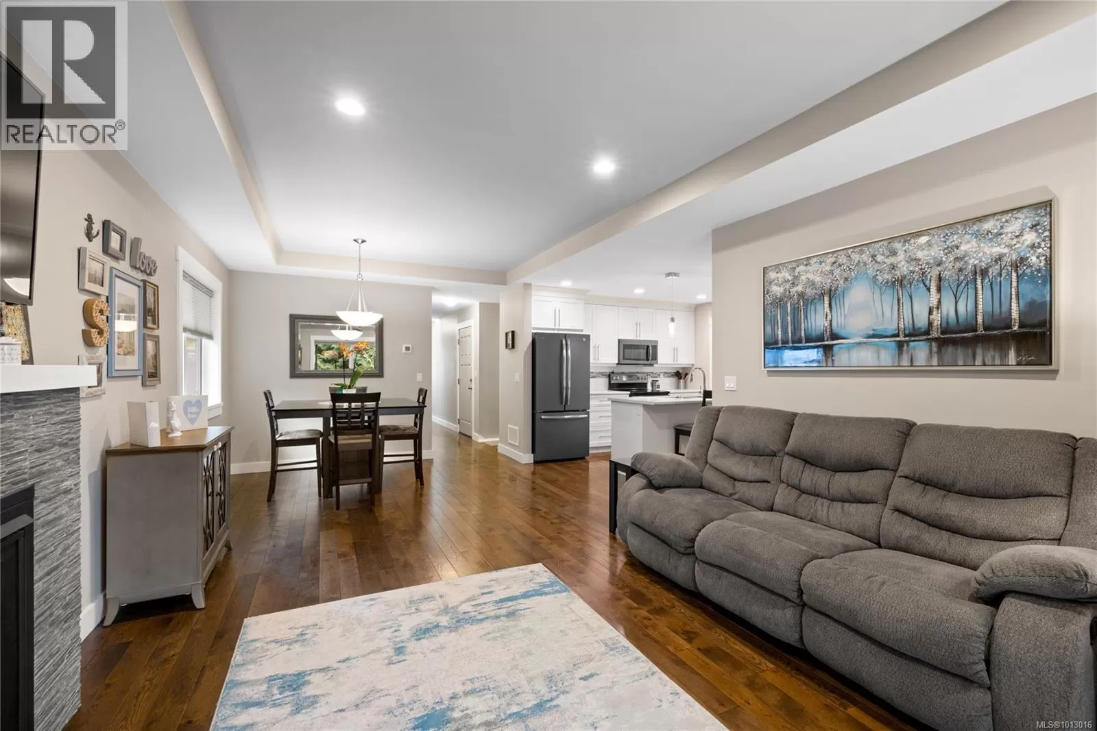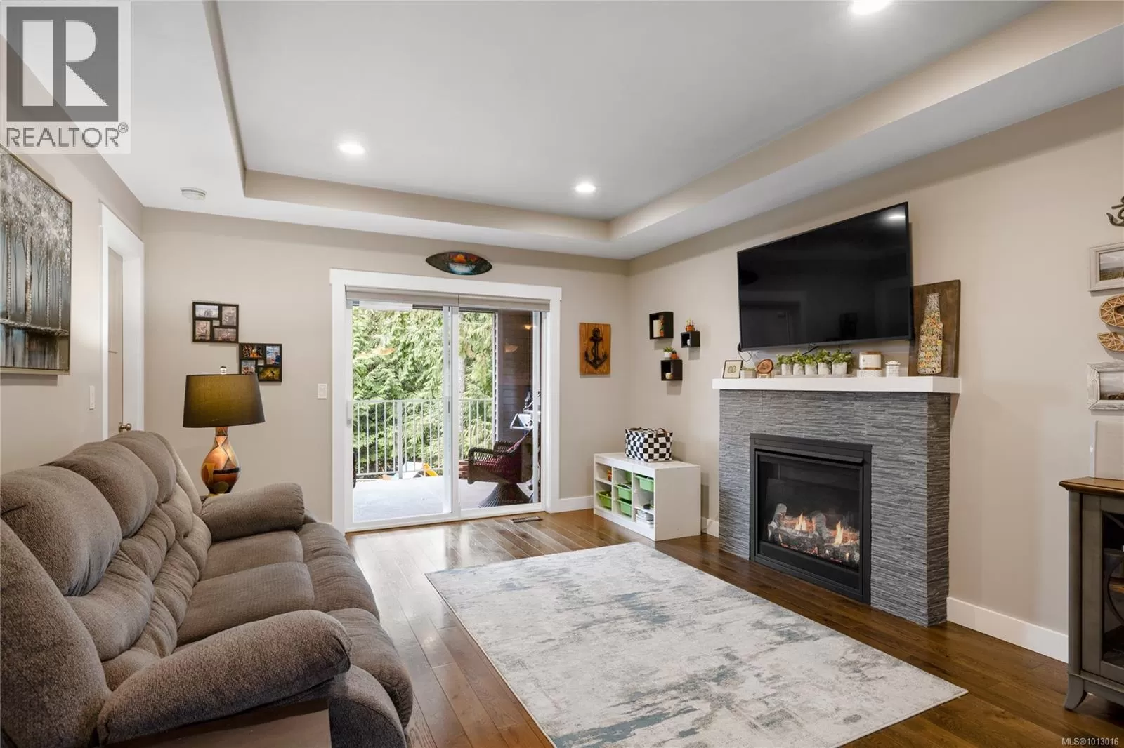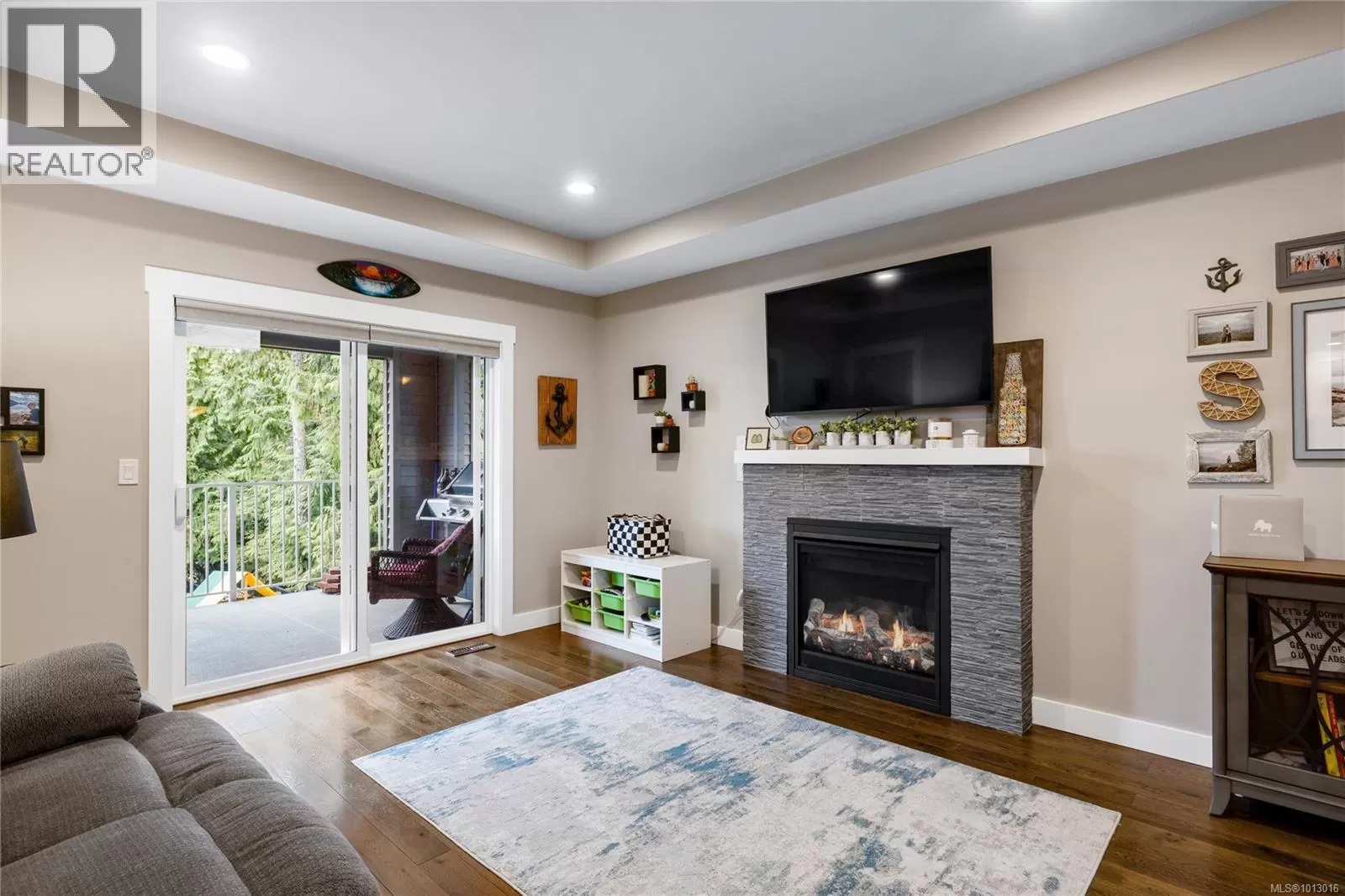Built in 2017, this stunning 5-bedroom, 3-bathroom home offers over 2,300 sqft of elegant, modern living space. The spacious kitchen features abundant counter and cabinet space, sleek black stainless-steel appliances, and a walk-in pantry. It seamlessly flows into the open living and dining area, highlighted by a cozy natural gas fireplace and access to a covered deck with picturesque views of the surrounding trees and Cinnabar Valley. The luxurious primary suite includes a large walk-in closet and a beautifully appointed ensuite with heated tile floors for added comfort. A second bedroom and half bath complete the main level. The lower level is perfect for family living, with 3 generously sized bedrooms, a large family/rec room, and plenty of storage space. Step outside to the back patio and fully fenced backyard, complete with an irrigation system and ample room for pets, family gatherings, or gardening. This home offers plenty of parking, including a spacious single-car garage and an additional oversized parking space just steps from the front entrance. Situated on a private no-thru road, it's just a 5-minute drive to essential amenities, including Southgate Shopping Centre, grocery stores, pharmacies, and a gym. For those who enjoy an active lifestyle, nearby walking and biking trails provide access to the natural beauty of Vancouver Island. (id:27476)