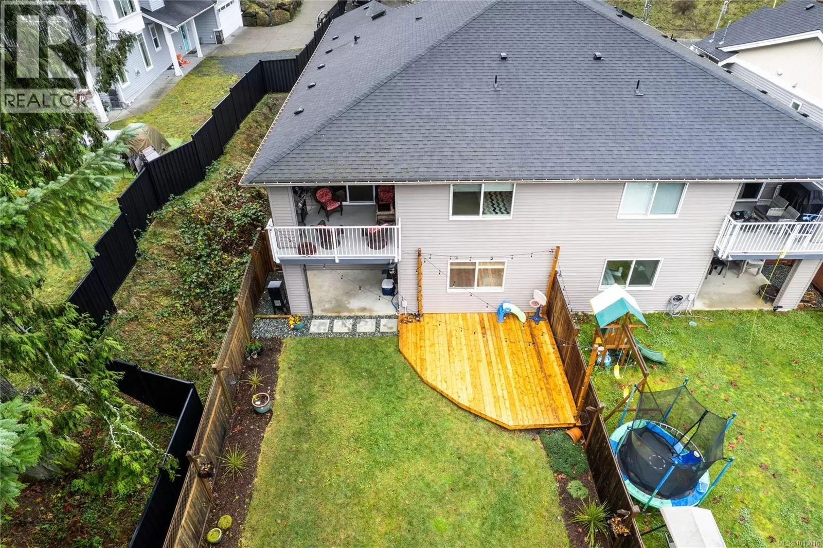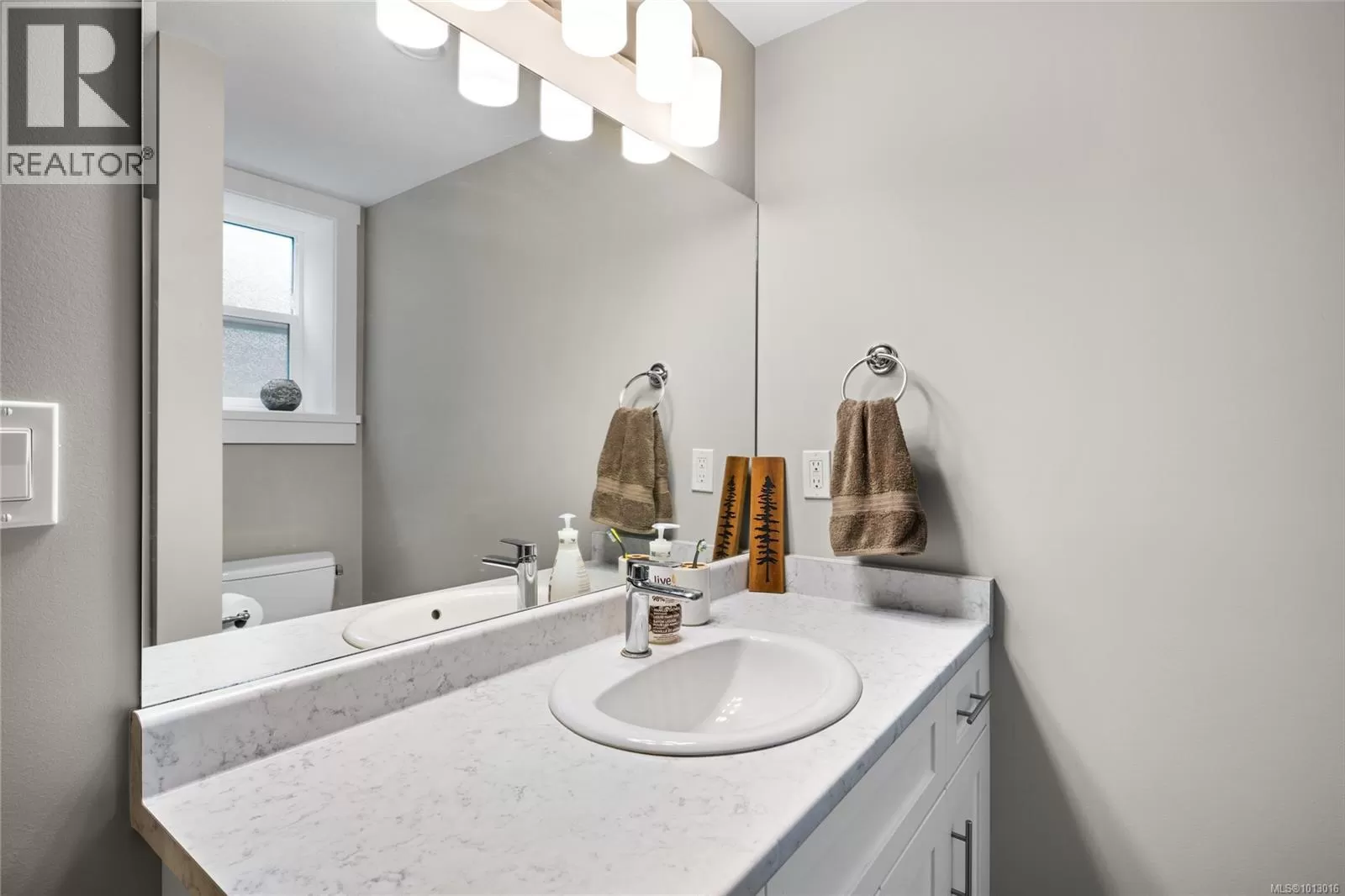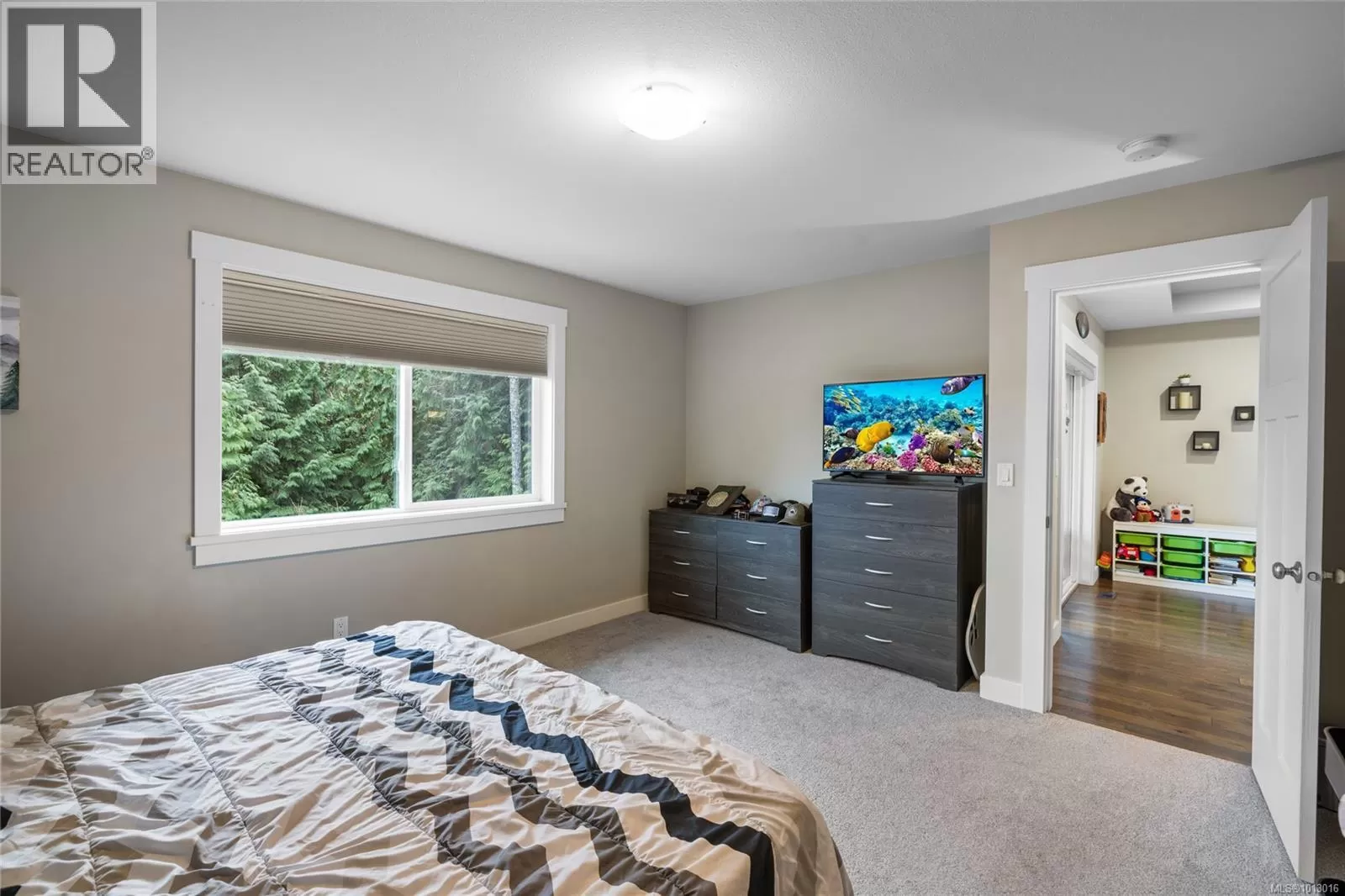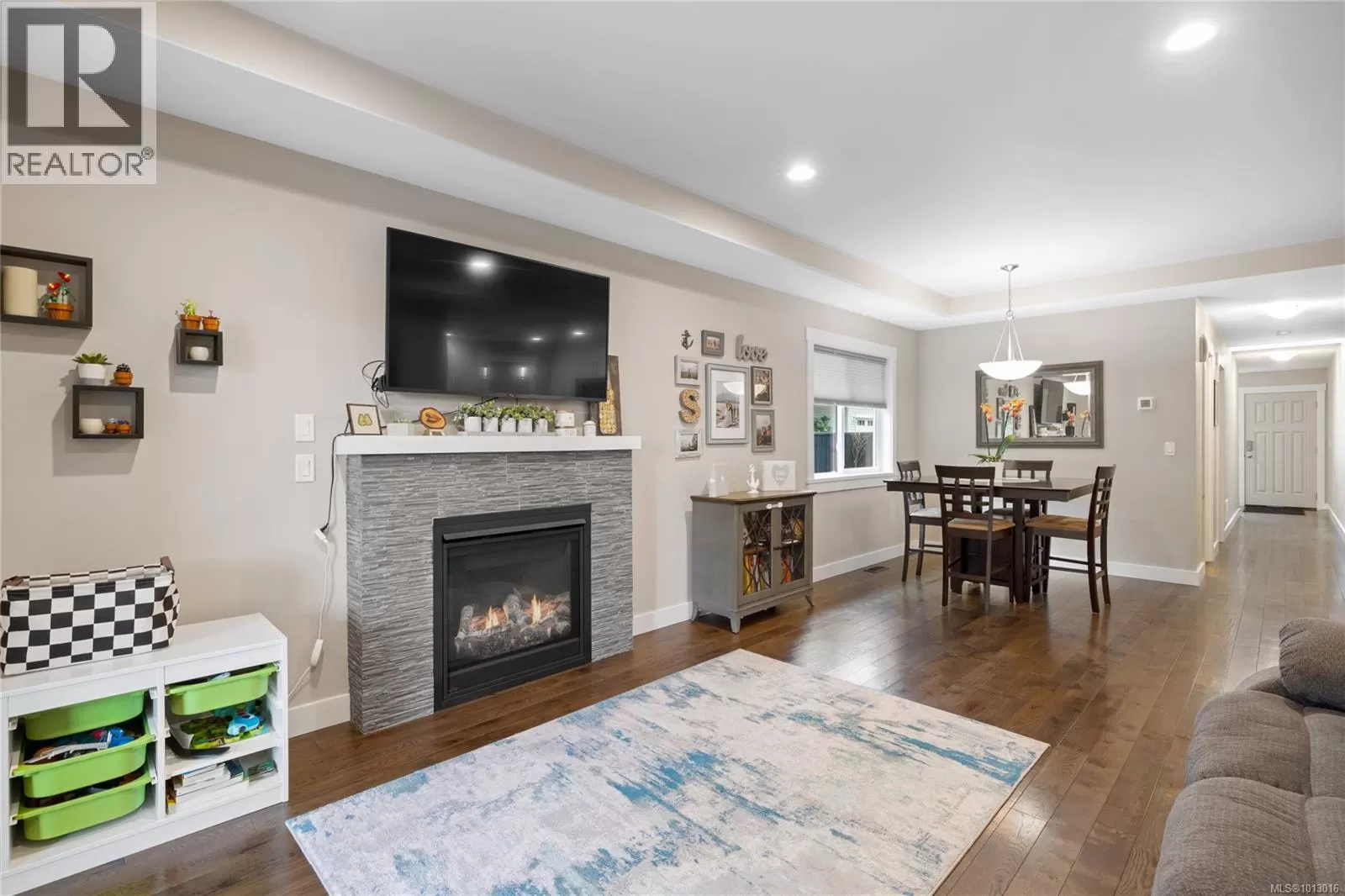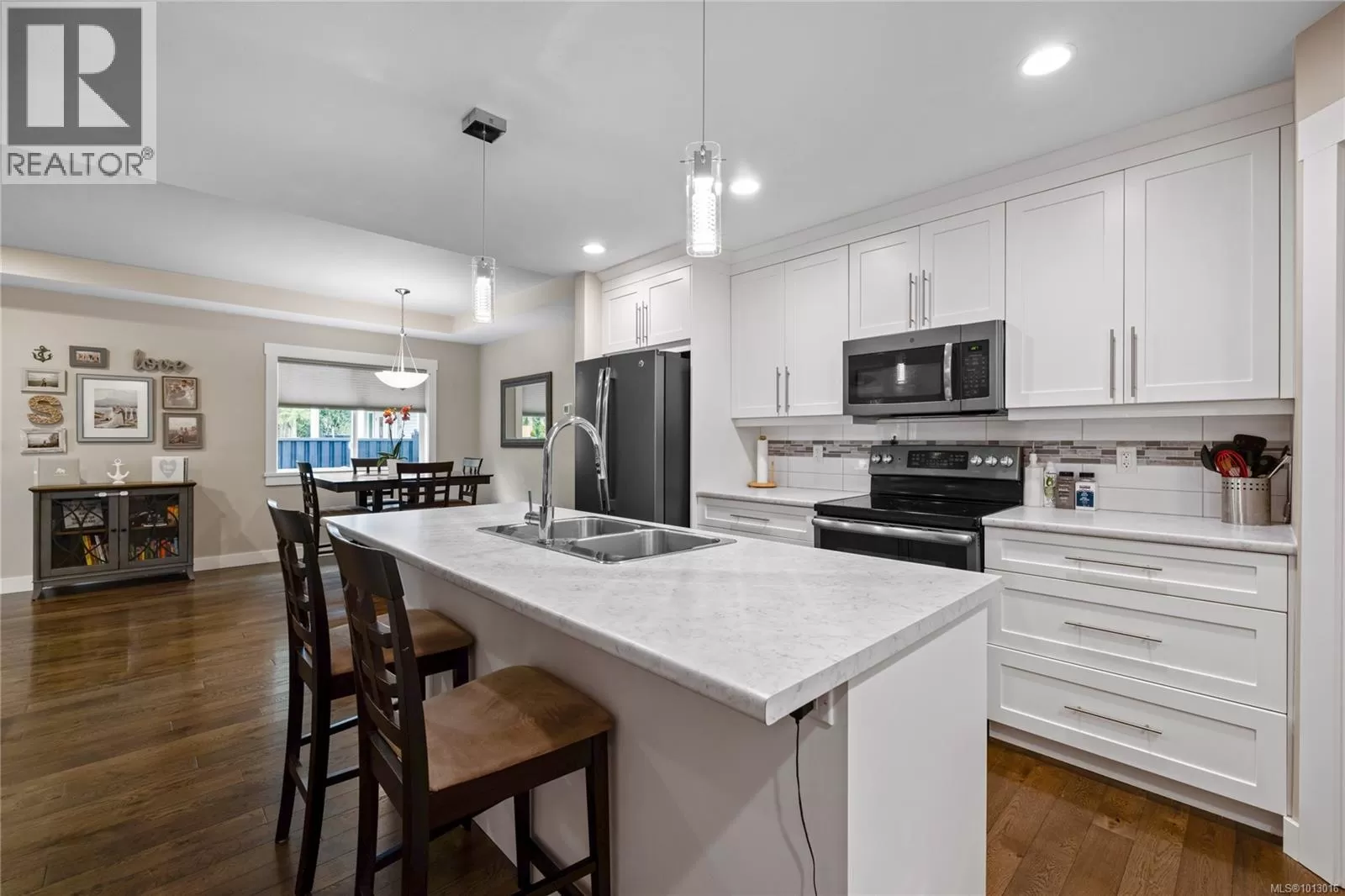 Built in 2017, this stunning 5-bedroom, 3-bathroom home offers over 2,300 sqft of elegant, modern living space. The spacious kitchen features abundant counter and cabinet space, sleek black stainless-steel appliances, and a walk-in pantry. It seamlessly flows into the open living and dining area, highlighted by a cozy natural gas fireplace and access to a covered deck with picturesque views of the surrounding trees and Cinnabar Valley. The luxurious primary suite includes a large walk-in closet and a beautifully appointed ensuite with heated tile floors for added comfort. A second bedroom and half bath complete the main level. The lower level is perfect for family living, with 3 generously sized bedrooms, a large family/rec room, and plenty of storage space. Step outside to the back patio and fully fenced backyard, complete with an irrigation system and ample room for pets, family gatherings, or gardening. This home offers plenty of parking, including a spacious single-car garage and an additional oversized parking space just steps from the front entrance. Situated on a private no-thru road, it's just a 5-minute drive to essential amenities, including Southgate Shopping Centre, grocery stores, pharmacies, and a gym. For those who enjoy an active lifestyle, nearby walking and biking trails provide access to the natural beauty of Vancouver Island. (id:27476)
