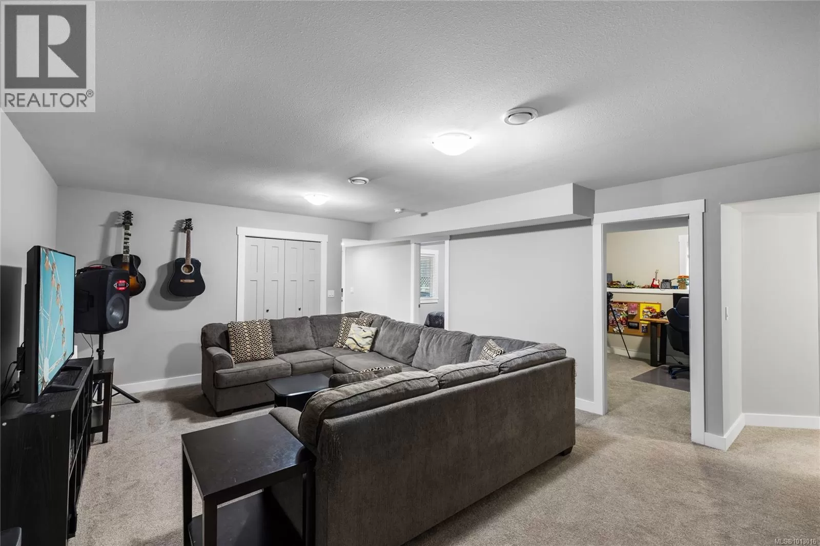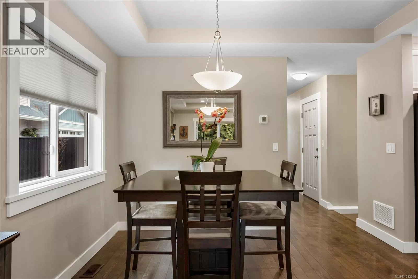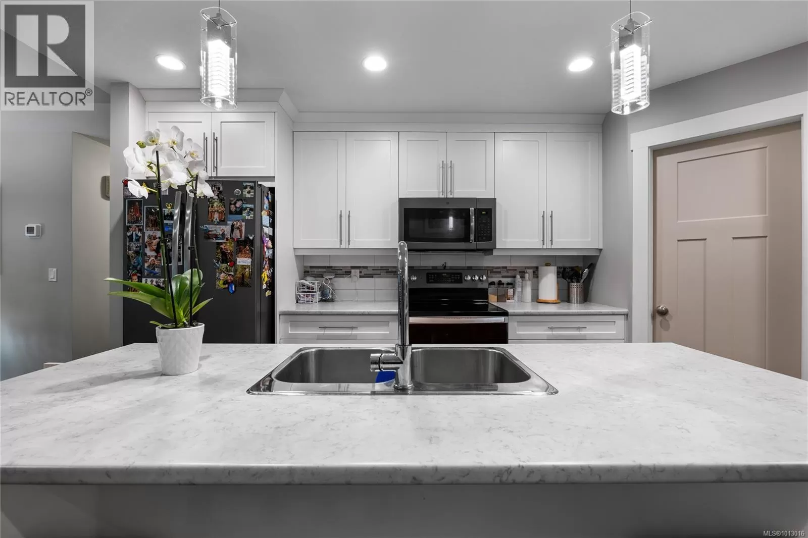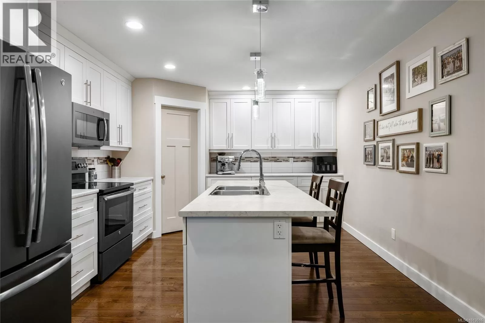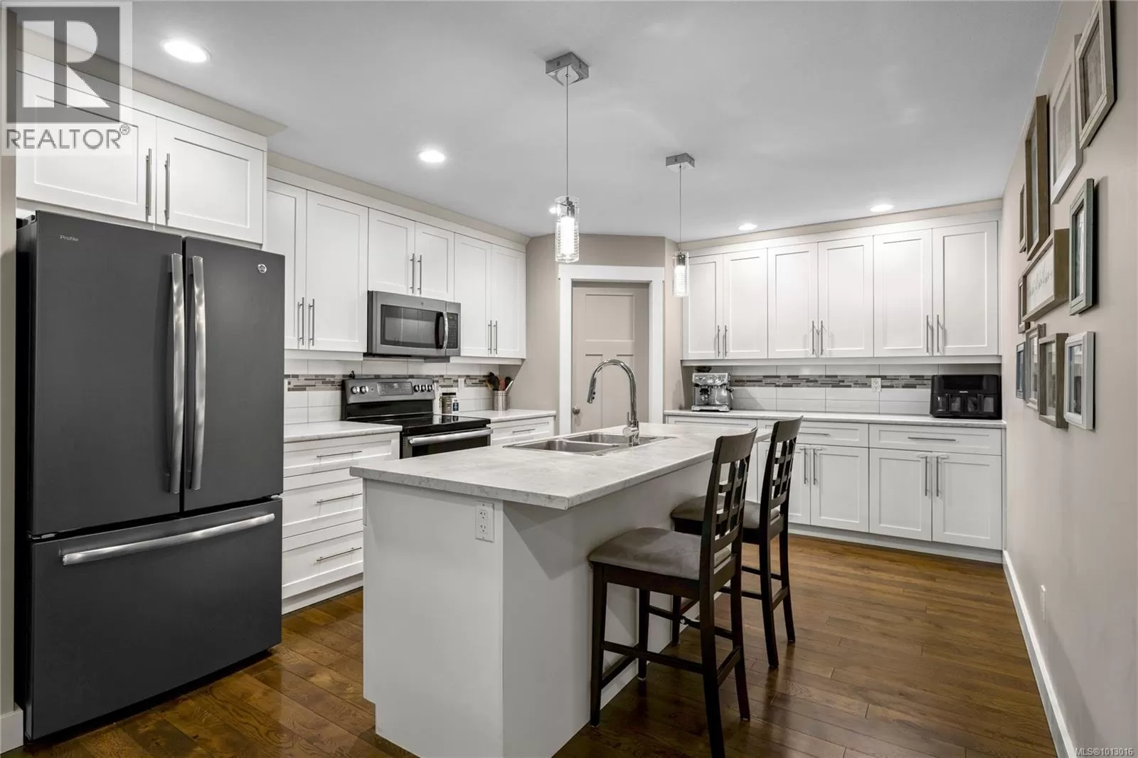 Built in 2017, this stunning 5-bedroom, 3-bathroom home offers over 2,300 sqft of elegant, modern living space. The spacious kitchen features abundant counter and cabinet space, sleek black stainless-steel appliances, and a walk-in pantry. It seamlessly flows into the open living and dining area, highlighted by a cozy natural gas fireplace and access to a covered deck with picturesque views of the surrounding trees and Cinnabar Valley. The luxurious primary suite includes a large walk-in closet and a beautifully appointed ensuite with heated tile floors for added comfort. A second bedroom and half bath complete the main level. The lower level is perfect for family living, with 3 generously sized bedrooms, a large family/rec room, and plenty of storage space. Step outside to the back patio and fully fenced backyard, complete with an irrigation system and ample room for pets, family gatherings, or gardening. This home offers plenty of parking, including a spacious single-car garage and an additional oversized parking space just steps from the front entrance. Situated on a private no-thru road, it's just a 5-minute drive to essential amenities, including Southgate Shopping Centre, grocery stores, pharmacies, and a gym. For those who enjoy an active lifestyle, nearby walking and biking trails provide access to the natural beauty of Vancouver Island. (id:27476)