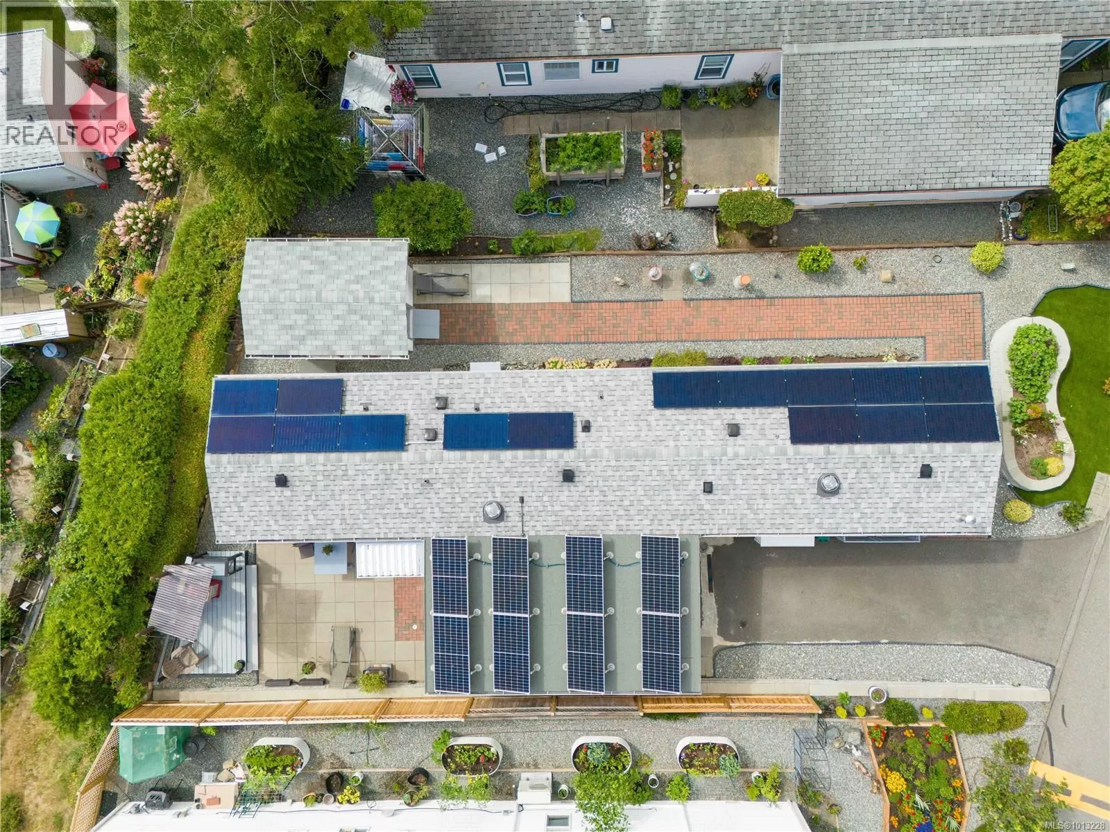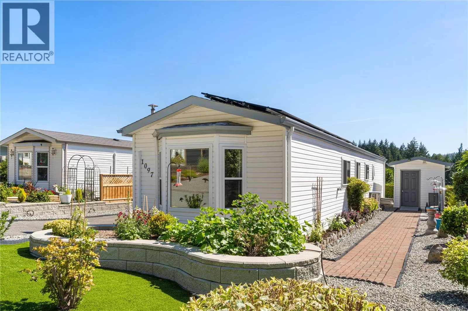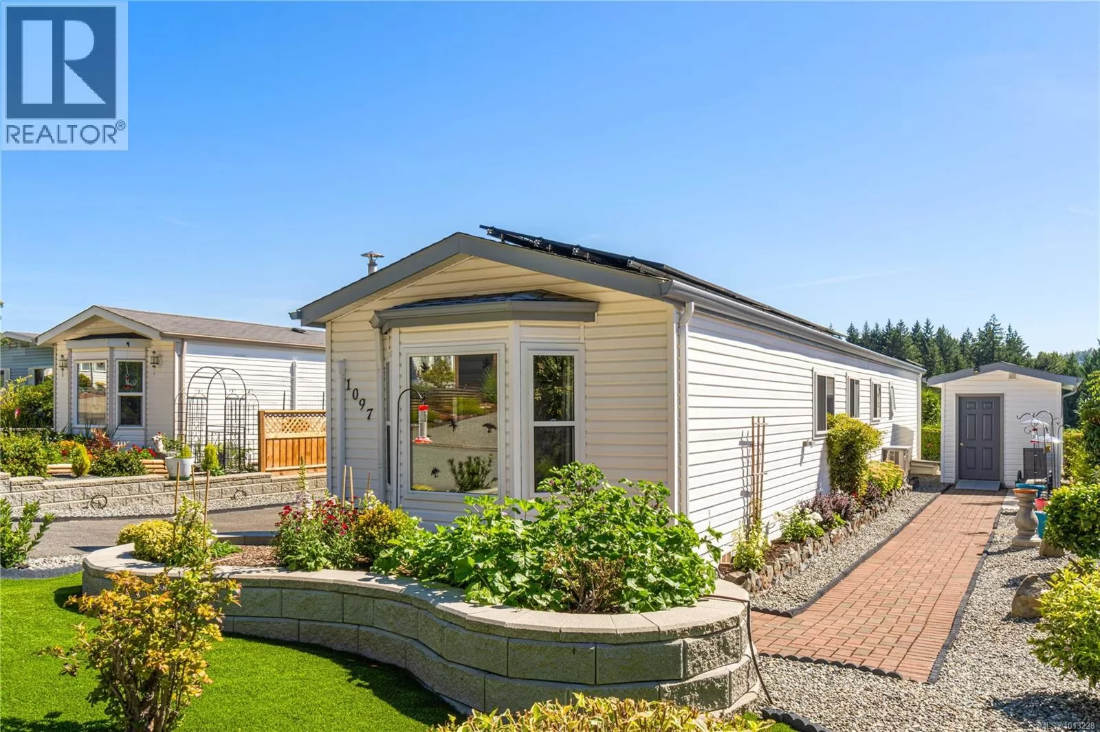 TURN-KEY LIVING IN WILLOW PARK Set within Willow Park â a pristine, well-managed 55+ community â this pet-friendly 2-bedroom, 1-bath home combines comfort, efficiency, and lifestyle. The open-concept layout is filled with natural light from newer windows and sun tunnels. Solar panels return power to the grid, resulting in hydro credits for the homeowners, while ductless heat pumps and newer appliances add energy efficiency and everyday ease. The low-maintenance, fully irrigated yard features artificial turf, wide mobility-friendly walkways, and a tranquil setting designed for relaxed living. A custom BBQ deck, partially enclosed carport (permitted), and storage shed with built-in shelving add extra function and convenience. Every detail reflects a high standard of care, with upgrades chosen to enhance daily comfort and support long-term peace of mind. This home is truly turn-key â a rare condo alternative offering privacy, thoughtful improvements, and nature at your doorstep. Steps from Morrell Nature Sanctuary, itâs an ideal choice for those seeking a secure, sustainable, and comfortable retirement lifestyle. All measurements are approximate and should be verified if deemed important to the buyer. (id:27476)