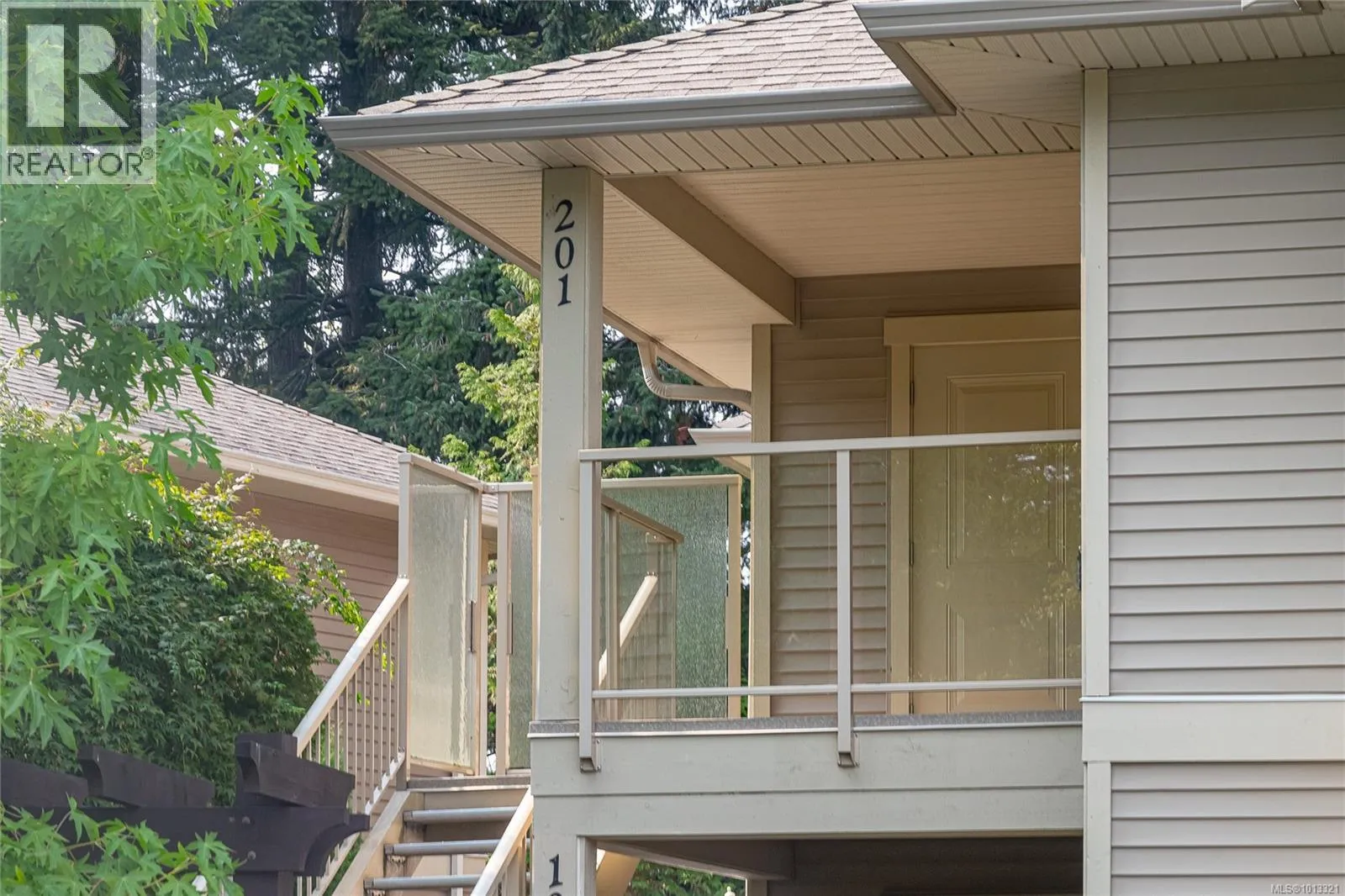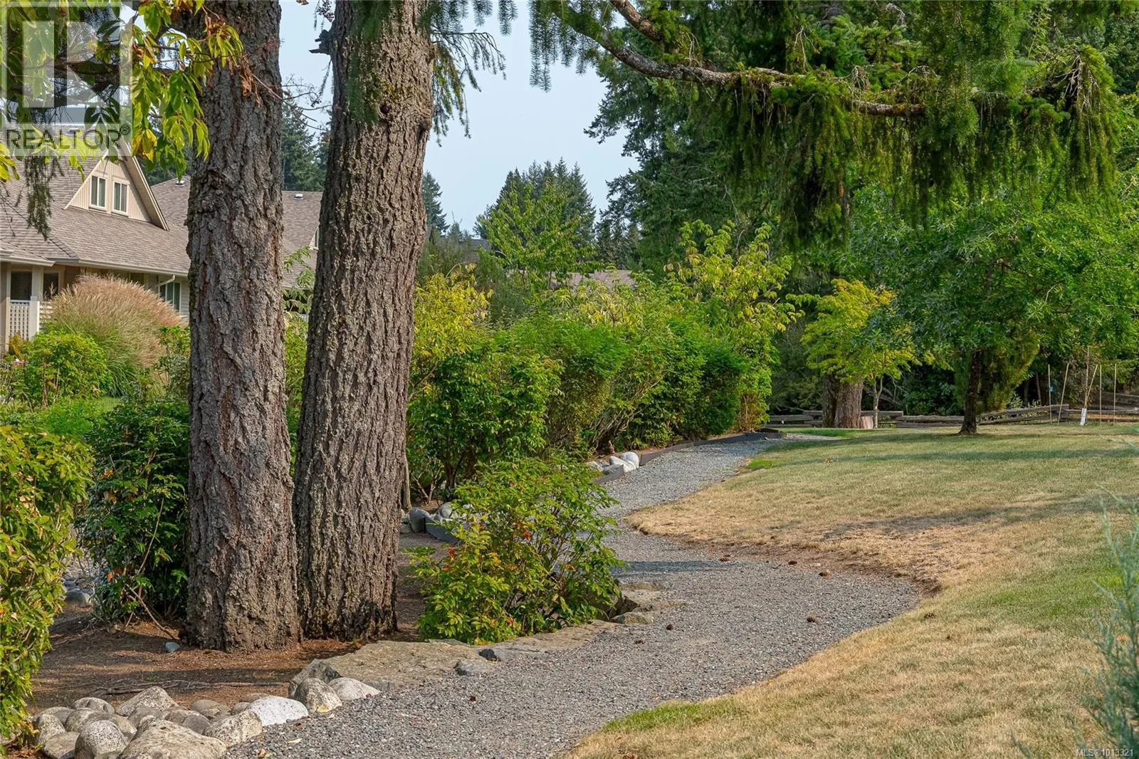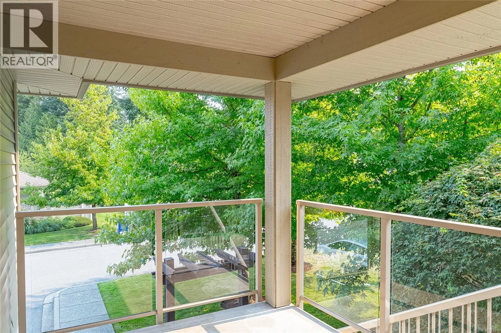 Welcome to Amblewood Village, an exceptional enclave of West Coast contemporary townhomes in Nanaimoâs highly sought-after Uplands area. This beautifully finished residence offers an open-concept layout, thoughtfully designed for both comfort & style. Inside, youâll find 2 spacious bedrooms, 2 bathrooms & a versatile den off the kitchenâperfect for a home office or creative space. The great room features a cozy fireplace, ideal for relaxing evenings. The kitchen is a standout with crisp white cabinetry, generous counter space & stainless steel appliances. Outdoor living is well catered to with 2 covered decksâfront & backâ providing year-round enjoyment. Added conveniences include a dedicated exterior storage space next to the front door, your own parking stall, & plenty of visitor parking for guests. The location is truly unbeatable: just a short stroll to North Nanaimo Centre, Longwood Station, Oliver Woods Community Centre, & Long Lake, with nearby bus routes making commuting a breeze. This is an ideal opportunity to enjoy low-maintenance living in one of Nanaimoâs most popular neighbourhoods. All measurements are approximate & should be confirmed if important. (id:27476)