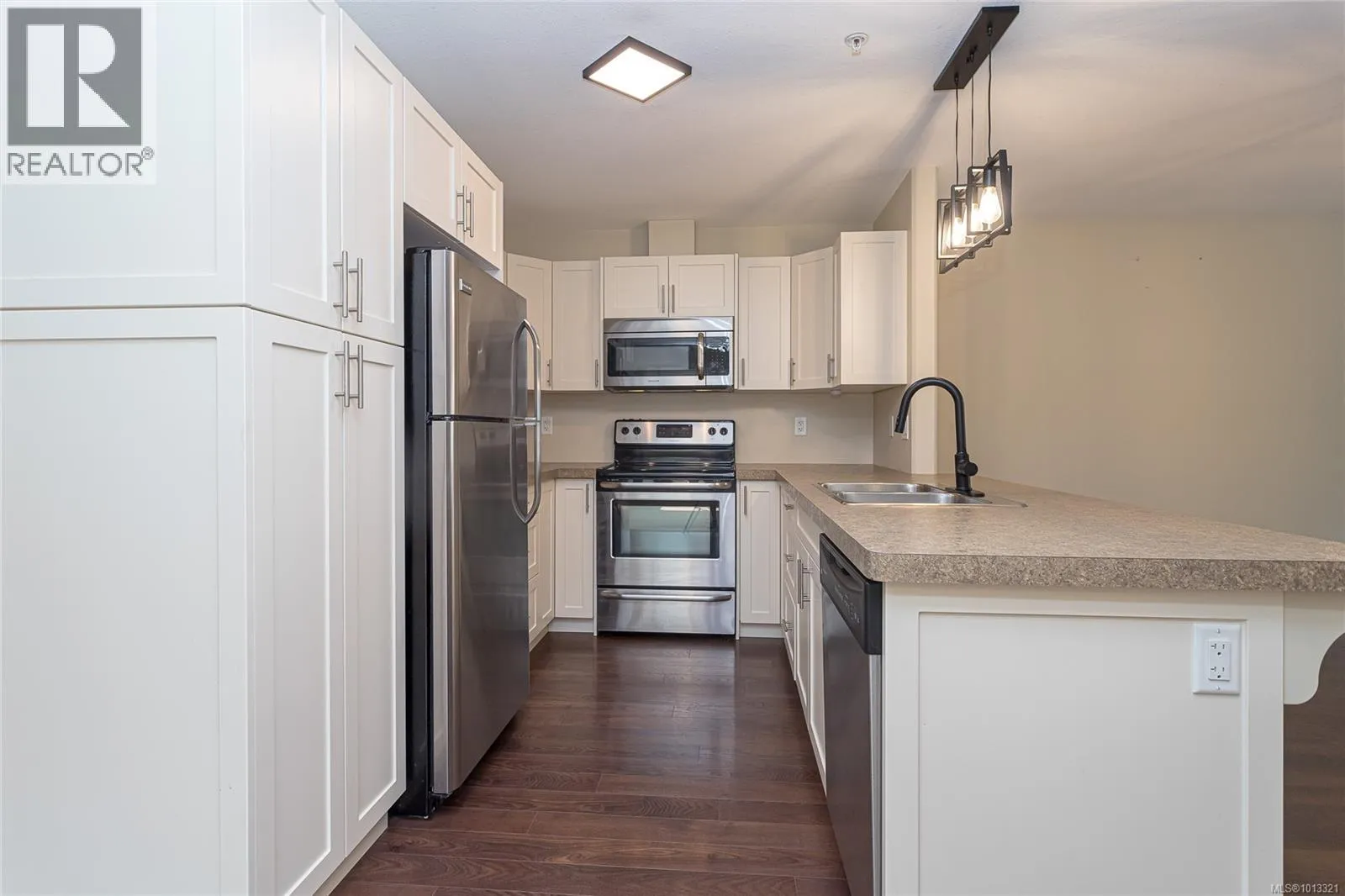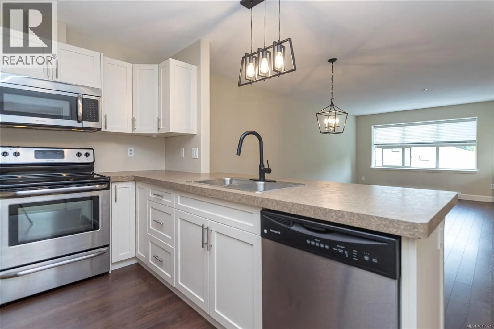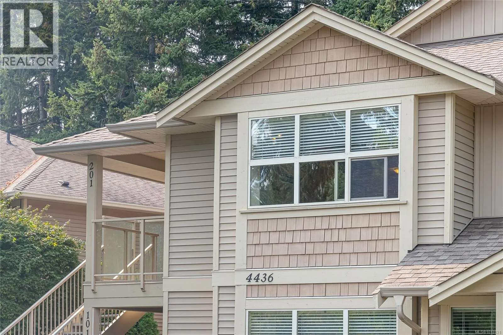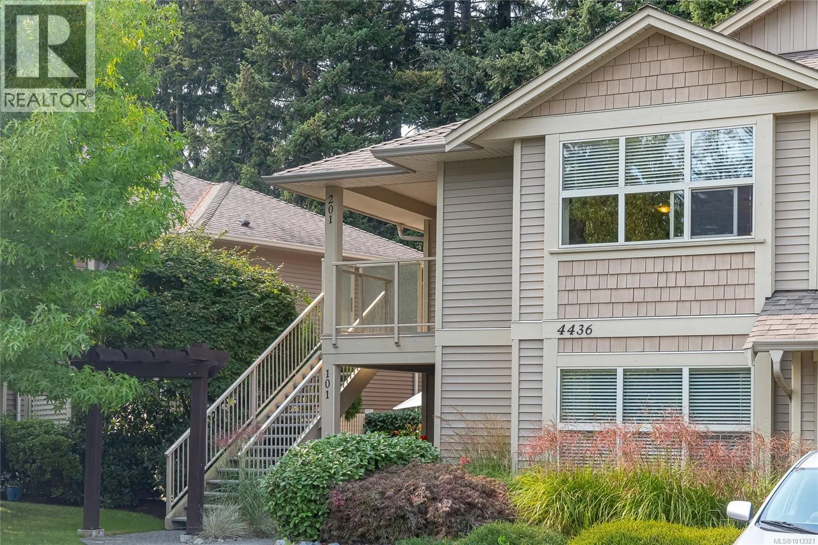 Welcome to Amblewood Village, an exceptional enclave of West Coast contemporary townhomes in Nanaimoâs highly sought-after Uplands area. This beautifully finished residence offers an open-concept layout, thoughtfully designed for both comfort & style. Inside, youâll find 2 spacious bedrooms, 2 bathrooms & a versatile den off the kitchenâperfect for a home office or creative space. The great room features a cozy fireplace, ideal for relaxing evenings. The kitchen is a standout with crisp white cabinetry, generous counter space & stainless steel appliances. Outdoor living is well catered to with 2 covered decksâfront & backâ providing year-round enjoyment. Added conveniences include a dedicated exterior storage space next to the front door, your own parking stall, & plenty of visitor parking for guests. The location is truly unbeatable: just a short stroll to North Nanaimo Centre, Longwood Station, Oliver Woods Community Centre, & Long Lake, with nearby bus routes making commuting a breeze. This is an ideal opportunity to enjoy low-maintenance living in one of Nanaimoâs most popular neighbourhoods. All measurements are approximate & should be confirmed if important. (id:27476)