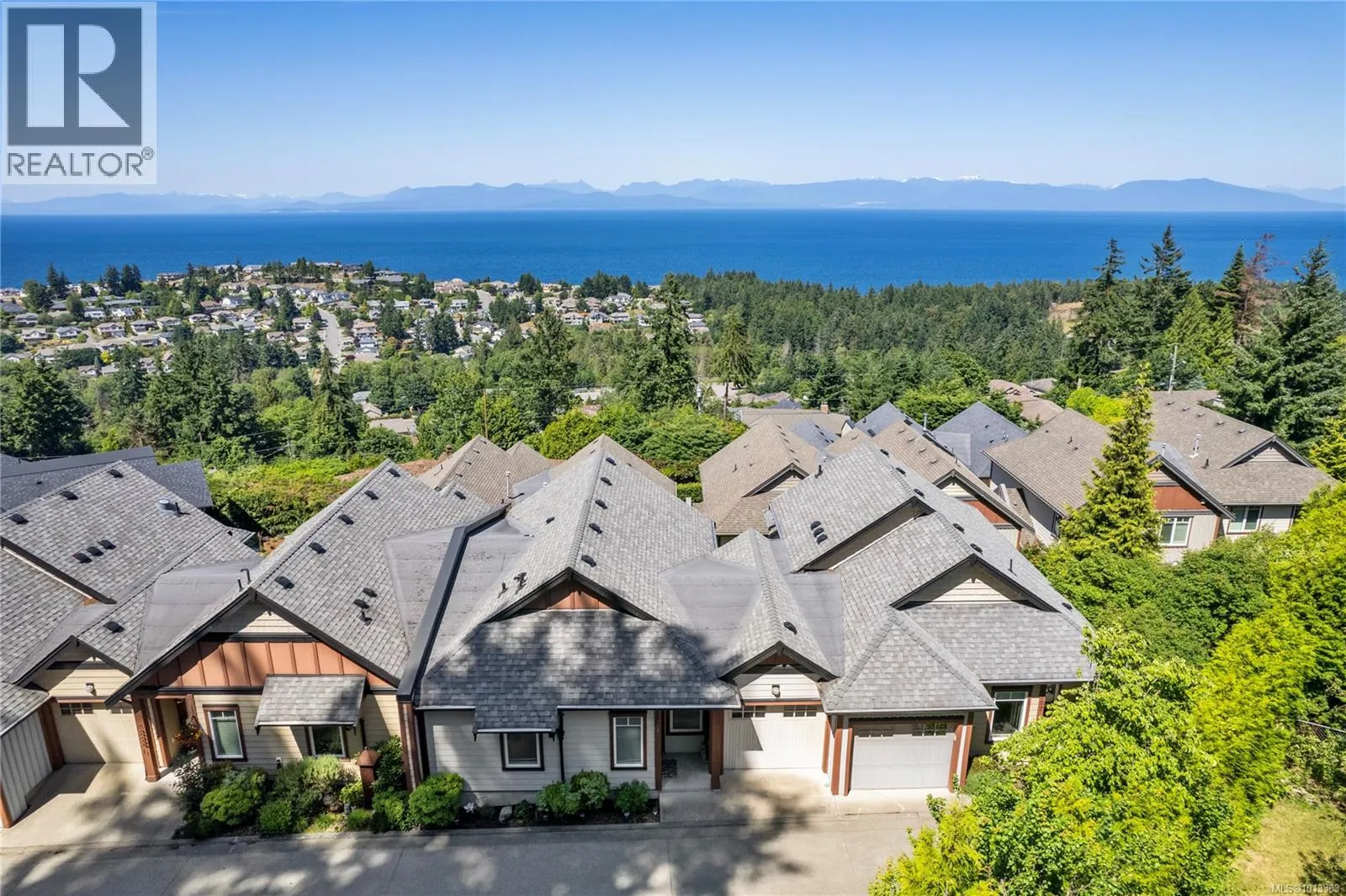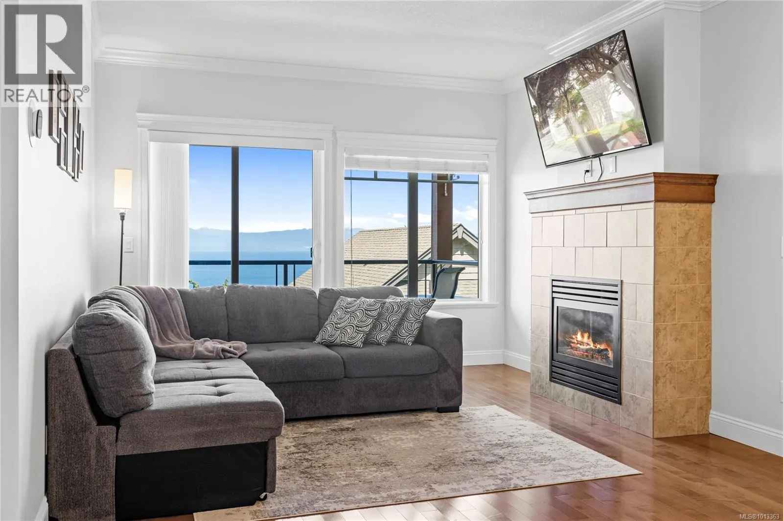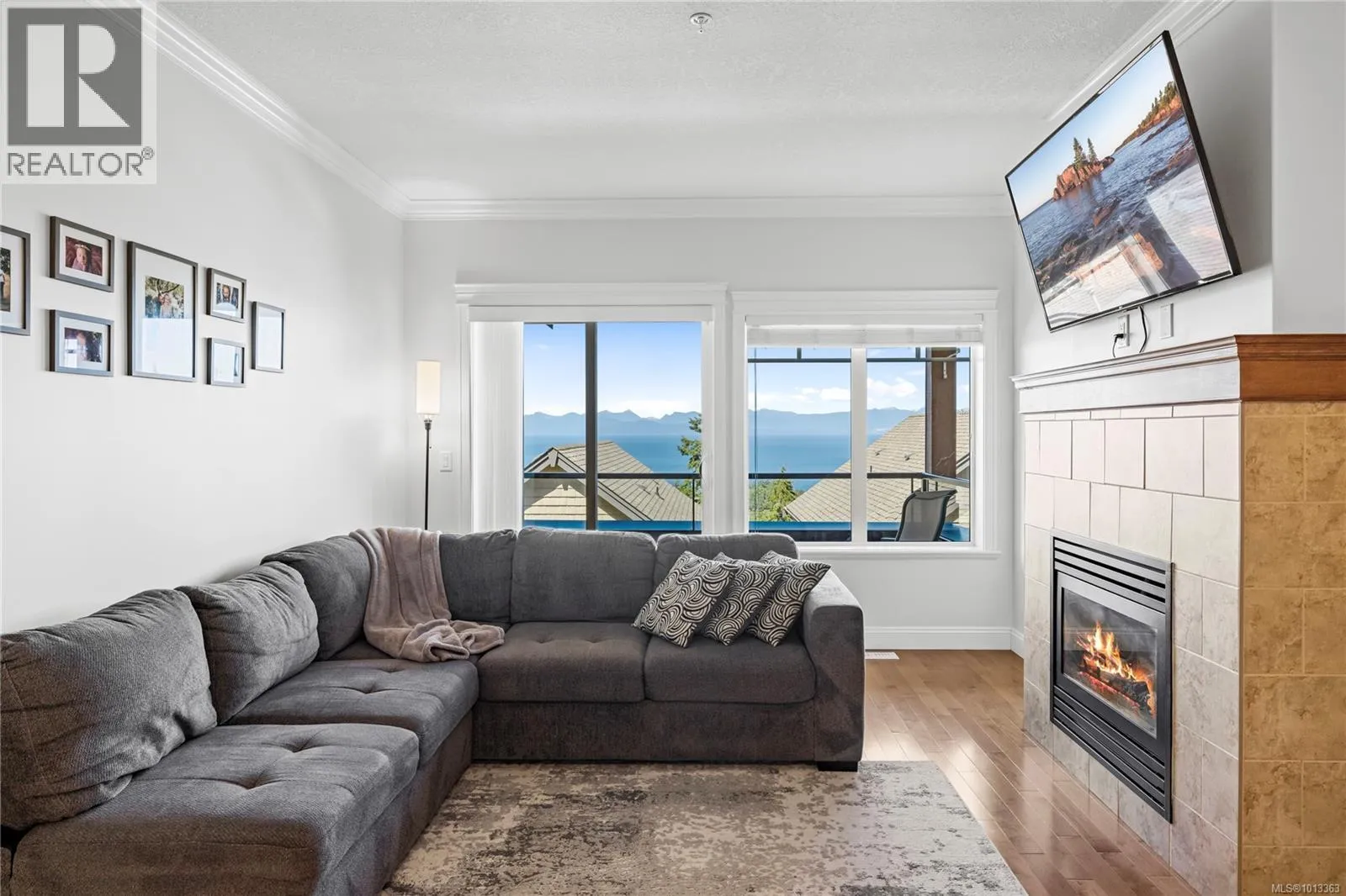 Experience elevated coastal living in this beautifully finished North Nanaimo townhome with sweeping ocean and mountain views. This 3 bed, 3 bath residence features a desirable main-level entry and an open-concept layout with hardwood floors, 9â ceilings, and a cozy gas fireplace. The chef-inspired kitchen includes quartz counters, stainless steel appliances, and soft-close cabinetry. Enjoy two ocean-facing balconies, one with a gas BBQ hookup. The layout offers one bedroom and full bath on the main, plus two bedrooms with ensuites and laundry below. Additional features include a heat pump, gas forced-air heat, Low E windows, soundproofing, and a built-in vacuum. Complete with a single-car garage and an additional outdoor stall, this pet- and rental-friendly home is close to beaches, parks, shopping, and excellent schoolsâideal for those seeking comfort, quality, and a true West Coast lifestyle. (id:27476)