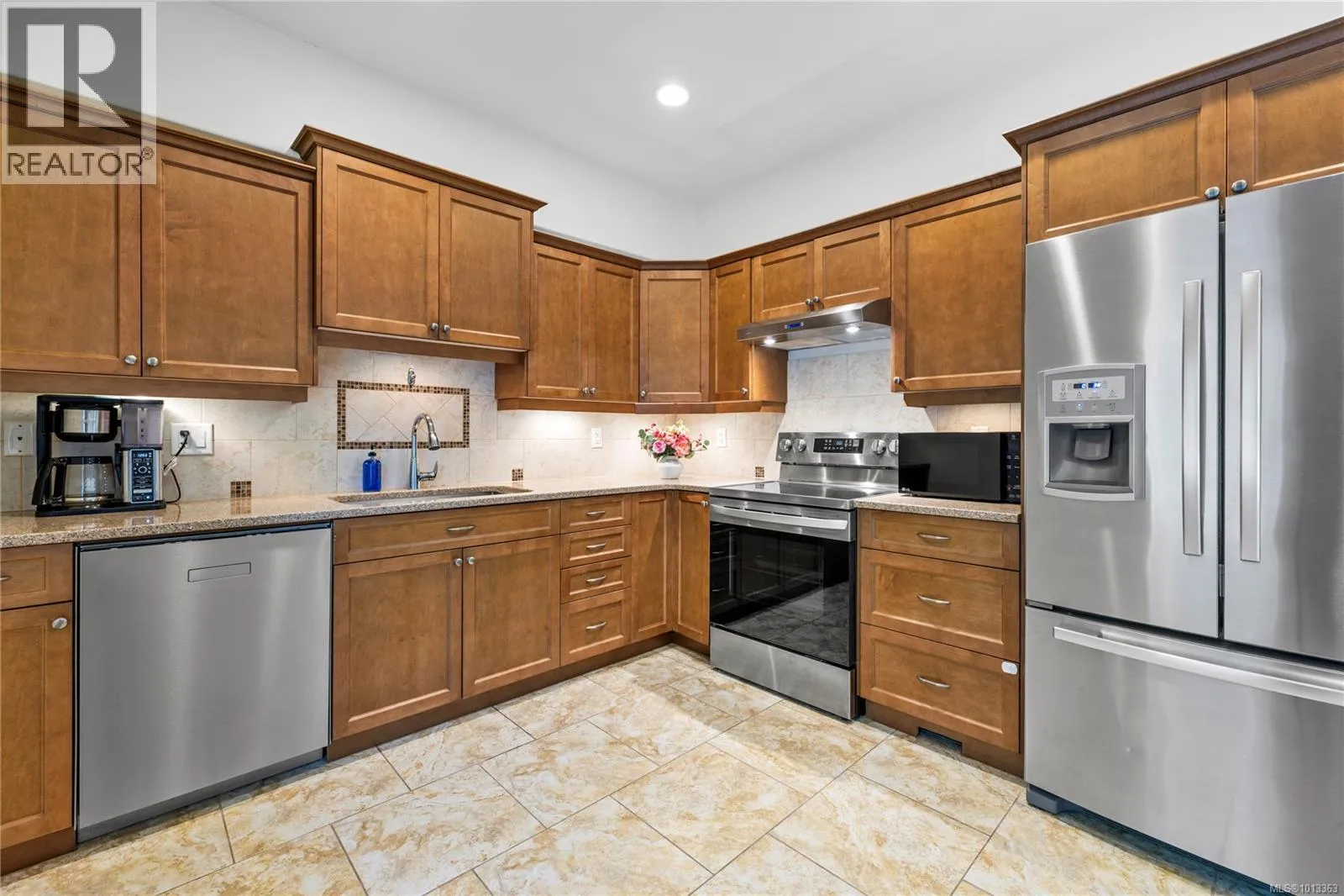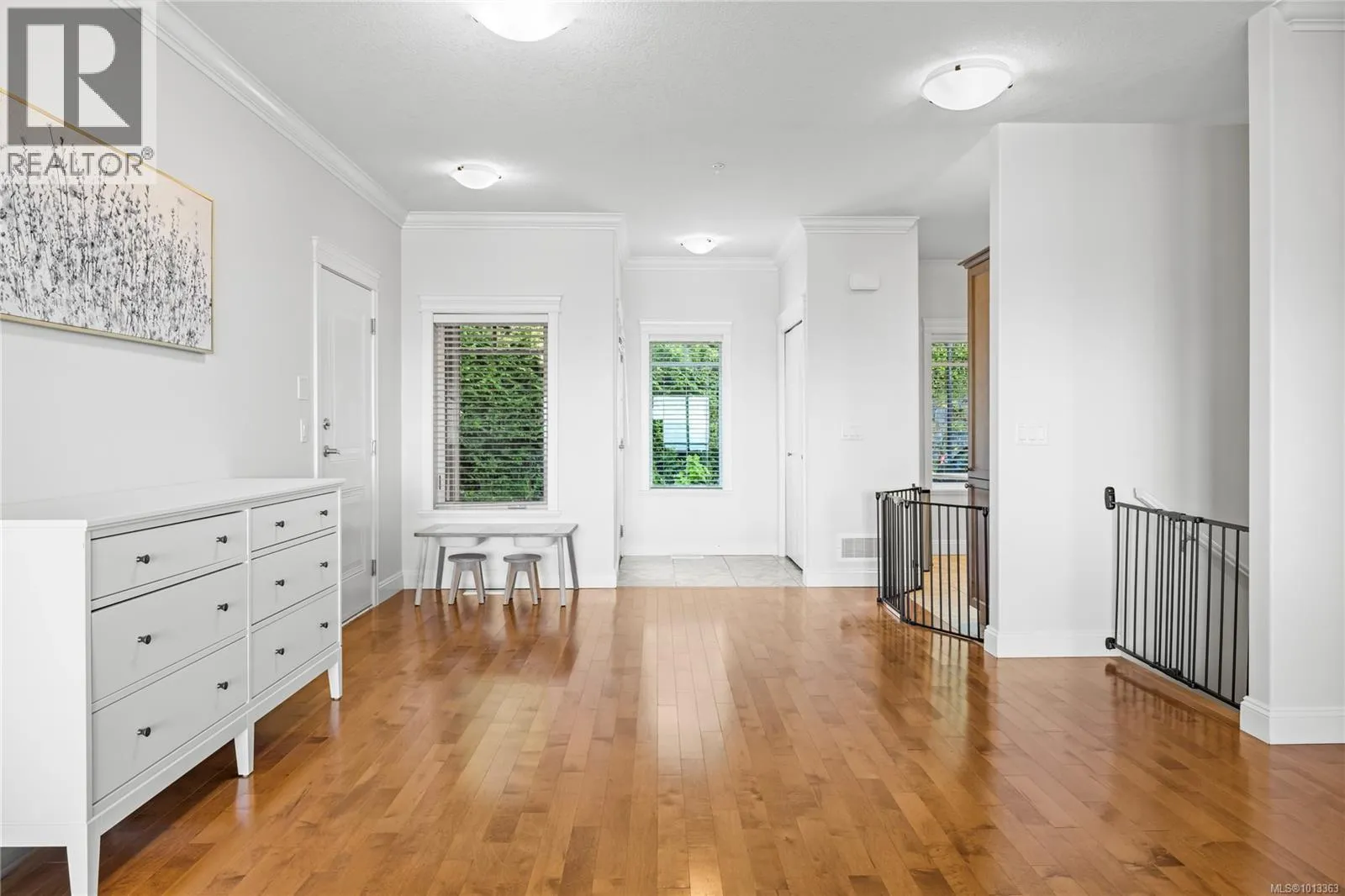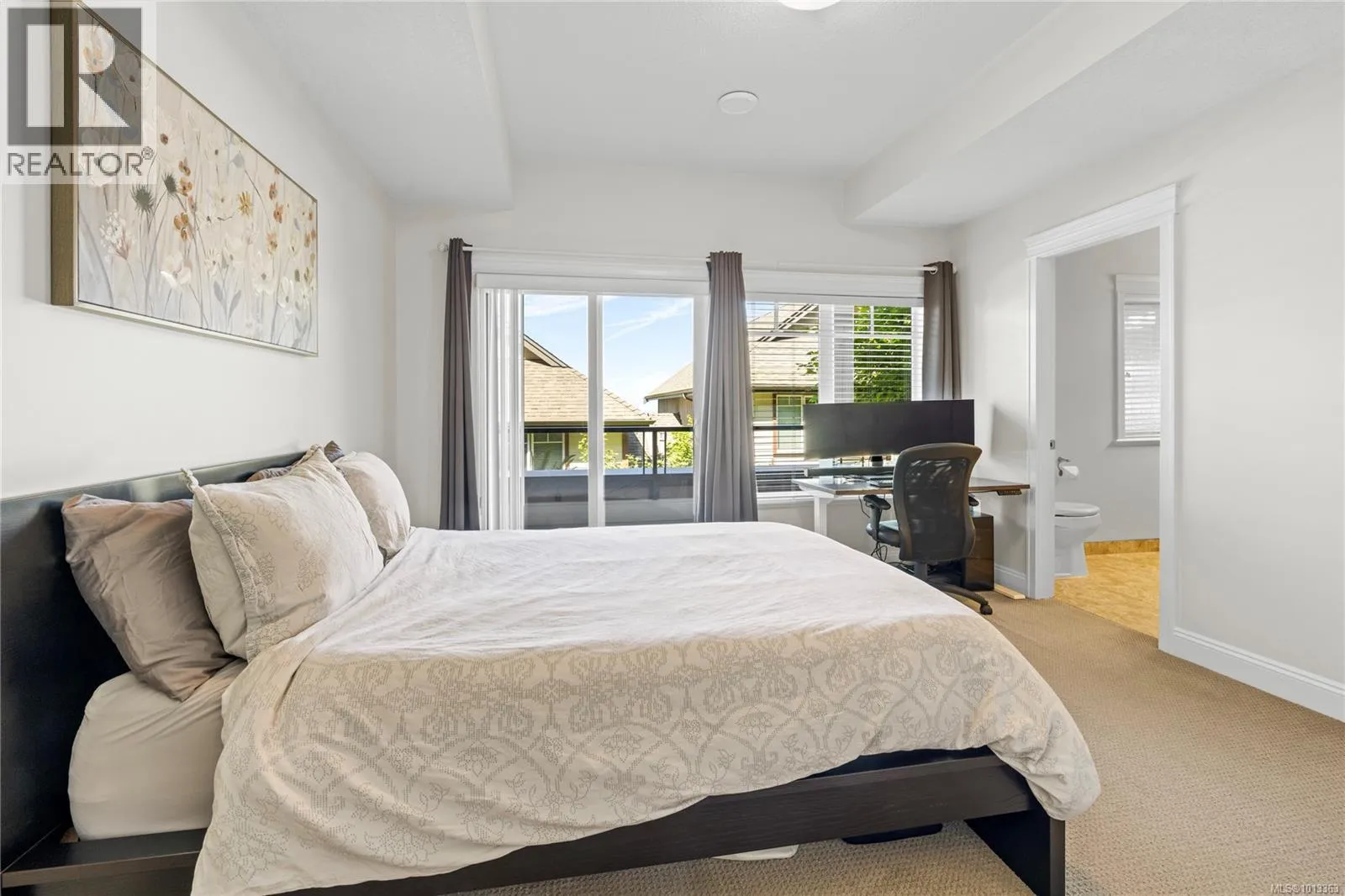 Experience elevated coastal living in this beautifully finished North Nanaimo townhome with sweeping ocean and mountain views. This 3 bed, 3 bath residence features a desirable main-level entry and an open-concept layout with hardwood floors, 9â ceilings, and a cozy gas fireplace. The chef-inspired kitchen includes quartz counters, stainless steel appliances, and soft-close cabinetry. Enjoy two ocean-facing balconies, one with a gas BBQ hookup. The layout offers one bedroom and full bath on the main, plus two bedrooms with ensuites and laundry below. Additional features include a heat pump, gas forced-air heat, Low E windows, soundproofing, and a built-in vacuum. Complete with a single-car garage and an additional outdoor stall, this pet- and rental-friendly home is close to beaches, parks, shopping, and excellent schoolsâideal for those seeking comfort, quality, and a true West Coast lifestyle. (id:27476)
