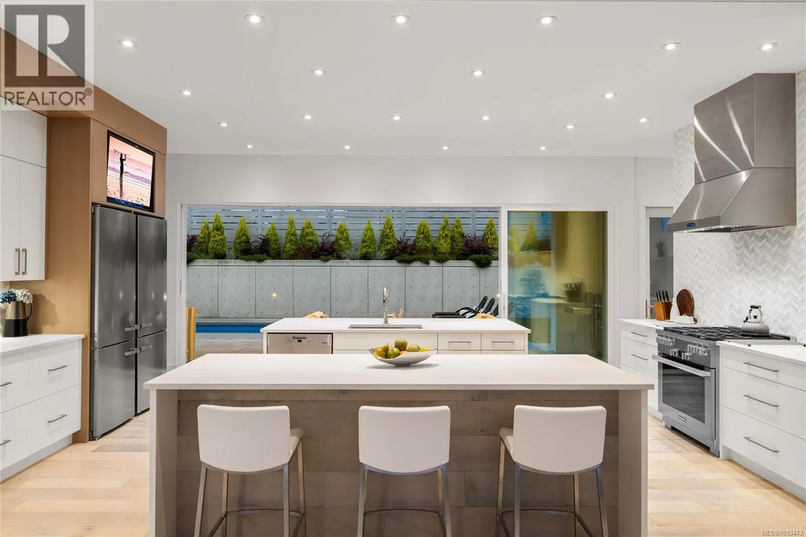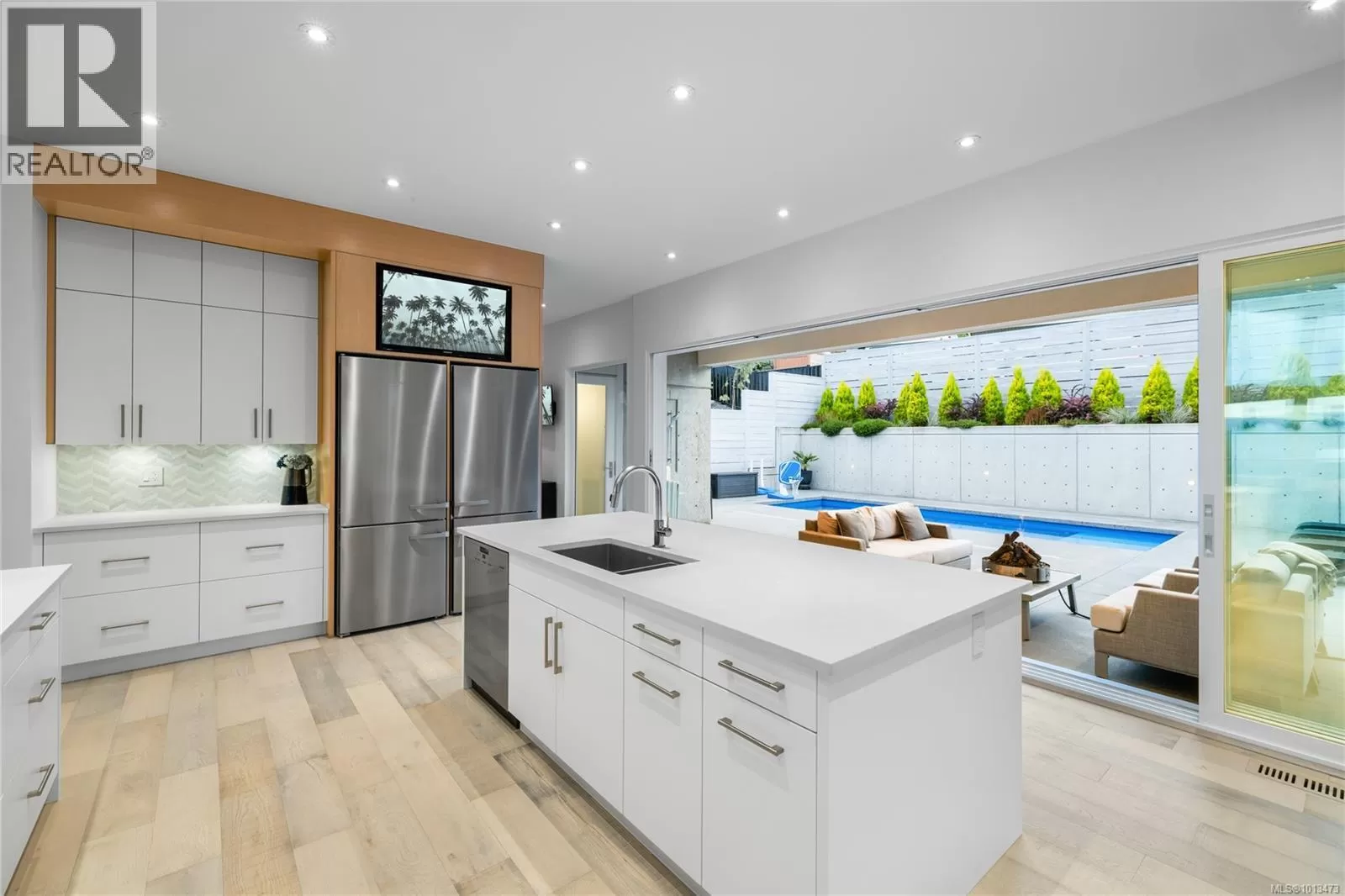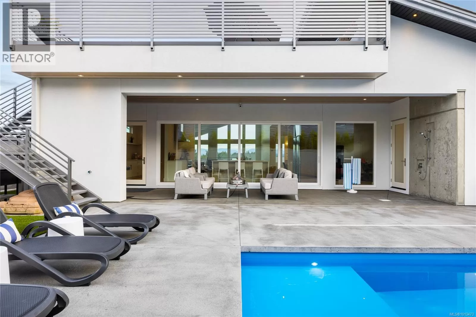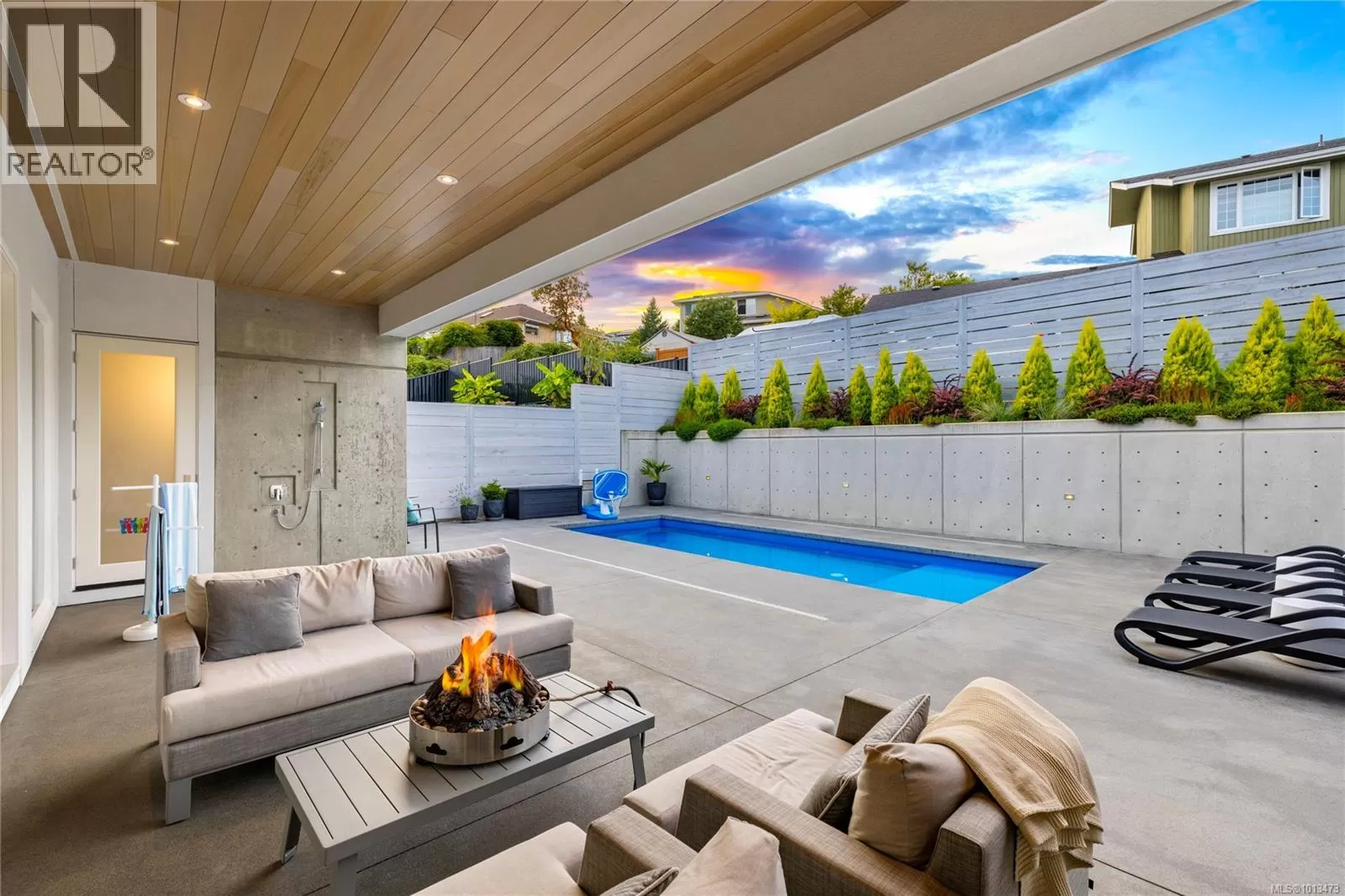 Welcome to this exquisite custom-built residence, perfectly positioned to enjoy sun-drenched southern exposure. Thoughtfully designed with luxury and comfort in mind, this home seamlessly integrates indoor and outdoor living. A stunning 20â sliding glass wall opens to a private, fenced yard featuring a covered patio and a 25x10 heated in-ground poolâperfect for relaxing or entertaining. Exterior aluminum stairs lead to a remarkable 800 sq ft rooftop deck offering panoramic ocean views. Inside, the chef-inspired kitchen showcases double islands, premium Miele appliances, and a full butlerâs pantry. The expansive primary suite is a true retreat, featuring a lavish 5-piece ensuite with dual vanities, freestanding tub, water closet, glass shower, and a generous walk-in closet. Elegant details throughout include quartz countertops, soaring vaulted ceilings, architectural concrete accent walls, a 72â linear fireplace, custom open riser staircase, and wide-plank engineered oak floors. For added ease, two laundry areas are thoughtfully included. A rare blend of sophistication and coastal charmâthis home is a must-see. All measurements are approximate and should be independently verified. (id:27476)