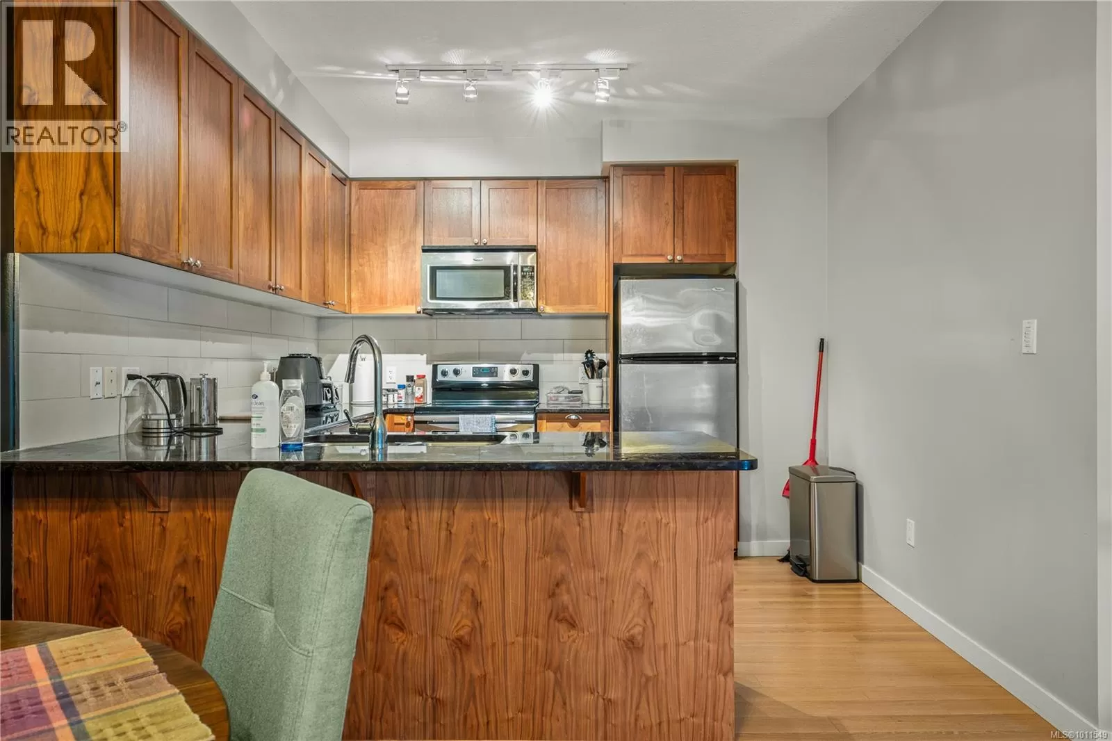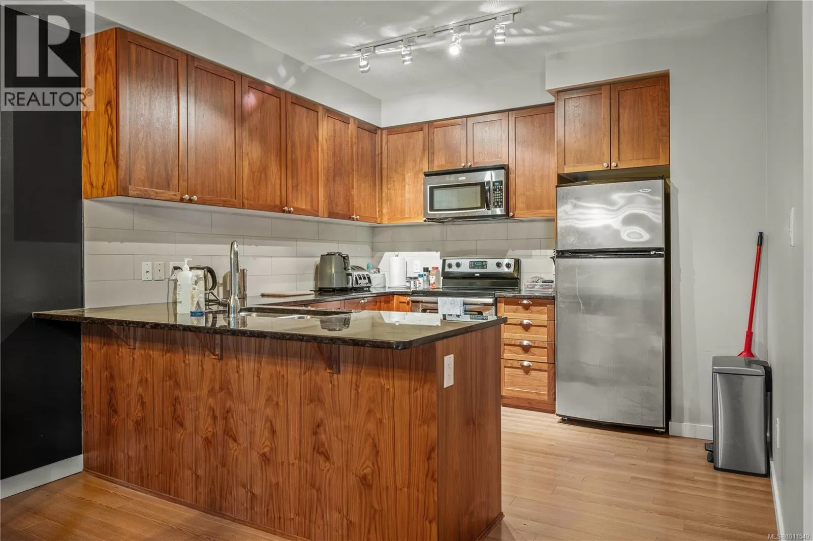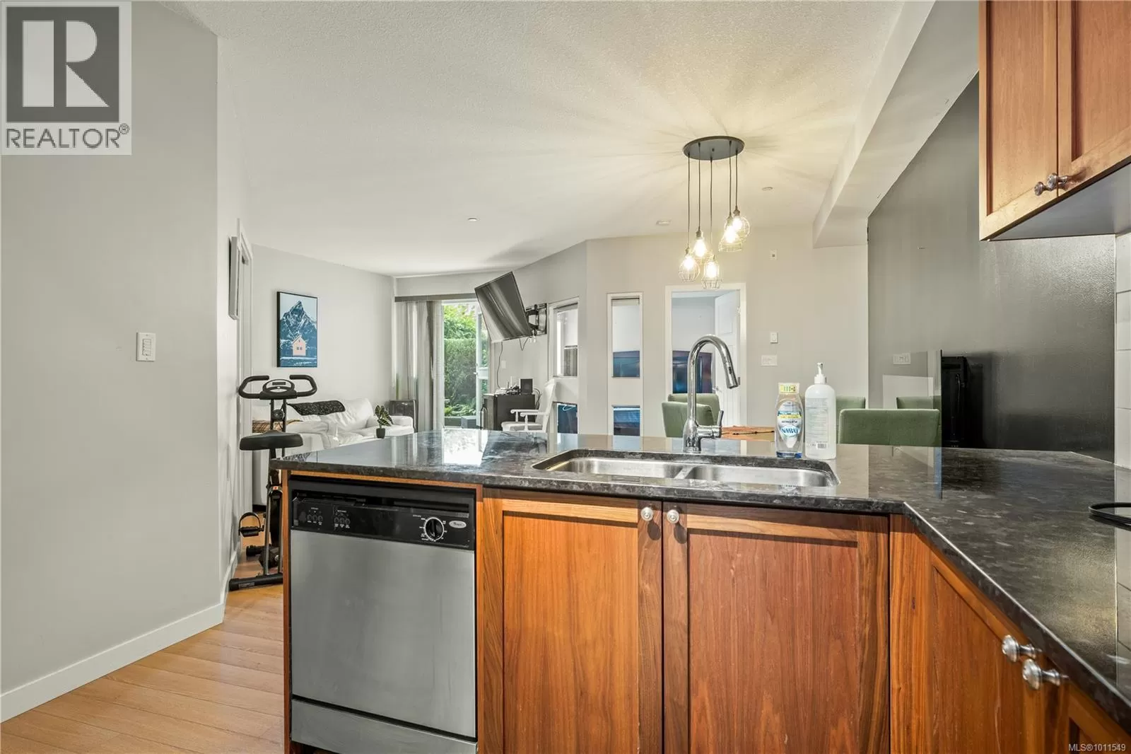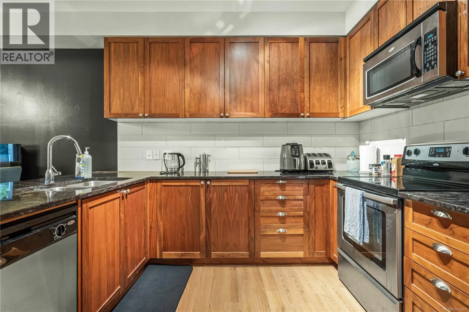 Welcome to Studio NA, one of Nanaimoâs most sought-after condo buildings. This bright 2 bed, 2 bath corner unit offers direct access to a private ground-floor patio and the lush courtyardâperfect for pet owners or anyone wanting easy outdoor access. Inside, the open concept layout features a modern kitchen with granite countertops, subway tile backsplash, stainless-steel appliances and in-suite laundry. The spacious primary bedroom includes a walk-in closet and 5-piece ensuite, while the second bedroom works well as a guest room or office. With a walk score of 96, youâre steps from the seawall, Maffeo Sutton Park, the marina, cafes, restaurants and boutiques, plus direct access to downtown Vancouver via seaplanes & the Hullo Ferry. Secure underground parking, storage, and kayak/paddleboard racks for the ultimate downtown island lifestyle. Pet and rental friendlyâready for homeowners or investors! (id:27476)