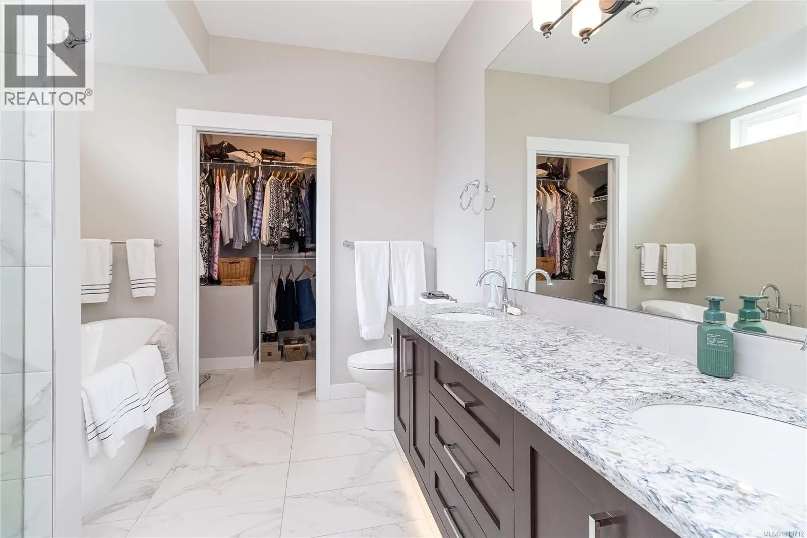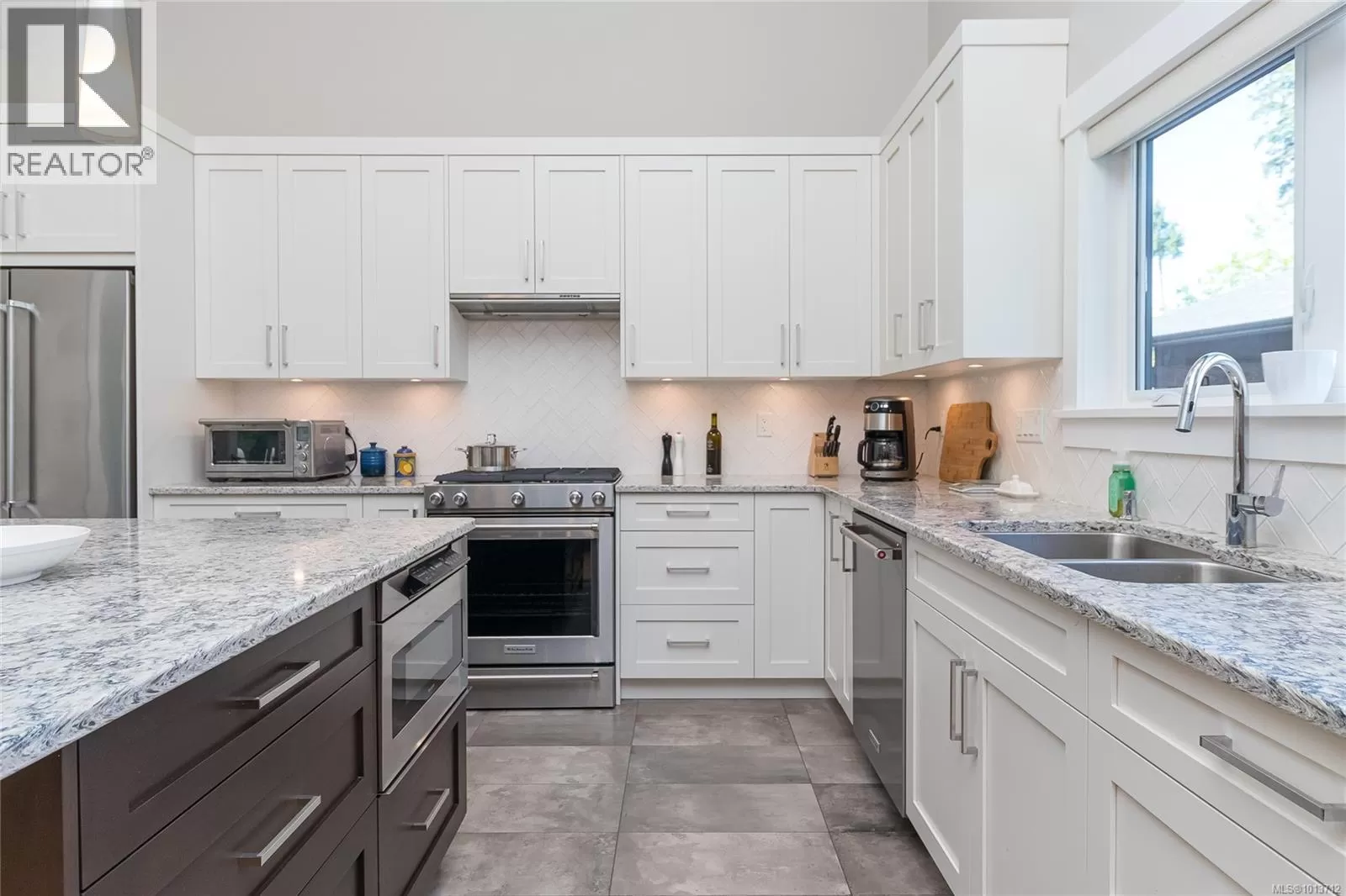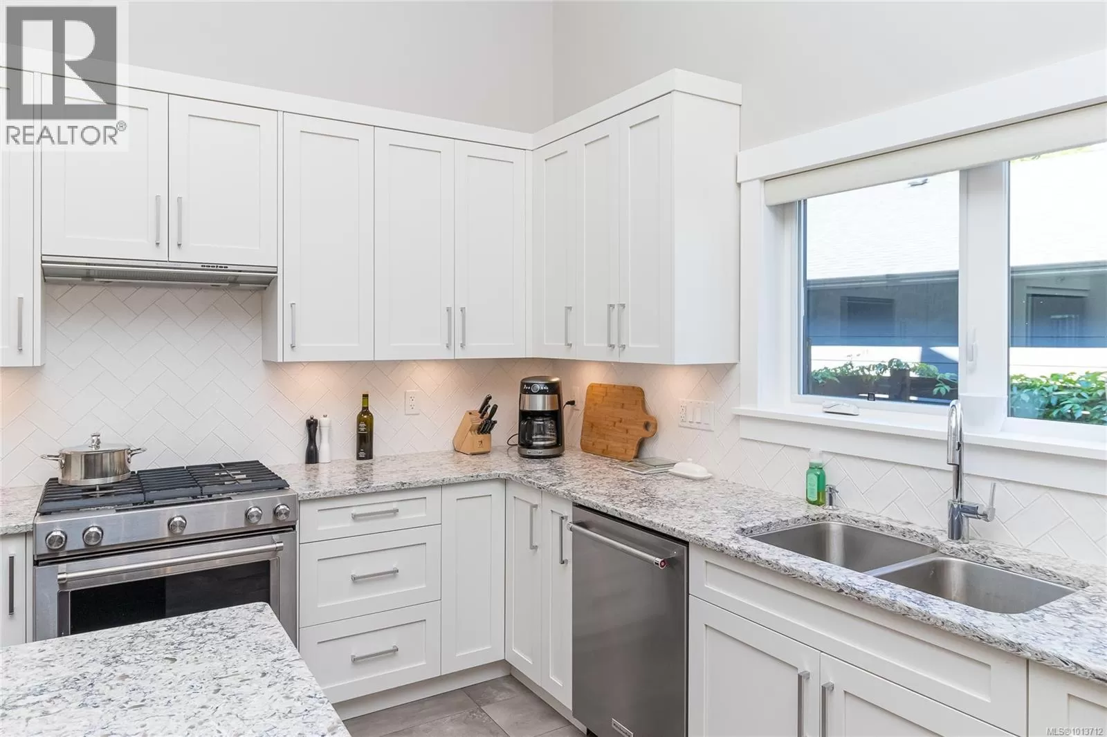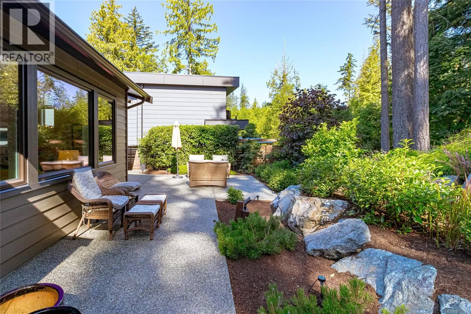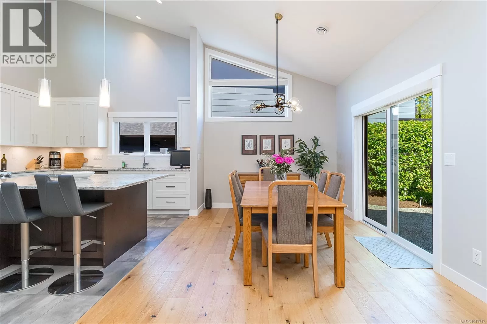 This immaculate, modern residence in one of Nanaimo's most prestigious communities impresses with a unique main floor layoutâoffering the coveted primary bedroom suite and all principal living spaces on the entry level, perfect for both convenience and privacy. Enter to discover a bright, airy open-concept design with soaring ceilings, stunning wide-plank floors, and oversized windows that bring the beauty of the outdoors inside. The heart of the home is a chefâs kitchen, outfitted with crisp white cabinetry, high-end stainless appliances, a dramatic quartz-topped island, and beautiful herringbone tile backsplashâoffering seamless flow to the dining and great room for effortless entertaining. The sun-filled living area spills naturally to a tranquil garden patio oasis, nestled among lush, professionally designed landscapingâideal for relaxing or hosting outdoors. The main floorâs thoughtful design extends to a spacious primary suite, creating a private retreat with luxurious finishes and a spa-inspired ensuite. Upstairs are 2 generous bedrooms and a full bathroom. Added storage in the 5' crawl space completes this package. Move-in ready, meticulously maintained, and set in Nanaimo's Ridge neigborhood dotted with parks and scenic trails. (id:27476)