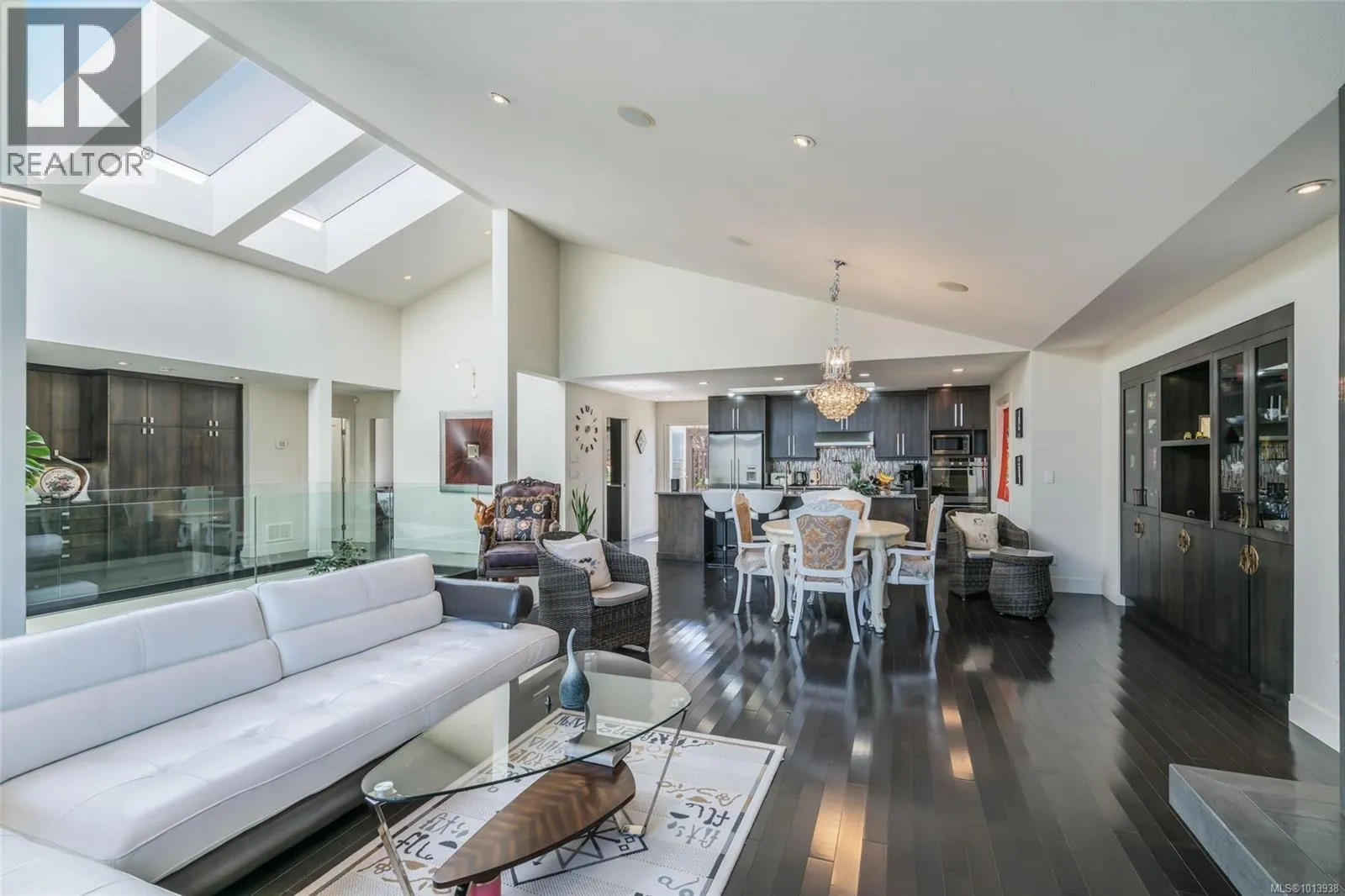 Beautiful and contemporary, this one-of-a-kind executive home in North Nanaimoâdesigned by Chow Low Hammond Architects and built by Windley Constructionâoffers exceptional detail and harmonious design throughout. The striking entry and 2-storey central atrium, with oversized skylights, flood the interior with natural light, embodying a concept of energy, balance, and well-being. The open main floor features custom built-in cabinetry, a gourmet kitchen with quartz countertops, premium Fisher & Paykel appliances, and a secondary pantry kitchen. The lower level includes a library/media room, personal gym, and spa retreat with a Japanese soaker tub and infrared sauna. Heated polished concrete floors, a forced air heat pump, on-demand hot water with return plumbing, and ample skylights add comfort and efficiency. Enjoy spectacular sunsets over the Winchelsea Islands from the oceanview front deck or entertain on the sunny back patio. Ideally located near schools, parks, and amenities in a semi-waterfront setting. (id:27476)