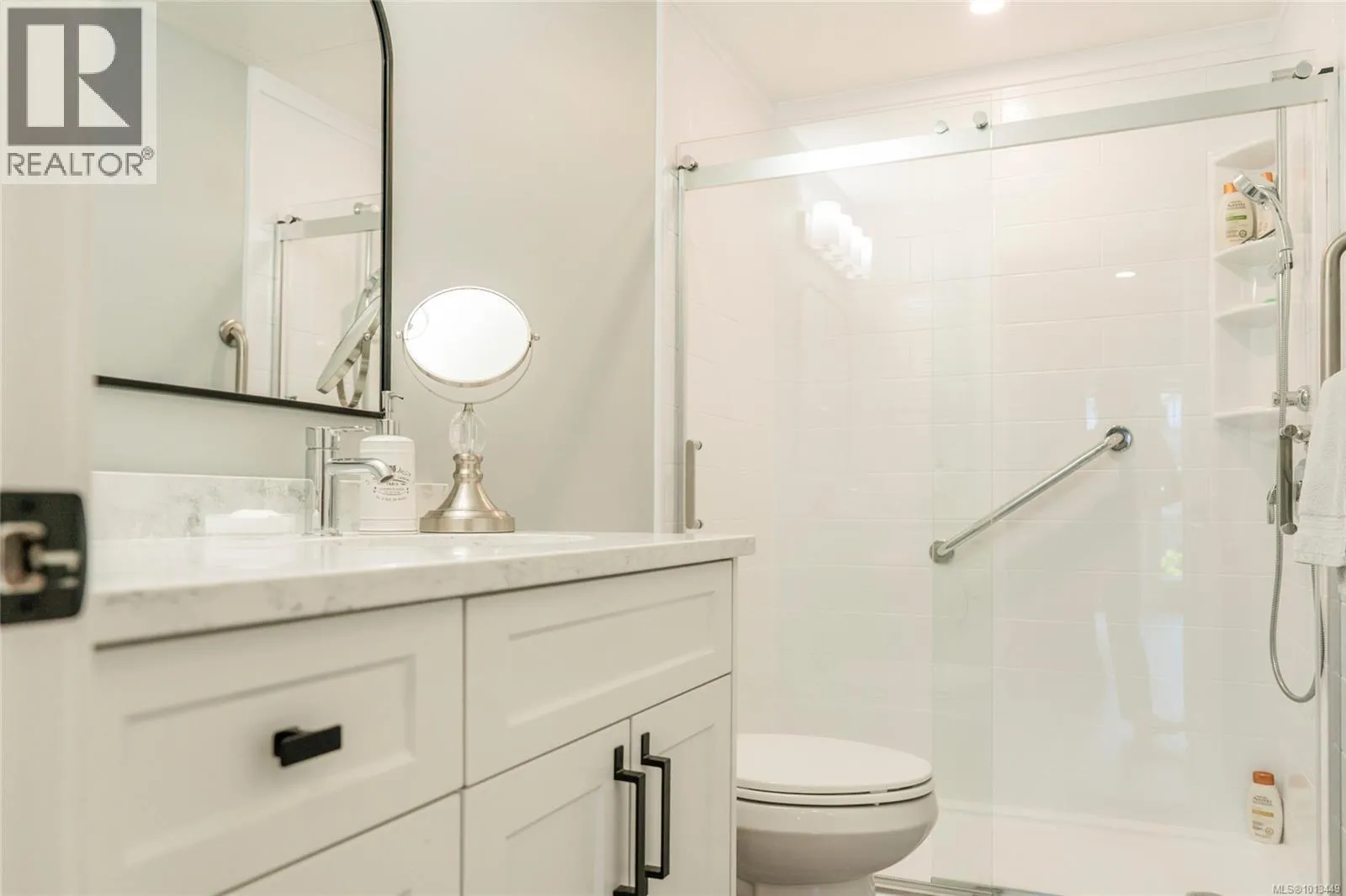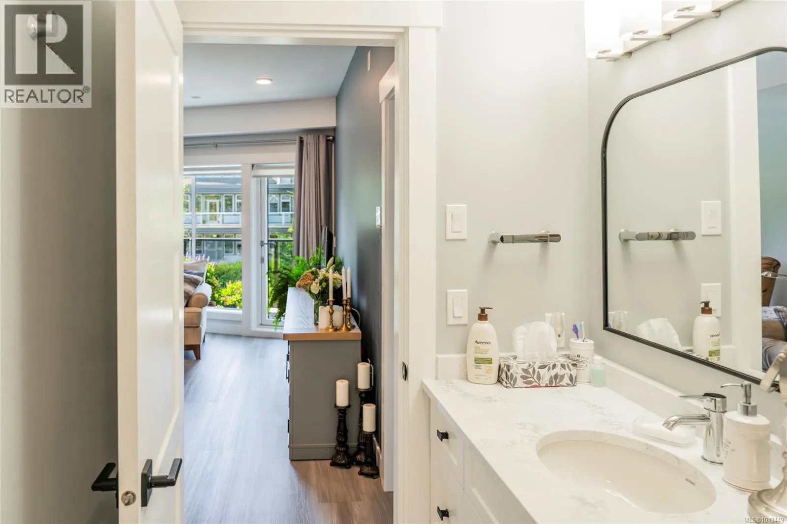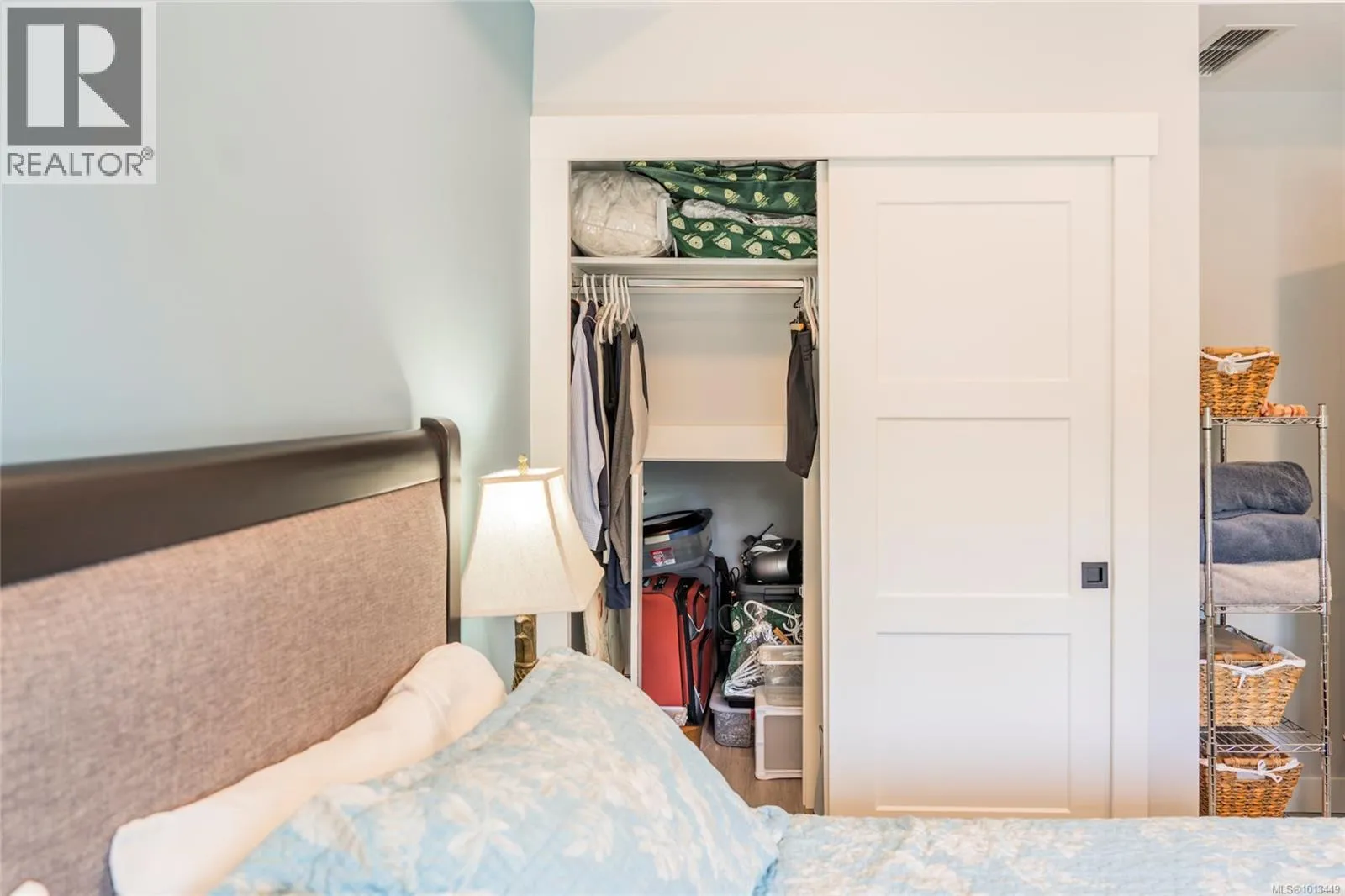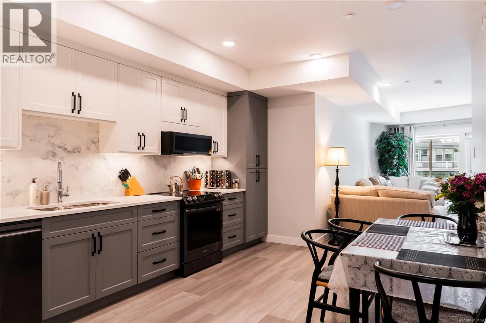 Steps from Nanaimo's Long Lake and North End amenities, this condo pairs modern design with a great location. Expansive windows brighten the open layout, while the kitchen is equipped with top-of-the-line Samsung stainless steel appliances, elegant quartz countertops, and a matching quartz backsplash for a clean, contemporary look. The open living space extends onto the deck through European-style exterior glass doors, perfect for extending your living space outdoors. This condo also features a one-of-a-kind in-suite storage space built in behind the bedroom closet offering practical convenience rarely found in condo living. The bathroom has been upgraded with a tiled walk-in shower, while stylish hardware and individual heat pumps add high-end touches and year-round comfort. One underground parking stall is included and a storage locker. With its unique features and prime setting, this home is an exceptional opportunity for those seeking modern comfort in a desirable Nanaimo location. (id:27476)