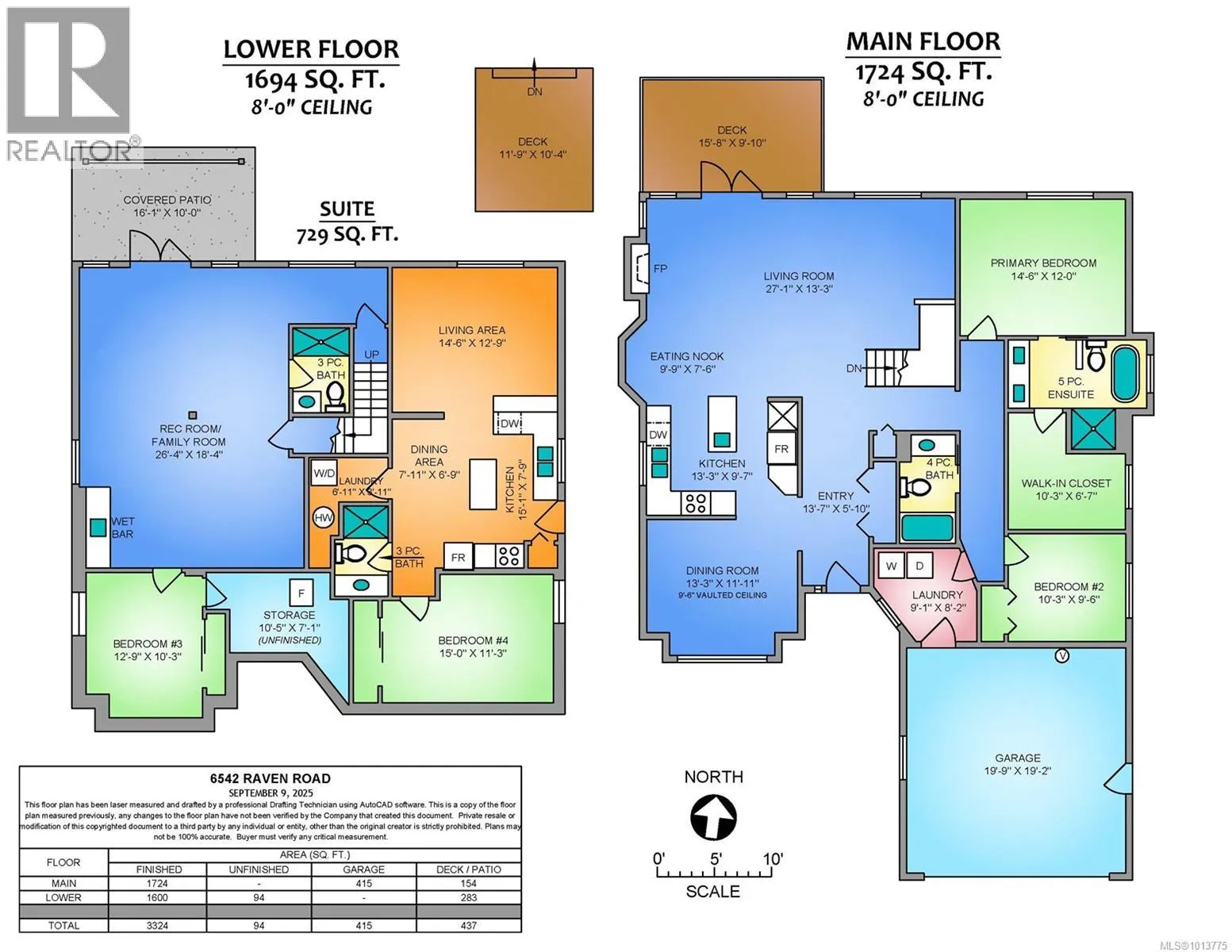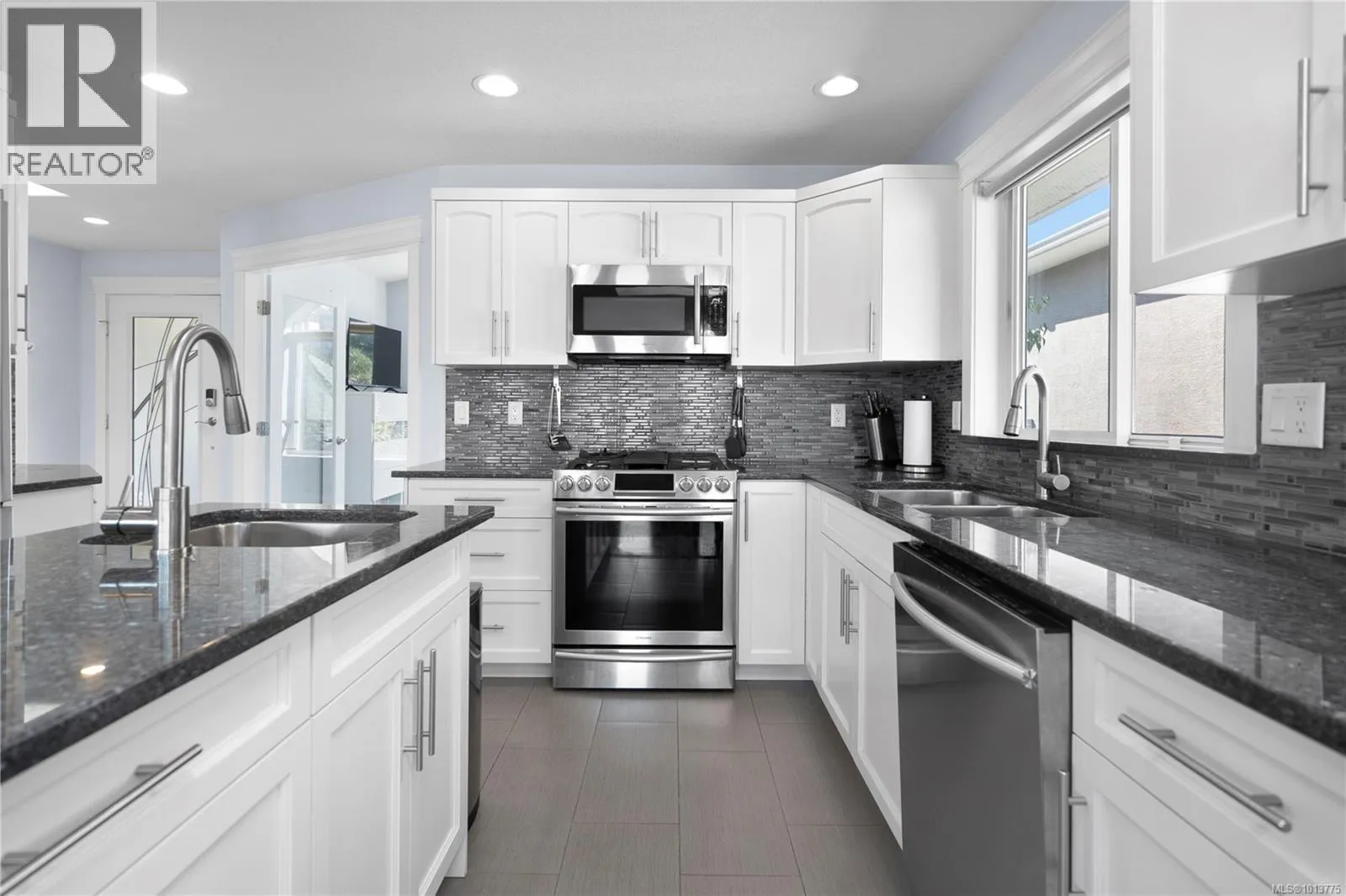 Welcome to 6542 Raven Road, a beautifully renovated 3,324 sq ft residence in desirable North Nanaimo offering spectacular ocean, mountain, and Winchelsea Island views. The main level entry features an open-concept living area with a gas fireplace, expansive windows, and deck access to enjoy the scenery. The gourmet kitchen includes granite countertops, a stylish island/eating bar, custom backsplash, high-end appliances, and a gas stove. The primary bedroom highlights ocean views, a 5-piece ensuite, and a walk-through to a custom walk-in closet. A second bedroom, 4-piece bathroom, and laundry room complete the main floor. Downstairs, discover a spacious rec room with wet bar, third bedroom, 3-piece bathroom, and storage. The legal 1-bedroom suite with separate entrance has granite counters, laundry, and ocean views providing an excellent mortgage helper. Additional highlights include a landscaped/fenced yard, RV parking, and proximity to Woodgrove Mall, Dover Secondary, shopping, dining, and beach access. Measurements are approximate; verify if important. (id:27476)