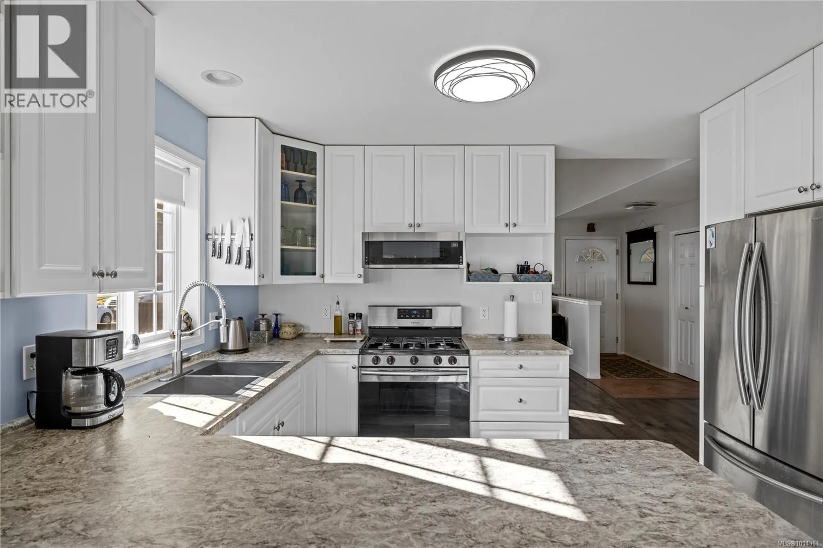 This half duplex in desirable Sunshine Ridge backs onto parkland and offers peaceful pond views. The vaulted ceiling in the living and dining rooms creates a spacious feel, complemented by a gas fireplace in the living room. The kitchen boasts stainless appliances including a gas stove, an eating bar, and a breakfast nook. A partially covered deck overlooks the pond, providing a serene outdoor space. On the main level are two bedrooms, a four-piece bathroom, and laundry. The upper level is dedicated to the primary suite with a walk-in closet and three-piece ensuite. Recent upgrades include the roof and furnace. For more information see the video, 3D Tour and floor plan. All data and measurements are approximate and must be verified if fundamental. (id:27476)