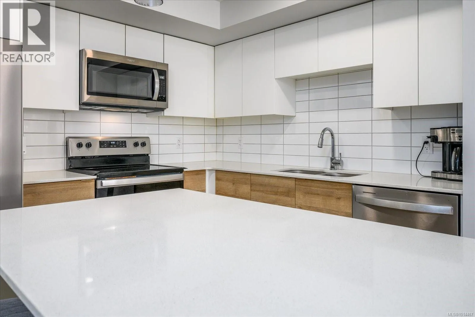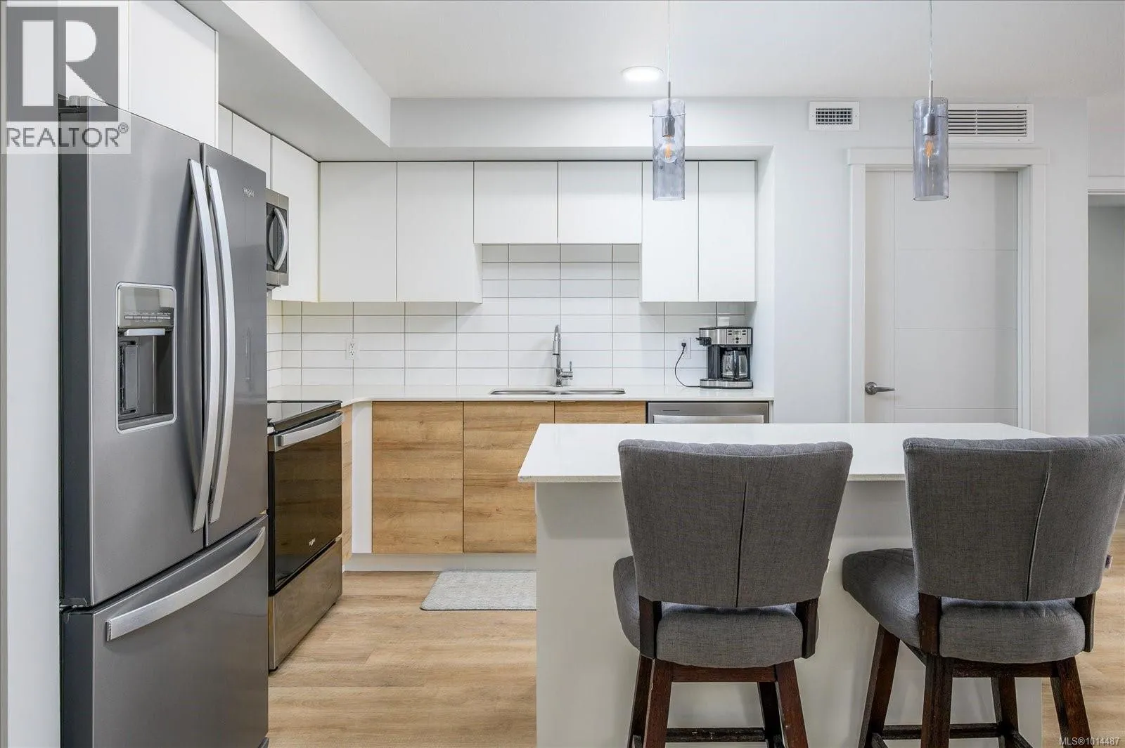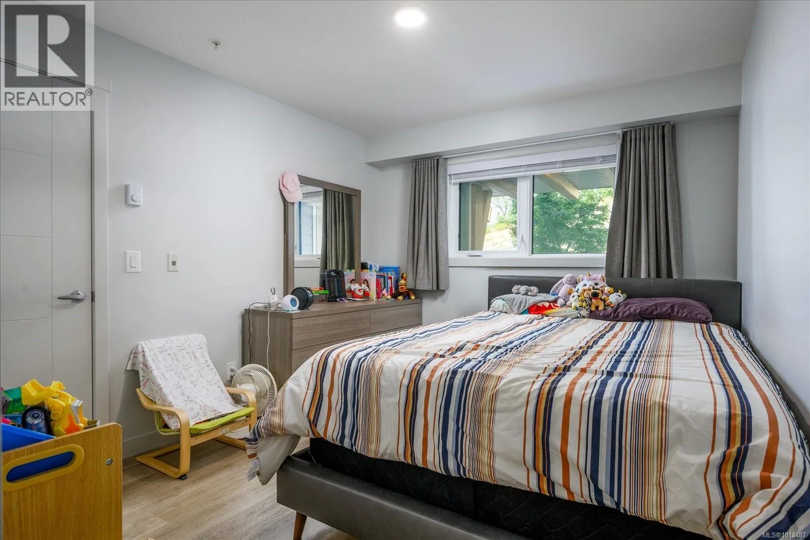 Welcome to Lakeview Terraces! This desired ground-floor corner unit at 102-4820 Cedar Ridge Place offers rare private exterior access off your patio â no elevators required. Inside youâll find one of the communityâs largest floor plans with 2 spacious bedrooms, each with its own ensuite, plus a generous laundry/storage room. Tucked at the quiet back of the complex, this home blends privacy with convenience. The secure underground parkade includes assigned parking with EV-ready to setup. Lakeview Terraces is BUILT GREEN® certified with triple-pane windows, solar panels for common areas, and energy-efficient systems. Residents enjoy a gym, clubhouse, games room, bike storage, and multiple EV chargers. Steps to Long Lake for swimming, watersports, and fishing, and just minutes to Nanaimo North Town Centre, dining, and transit. A modern, accessible lifestyle in a prime location awaits! (id:27476)