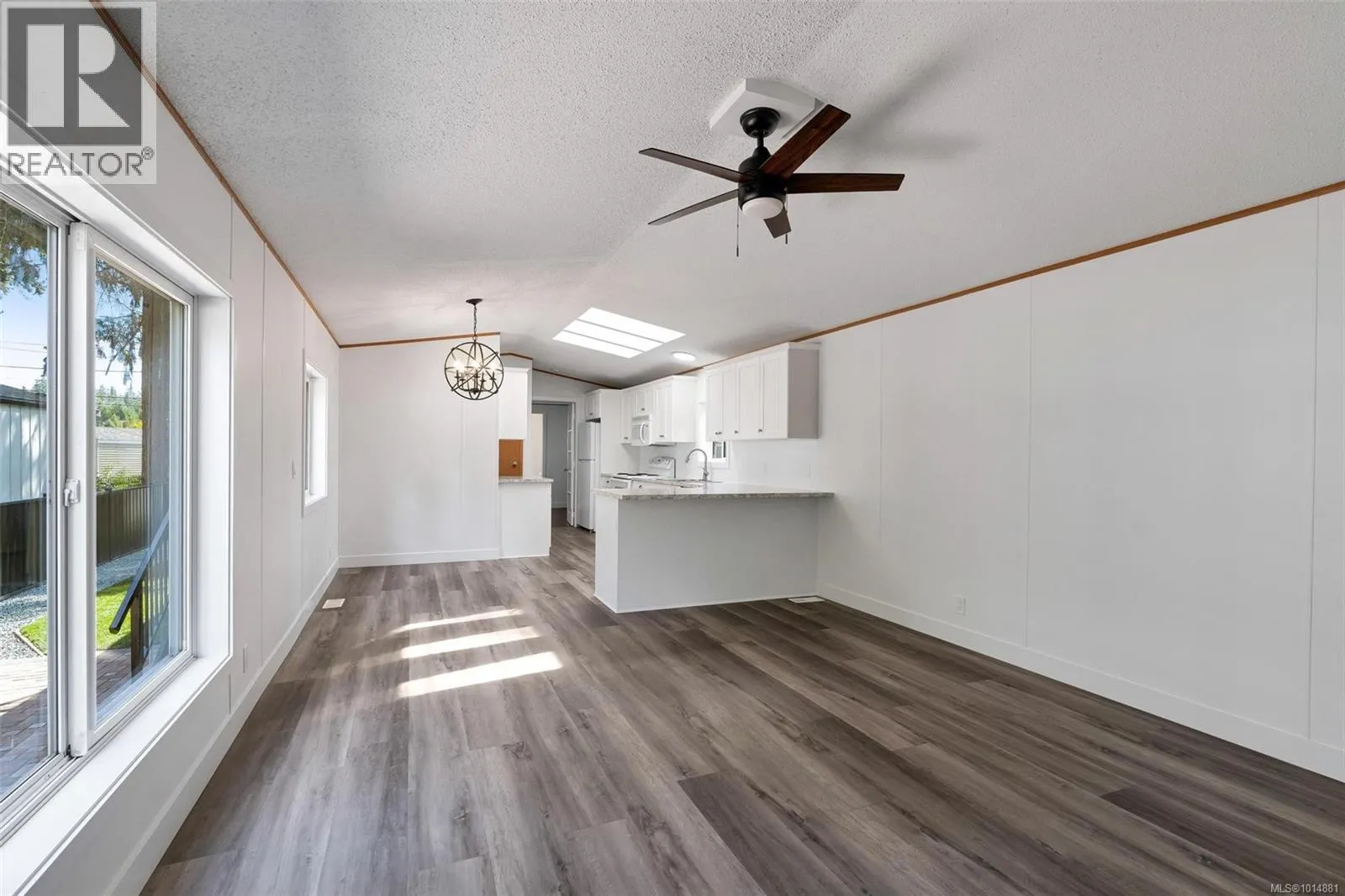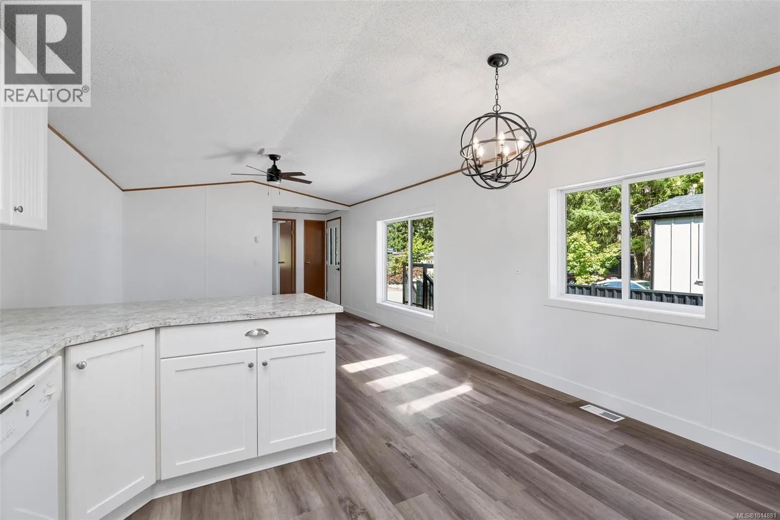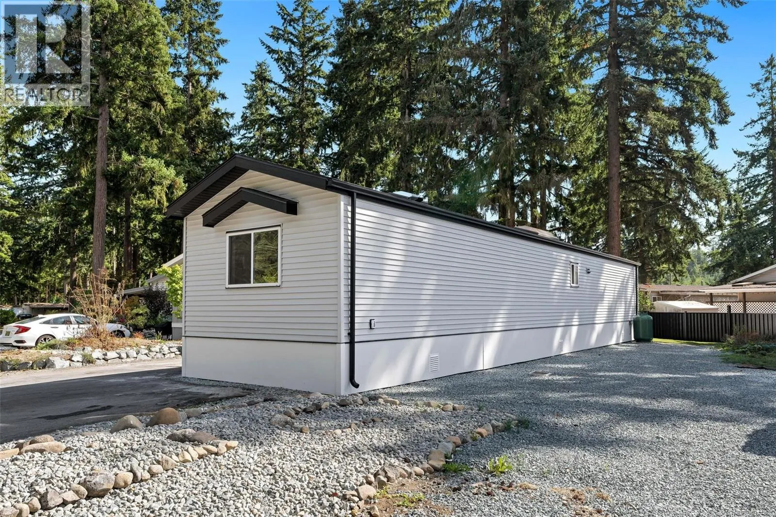 Lovely updated single-wide manufactured home featuring a modern colour palette and stylish lighting throughout. Offering 2 bedrooms and 2 bathrooms, this home has seen numerous upgrades, including a new roof, new siding, fresh paint, new countertops, and updated light fixtures. Built with 2x6 framing for added energy efficiency, it combines comfort and style. Located in the quiet Timberland Mobile Home Park, just minutes to Ladysmith or Nanaimo, this property provides both convenience and tranquillity. (id:27476)