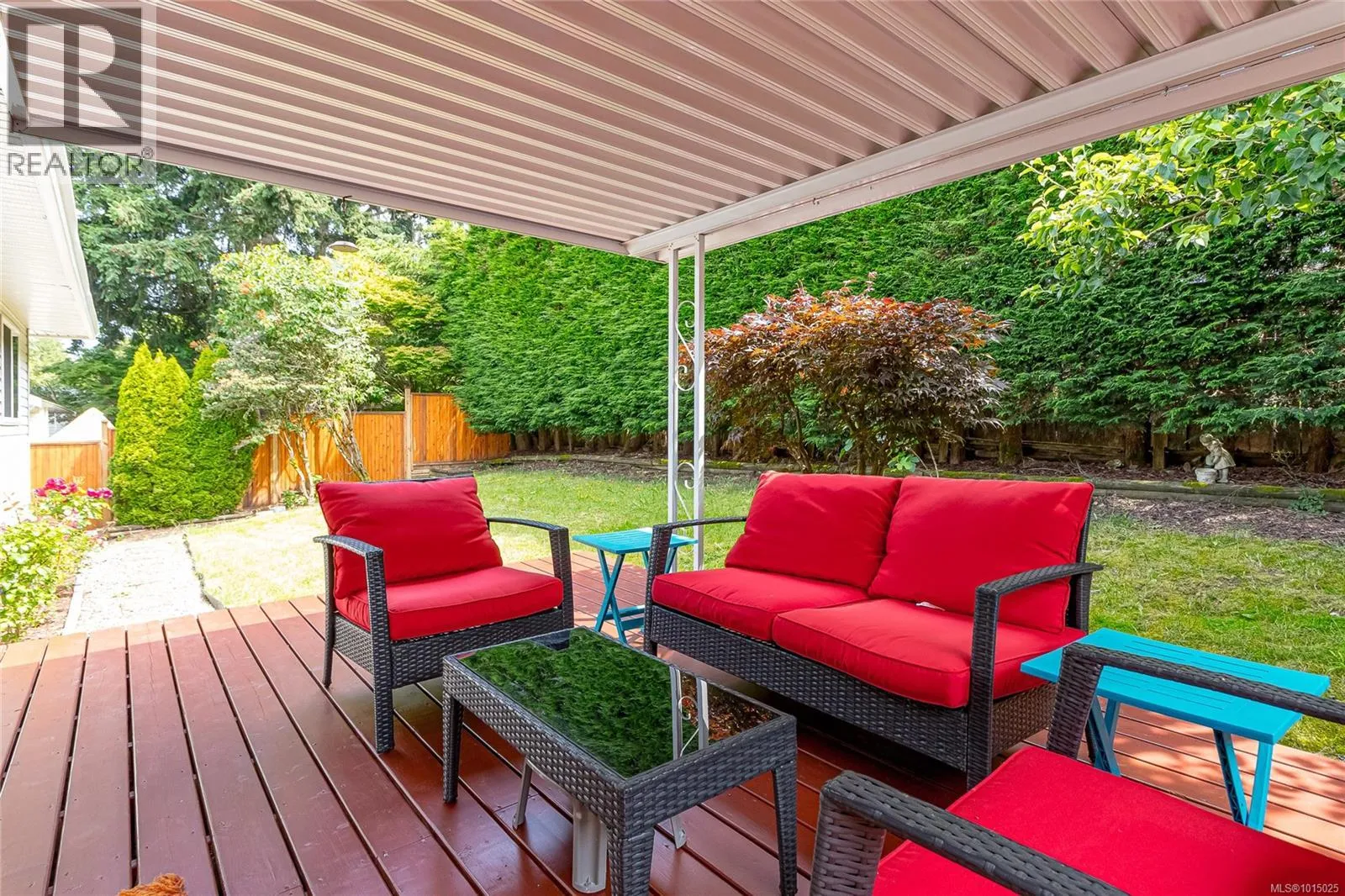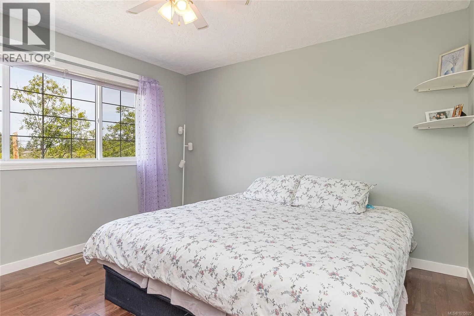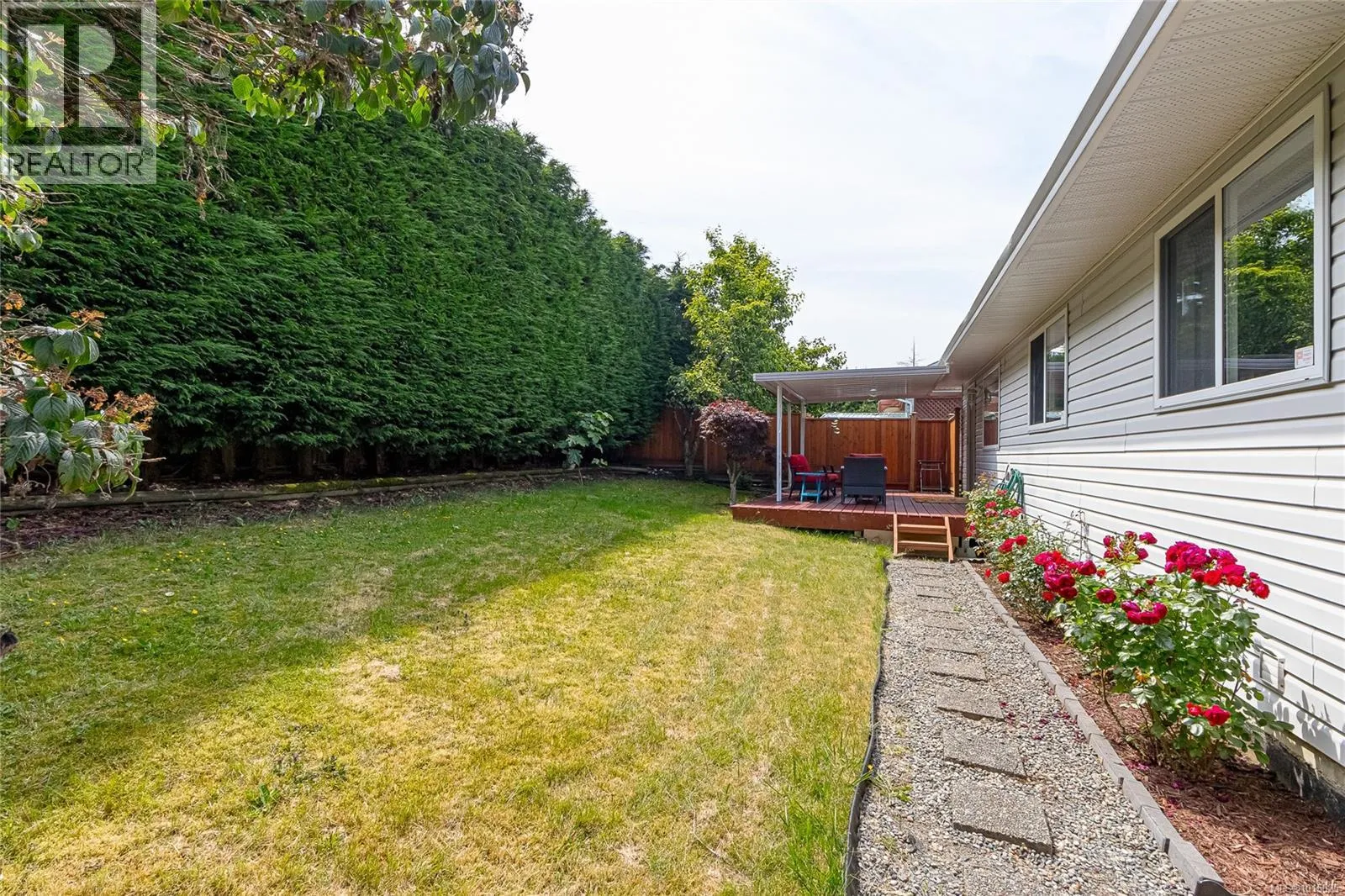 Here is an ideal family home close to Neck Point near Hammond Bay Elementary School (French Immersion). This family home features a large kitchen which overlooks your private backyard with a deck surrounded by trees/hedges & plenty of sunshine! The kitchen features lots of cupboards and an island eating bar and nook area. There is a generous sized living room with bright windows and a gas fireplace. The primary bedroom boasts an enormous walk-in closet as well as a 4 piece ensuite bathroom. There are 2 more bedrooms on this level as well as a main floor laundry room. Downstairs, you will find two more bedrooms and a finished rec room. This level also includes a bathroom with a shower. There is a built-in vacuum system. A double garage plus driveway and additional parking for an RV. The furnace & hot water tank were replaced in 2024 and the roof was replaced in 2021 so this will be a great maintenance free home for many years to come. (id:27476)