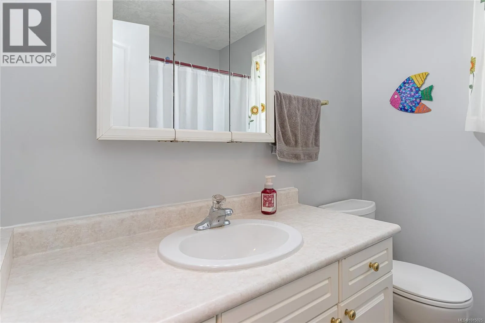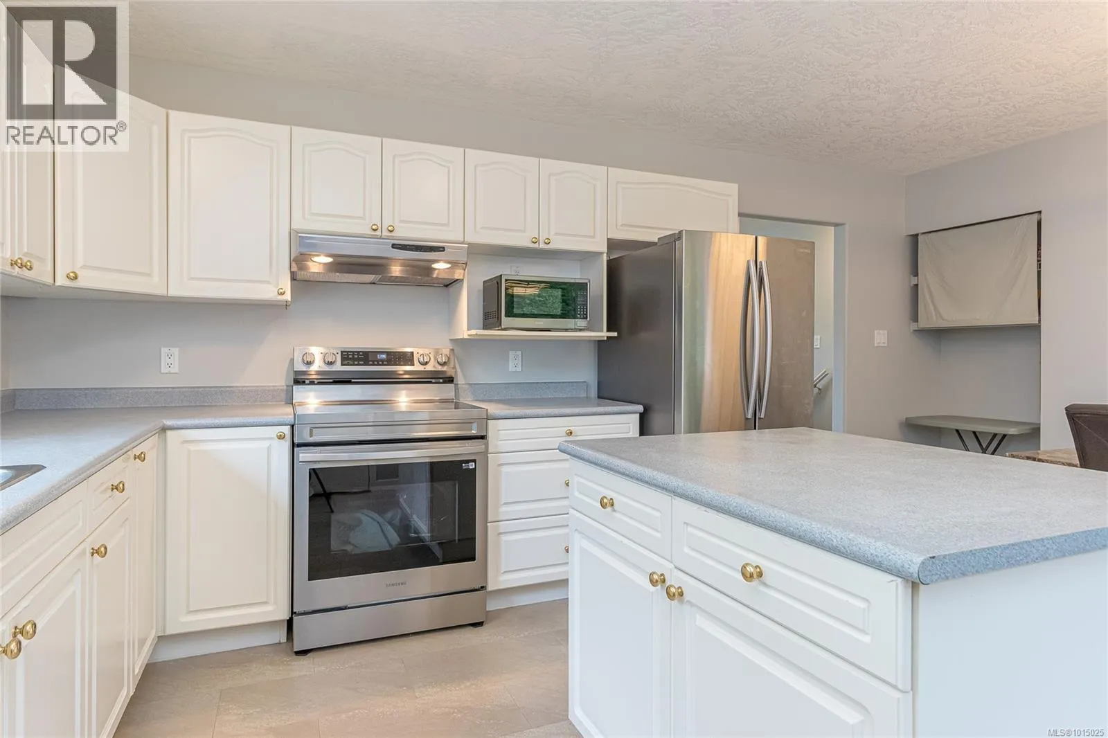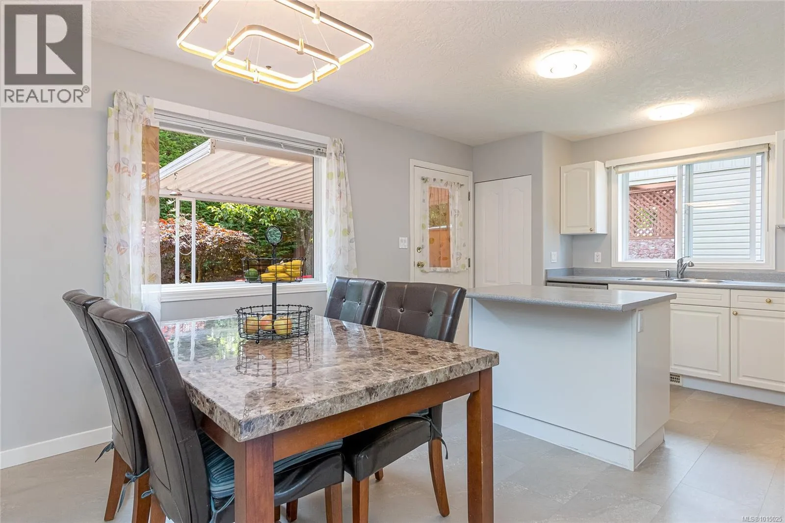 Here is an ideal family home close to Neck Point near Hammond Bay Elementary School (French Immersion). This family home features a large kitchen which overlooks your private backyard with a deck surrounded by trees/hedges & plenty of sunshine! The kitchen features lots of cupboards and an island eating bar and nook area. There is a generous sized living room with bright windows and a gas fireplace. The primary bedroom boasts an enormous walk-in closet as well as a 4 piece ensuite bathroom. There are 2 more bedrooms on this level as well as a main floor laundry room. Downstairs, you will find two more bedrooms and a finished rec room. This level also includes a bathroom with a shower. There is a built-in vacuum system. A double garage plus driveway and additional parking for an RV. The furnace & hot water tank were replaced in 2024 and the roof was replaced in 2021 so this will be a great maintenance free home for many years to come. (id:27476)