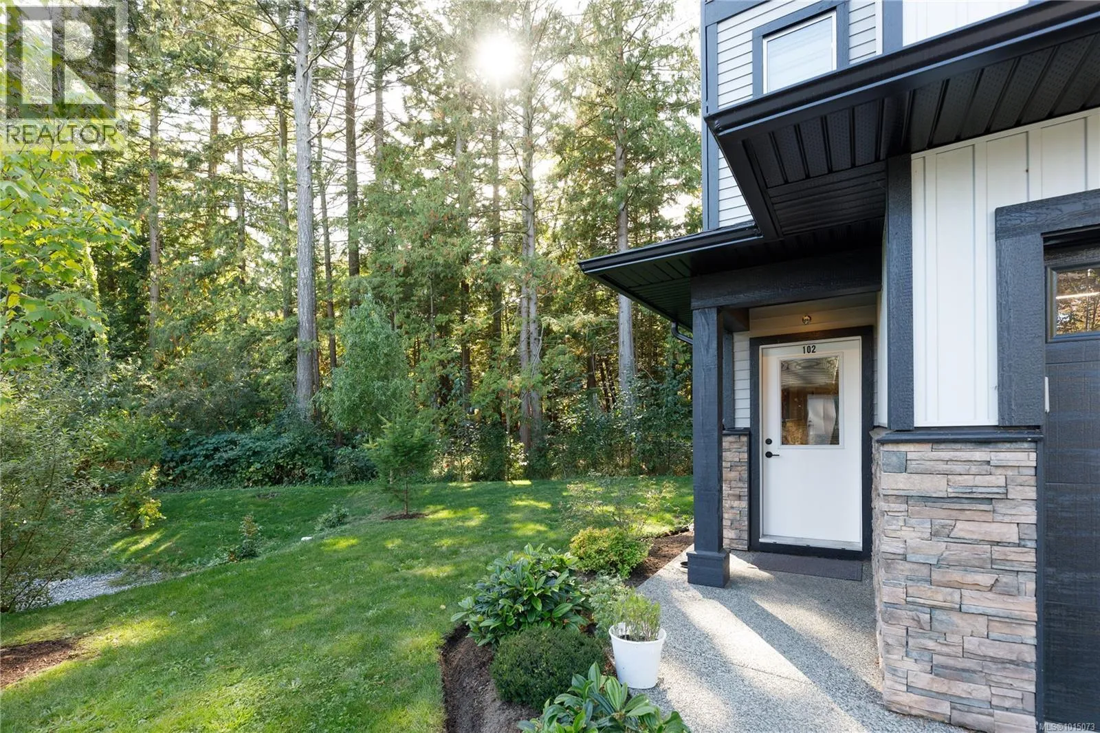 Open House, Sunday November 9th from 1-3pm. Welcome to 102-600 Ninth Street, a modern townhome located in the desirable Southbend community of South Nanaimo. Just 2 years old and still feeling brand new, this 3-bedroom, 4-bathroom home is the perfect option for first-time buyers or anyone seeking a low-maintenance lifestyle in a central location. The lower level offers a single-car garage, along with a bedroom featuring its own private entrance, full 4-piece ensuite, and access to a secluded patioâan ideal space for guests, students, or extended family. On the main level, youâll find a bright and spacious living room, a 2-piece bathroom, and a well-appointed kitchen with quartz countertops, stainless appliances, and a dining area that opens onto a deck backing onto a forest. Upstairs, two additional bedrooms each has their own 4-piece ensuite, providing comfort and privacy. A conveniently located laundry area completes this level. Quality finishes throughout include quartz countertops, high-grade laminate flooring, and durable Hardie siding. This location is hard to beatâjust minutes to Vancouver Island University, all levels of shopping, local parks, and Nanaimoâs downtown core. Quick access to the Parkway makes commuting simple and connects you easily to all other parts of the city and beyond. For more information, contact Travis Briggs at 250-713-5501 or travisbriggs.ca (Measurements and data approximate; verify if important.) (id:27476)