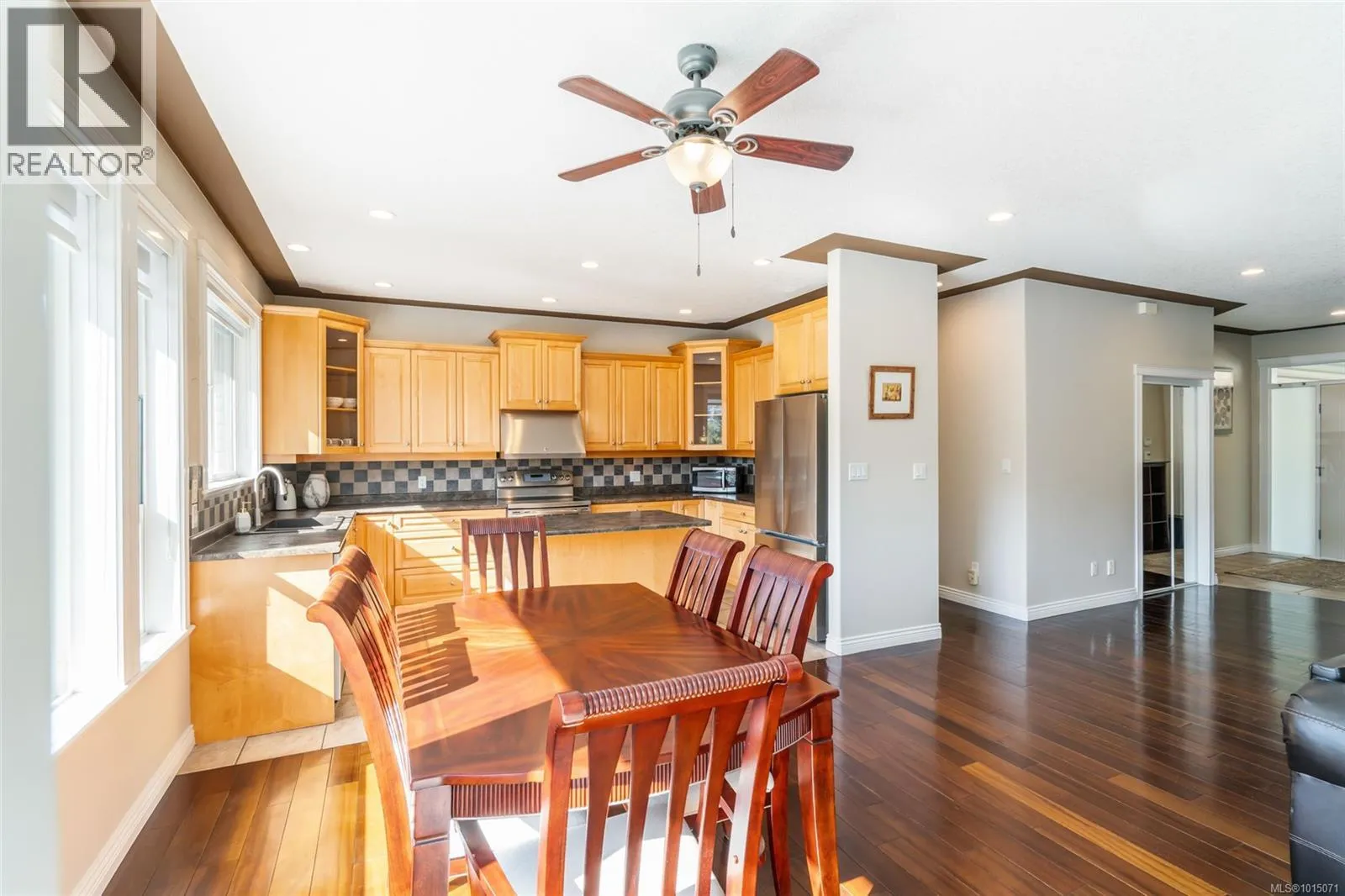 Welcome to this versatile 6-bedroom, 4-bath residence in the highly sought-after Rocky Point neighborhood of North Nanaimo. Offering 3,581 sqft of finished living space, this home blends comfort and functionality with a layout perfect for families or multi-generational living. The main level features a bright open great room with large windows, gas fireplace, and a well-appointed kitchen with newer appliances. The primary suite boasts a spa-inspired 5-piece ensuite with soaker tub, double vanity, and walk-in closet. Step outside to a brand-new upper deck, ideal for morning coffee or evening entertaining. The middle level has been refreshed with new flooring, freshly painted walls, and upgraded kitchen appliances, adding style and comfort. Downstairs, two self-contained suites, each with their own kitchen and laundry, provide excellent opportunities for extended family or rental income. Additional highlights include hardwood floors, central vacuum, double garage, and a low-maintenance yard. Located close to schools, parks, trails, and transit, this home combines quality, convenience, and incredible flexibility. (id:27476)