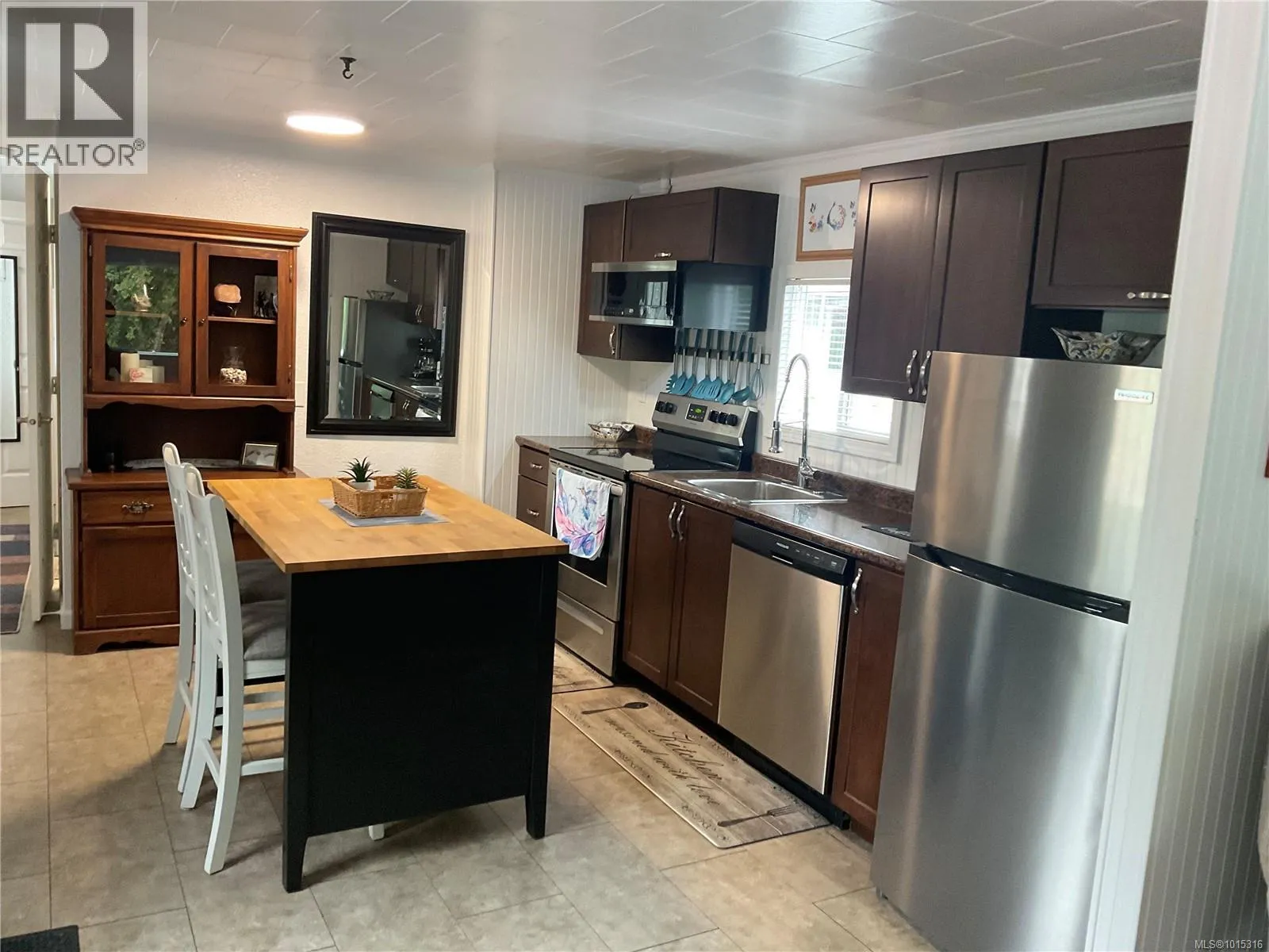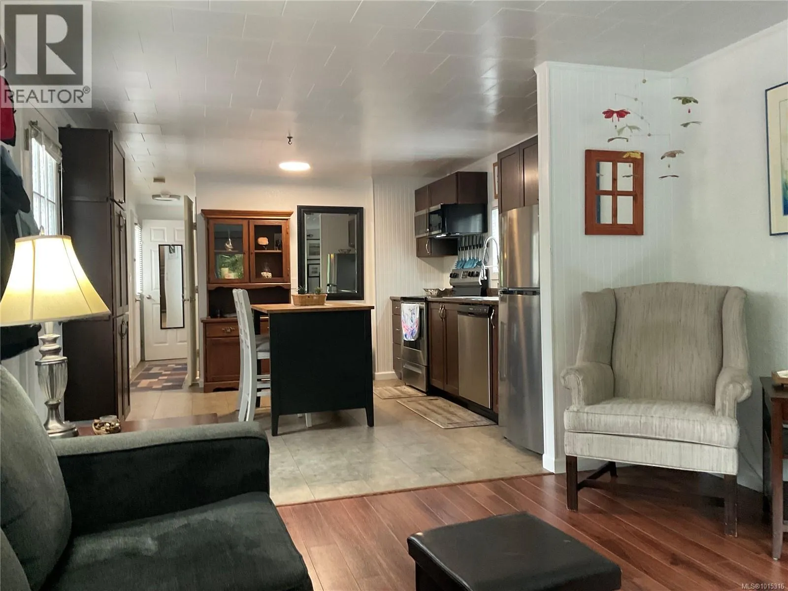 This updated 1-bedroom, 1-bath, single-wide home in Chase River Mobile Home Park offers a bright and functional 600 sq ft layout. Featuring an open floor plan with laminate and tile flooring, modern kitchen with updated cabinetry, counters, and stainless appliances, plus a dining nook with island seating. The spacious primary bedroom is complemented by a 4-piece bath with in-suite laundry. Recent updates include new paint, baseboard heaters, vinyl siding, upgraded windows and electrical upgraded with new panel and silver seal. Outside, enjoy two sun decks, a private grassy side yard, and a garden shed. Chase River Mobile Home Park is a 55+ manufactured home park. Conveniently located near shopping, transit, and highway access (id:27476)